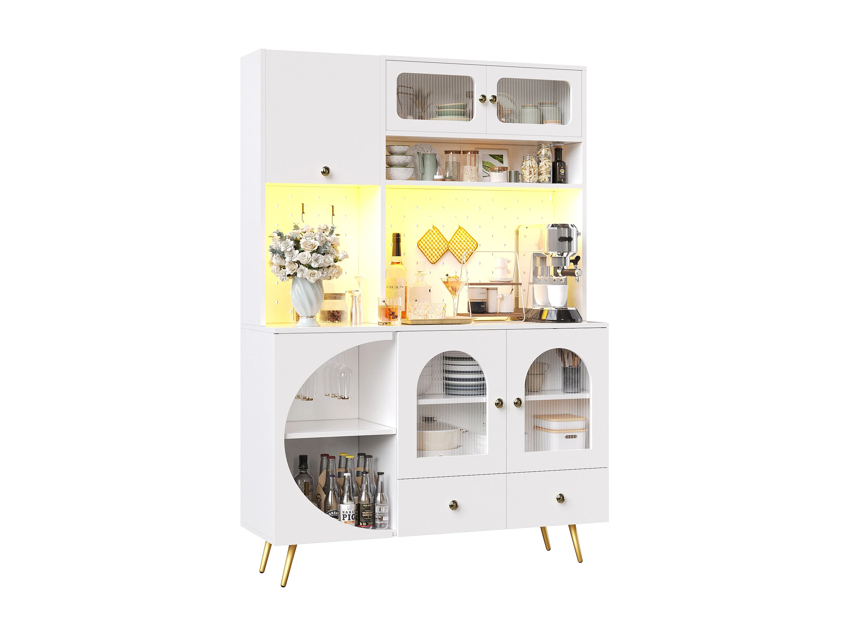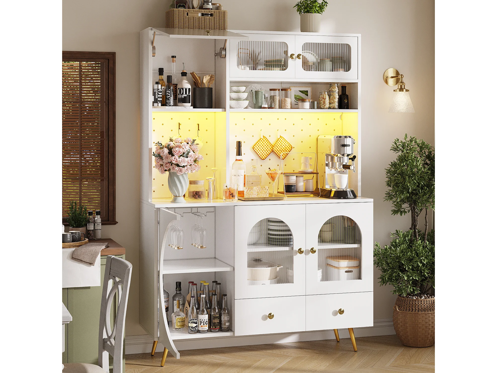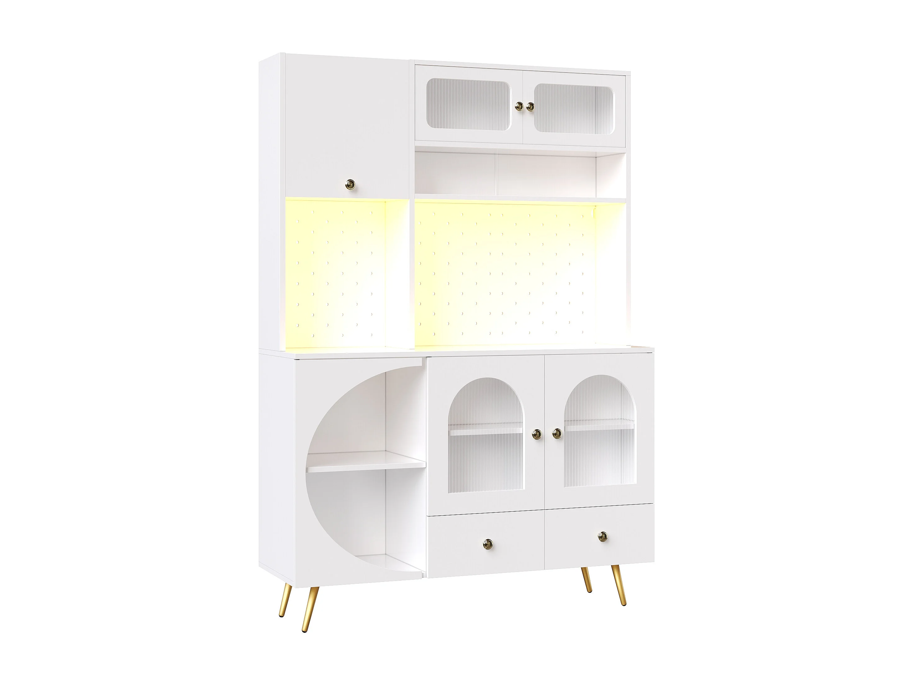 Buffet de cuisine avec LED, prises USB et panneau perforé, 2 tiroirs - Blanc 120x40x176 cm