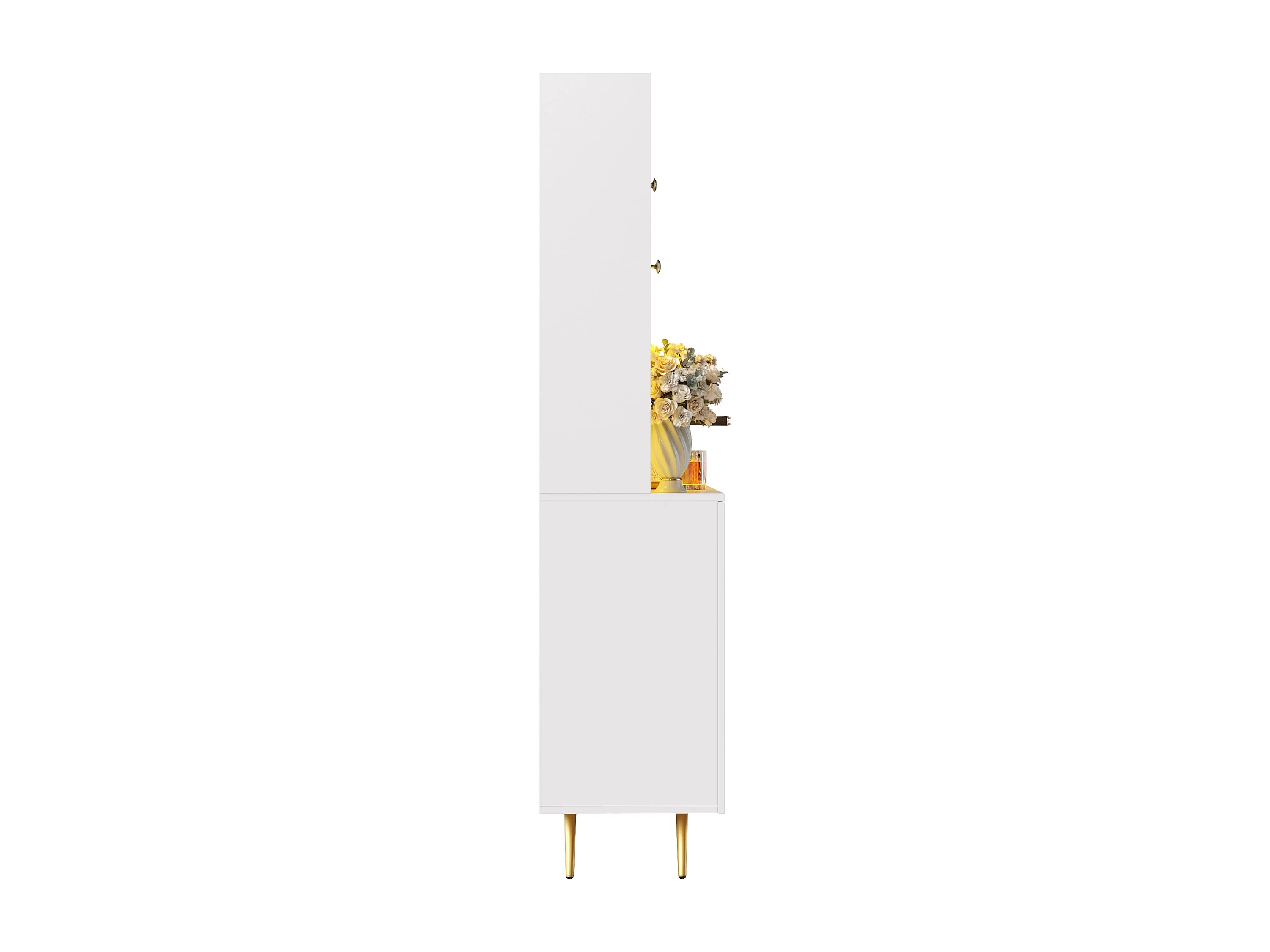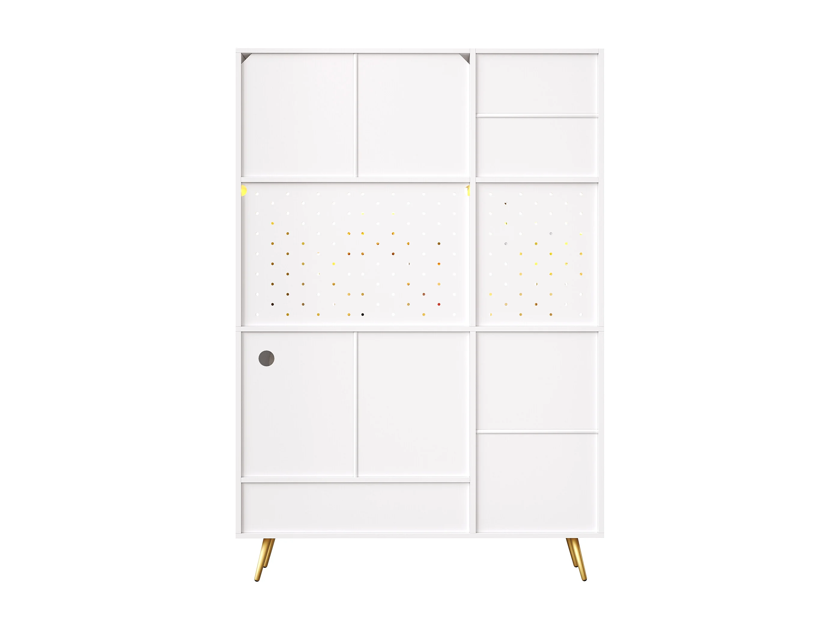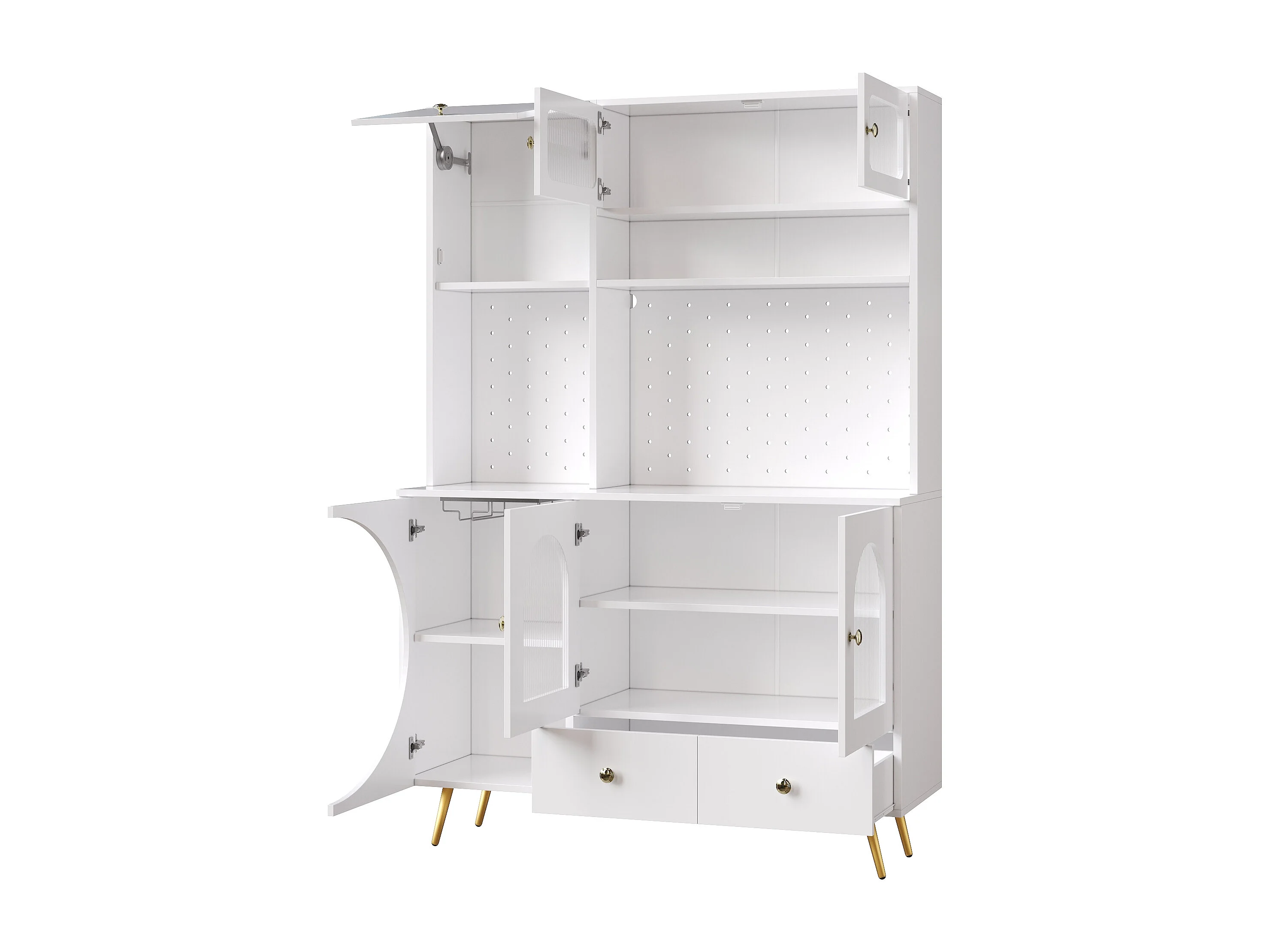 Buffet de cuisine avec LED, prises USB et panneau perforé, 2 tiroirs - Blanc 120x40x176 cm