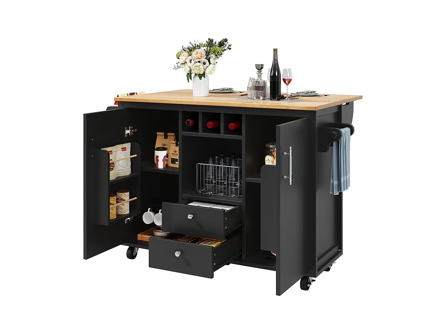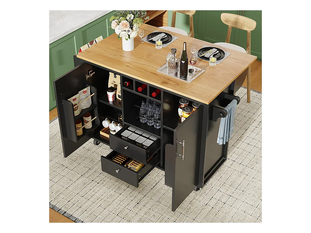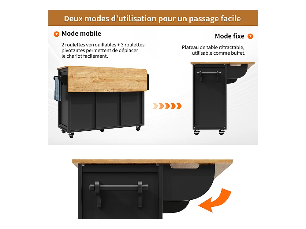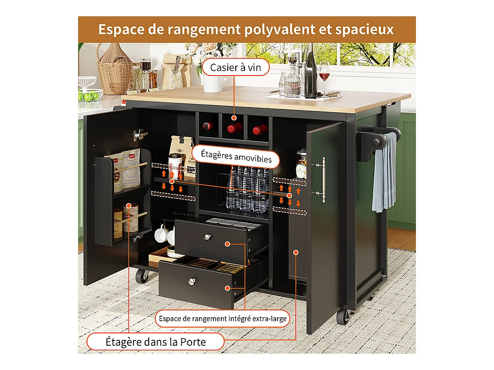 Buffet de cuisine chariot cuisine plan travail rabattable porte-serviettes étagère épices étagère porte casier bouteilles étagères réglables noir