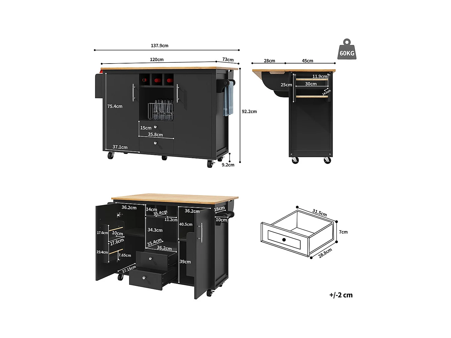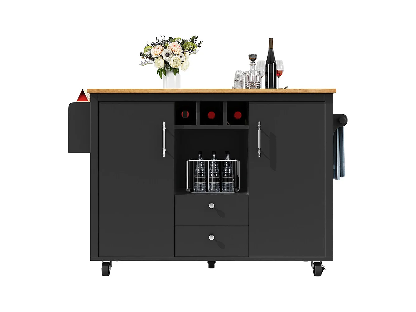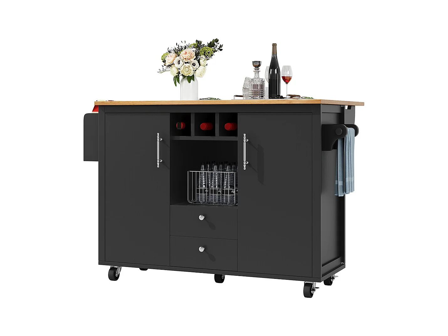 Buffet de cuisine chariot cuisine plan travail rabattable porte-serviettes étagère épices étagère porte casier bouteilles étagères réglables noir