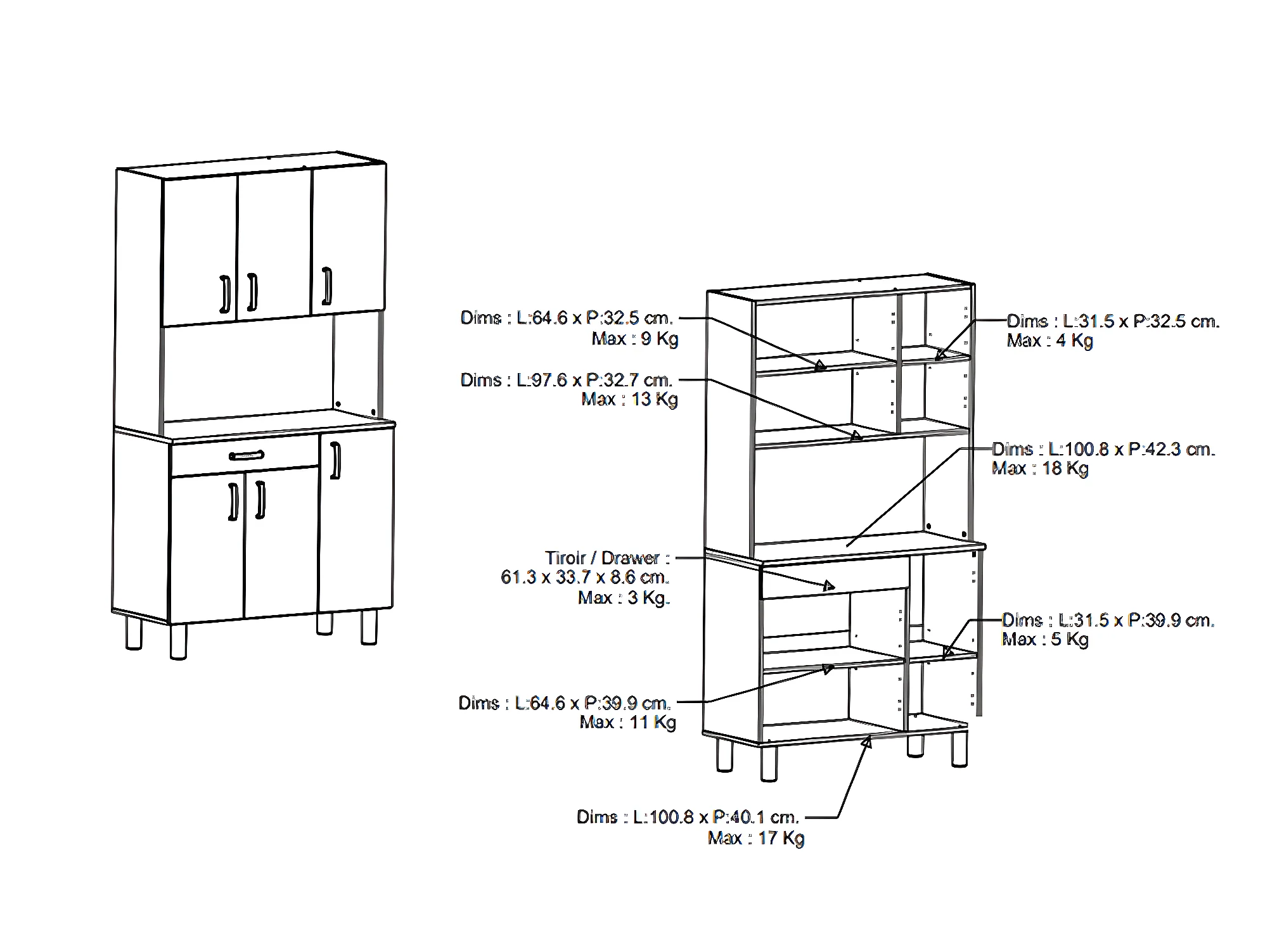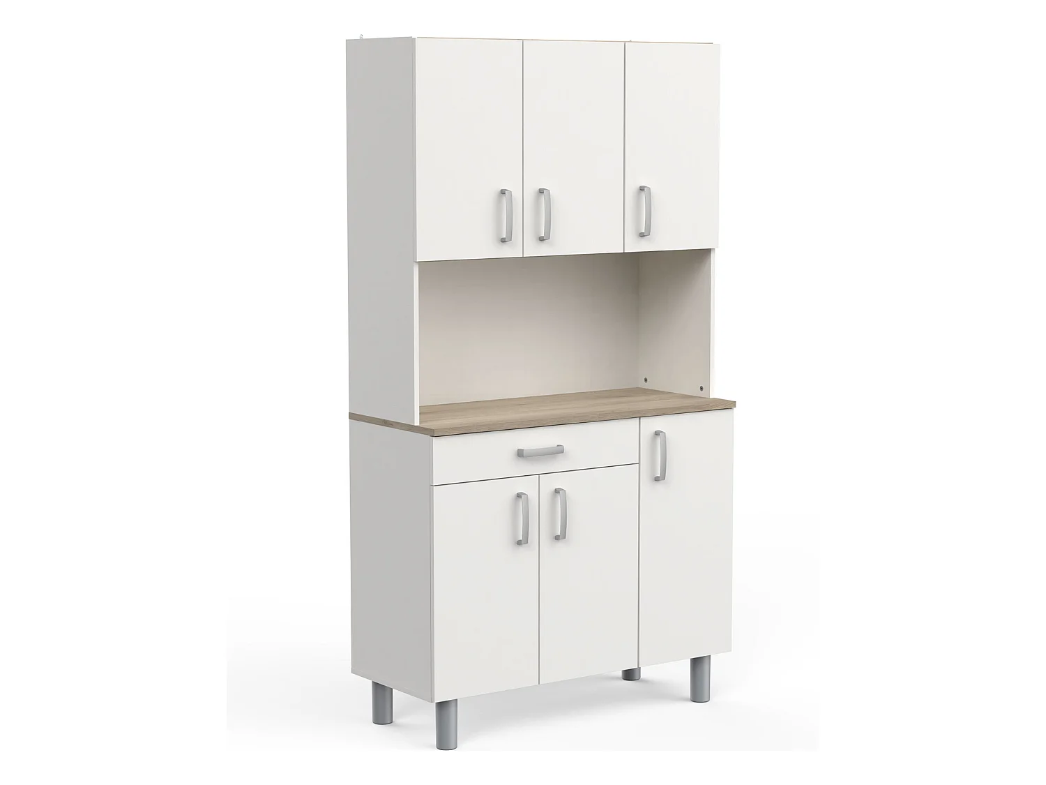 Buffet de cuisine coloris chêne kronberg, blanc mat - Longueur 100,8 x Hauteur 185,50 x Profondeur 42,30 cm