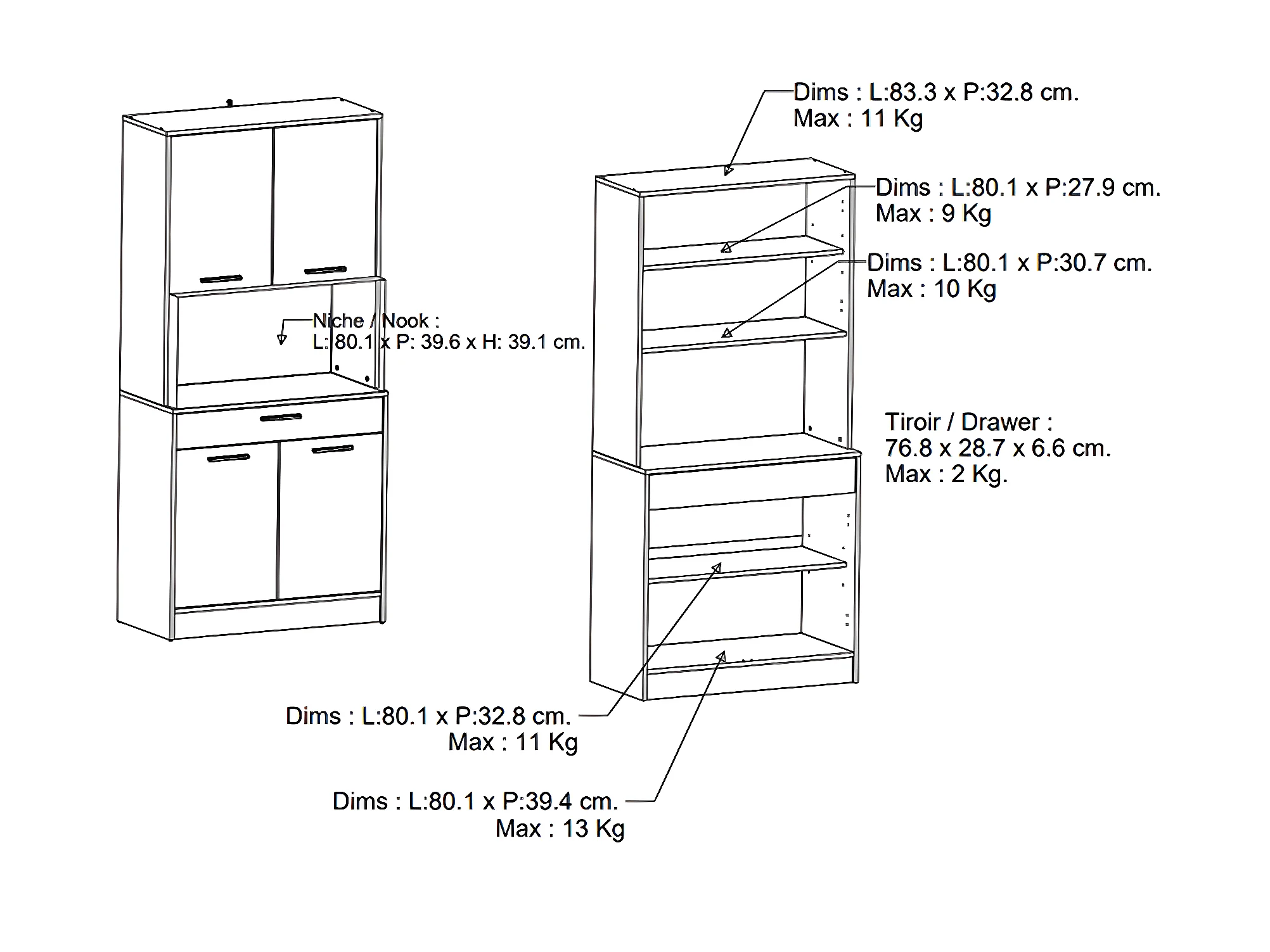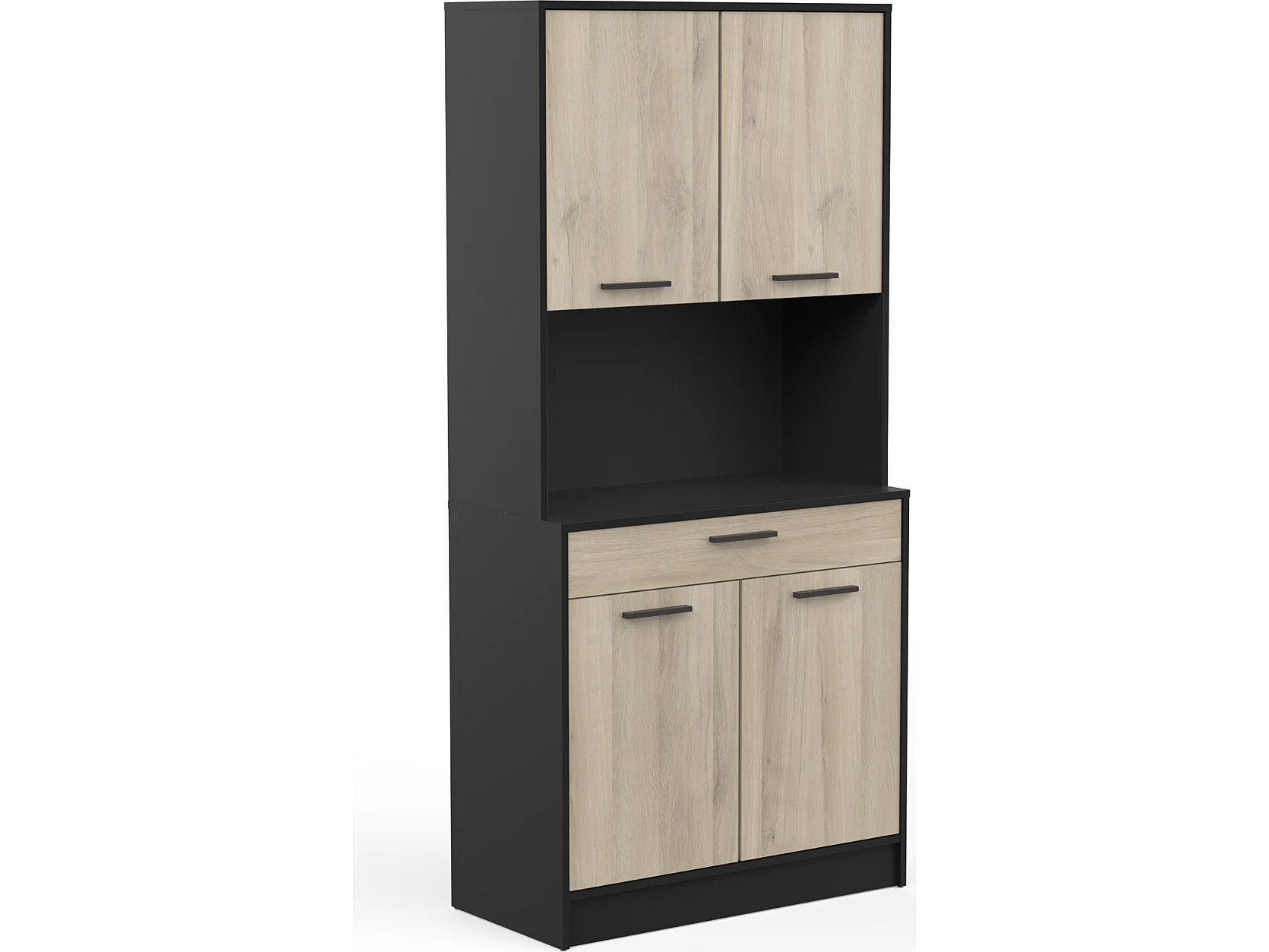 Buffet de cuisine coloris chêne kronberg, noir mat - Longueur 83,3 x Hauteur 176,1 x Profondeur 40 cm
