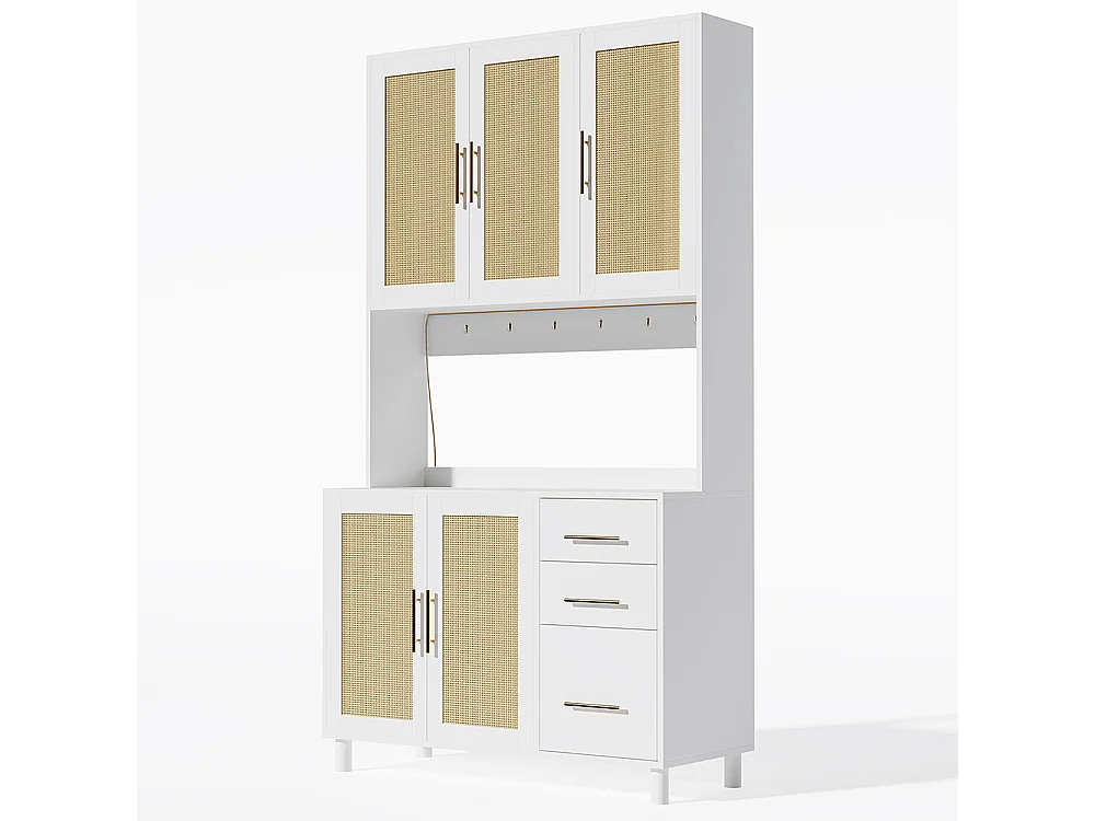 Buffet de cuisine éclairage décoratif LED contrôlé par application 2 ports USB 2 prises étagères réglables 3 tiroirs poignées en métal doré blanc