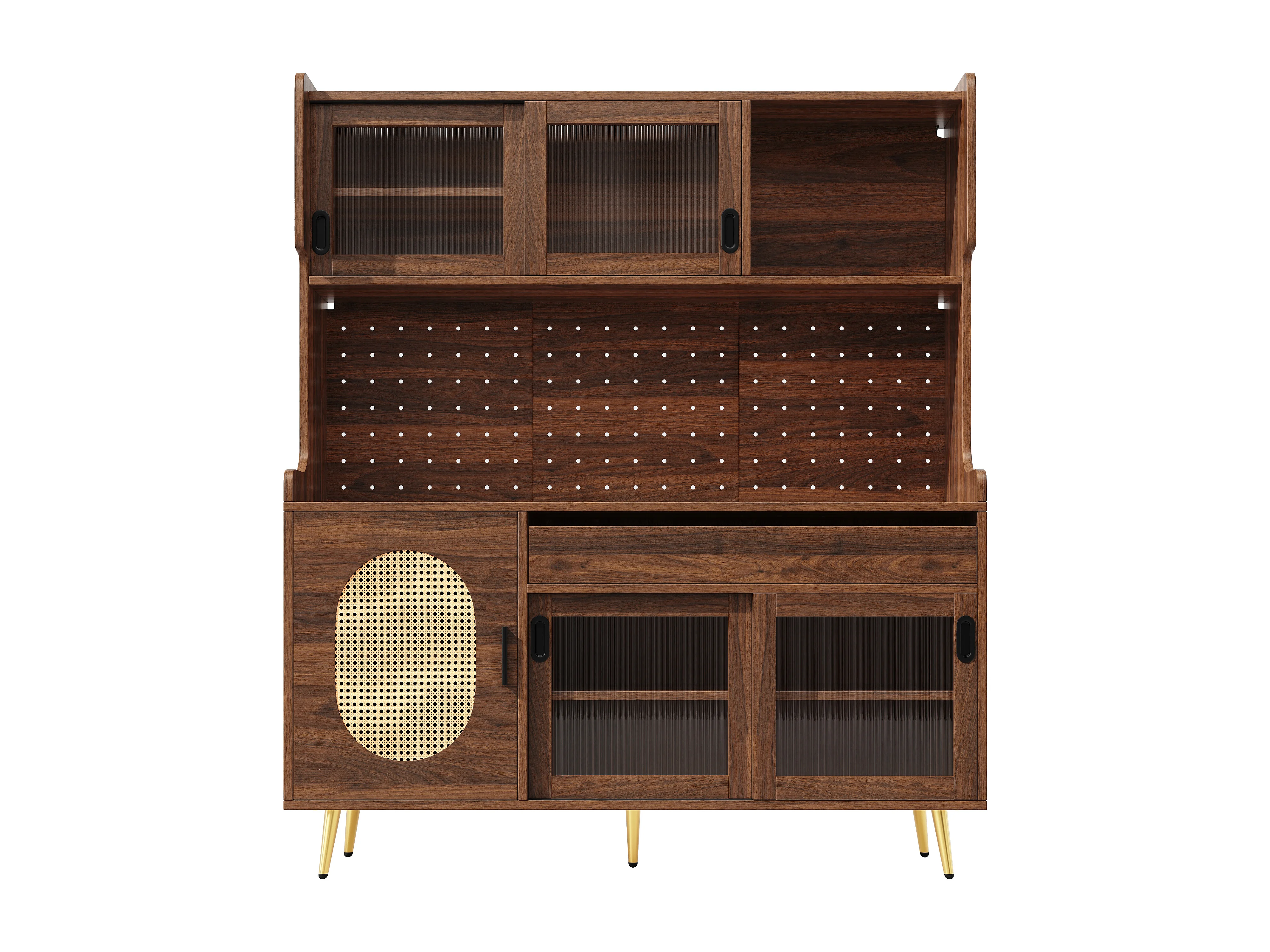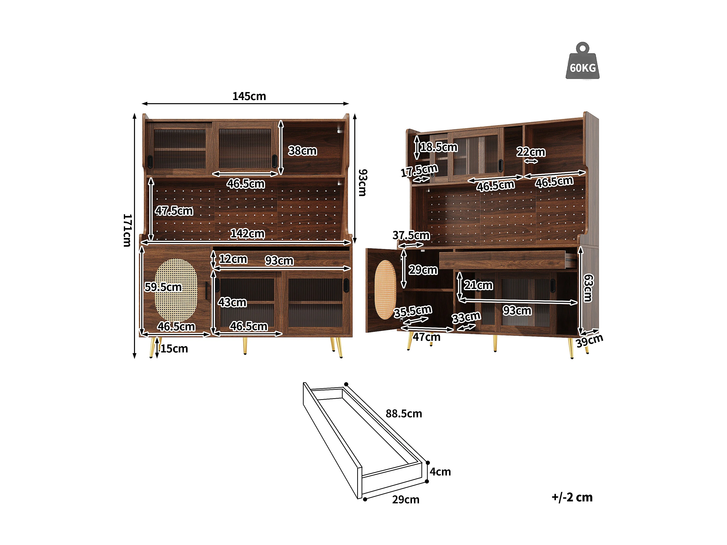 Buffet de cuisine en MDF avec LED et portes coulissante en verre - Marron145 x 39 x 171 cm