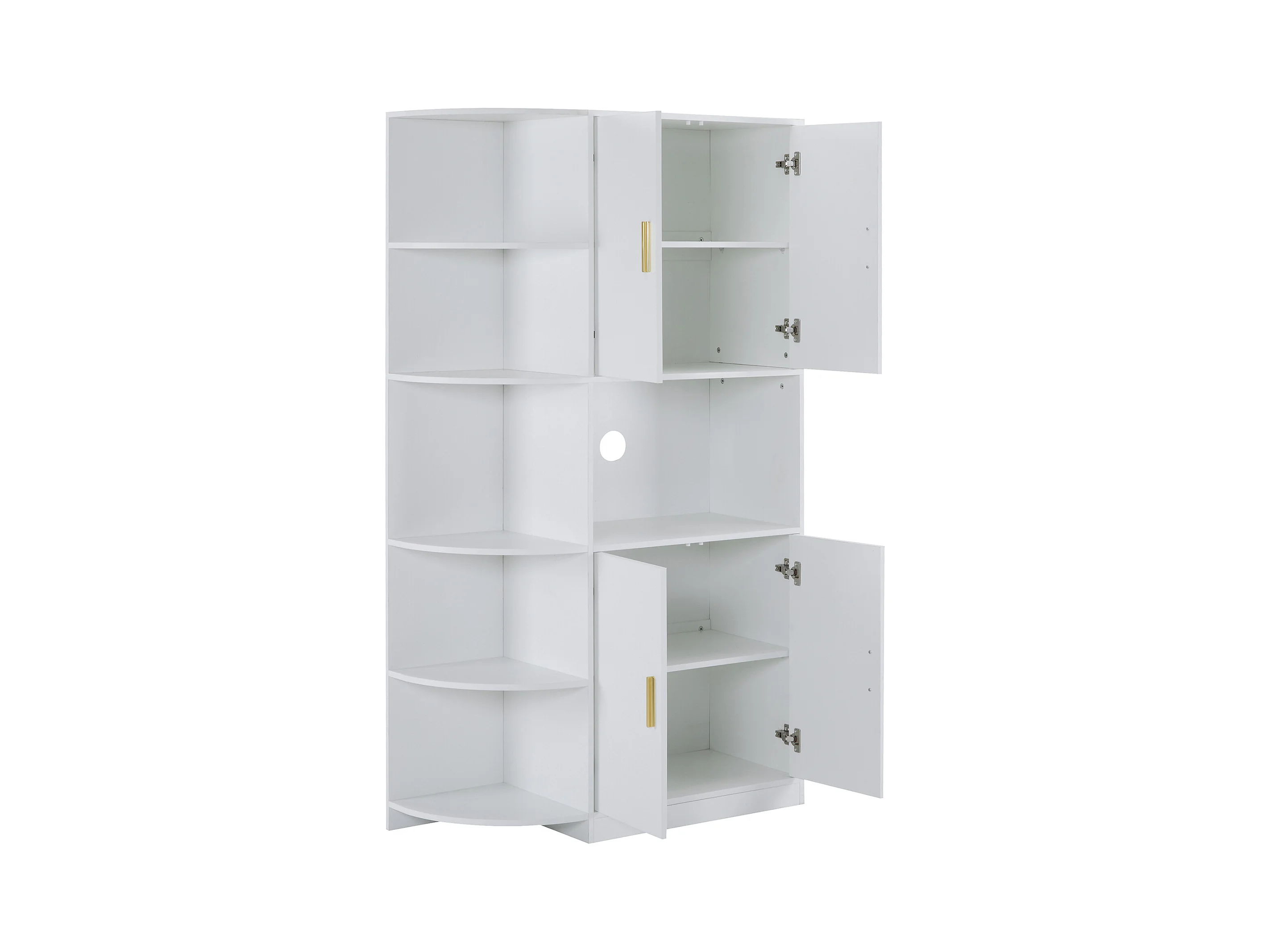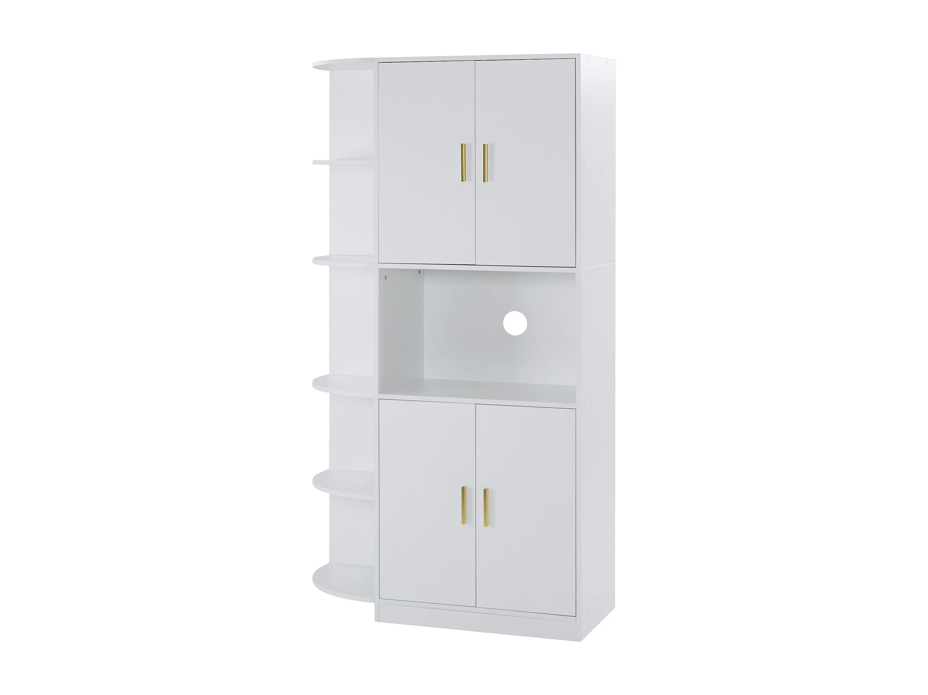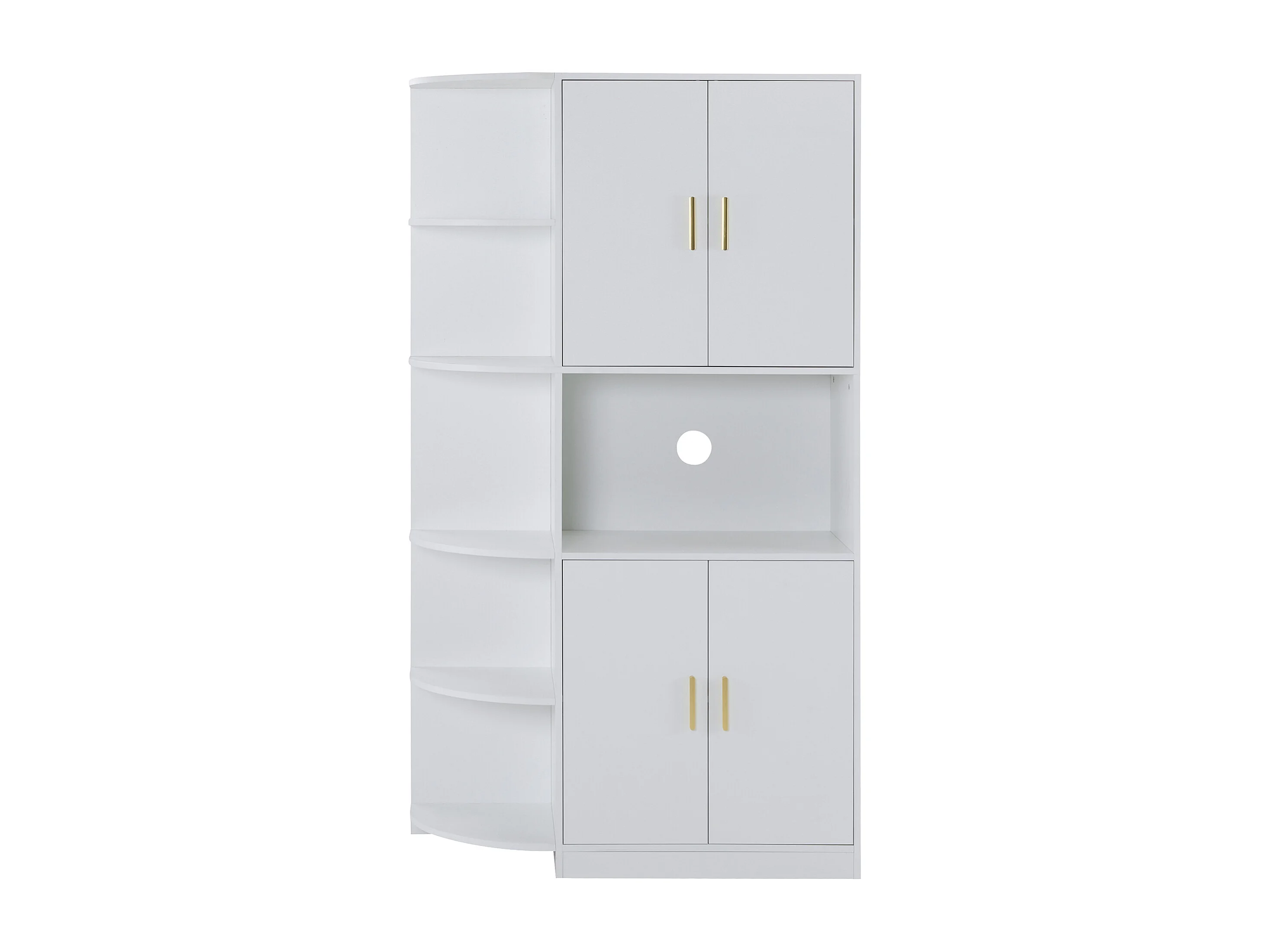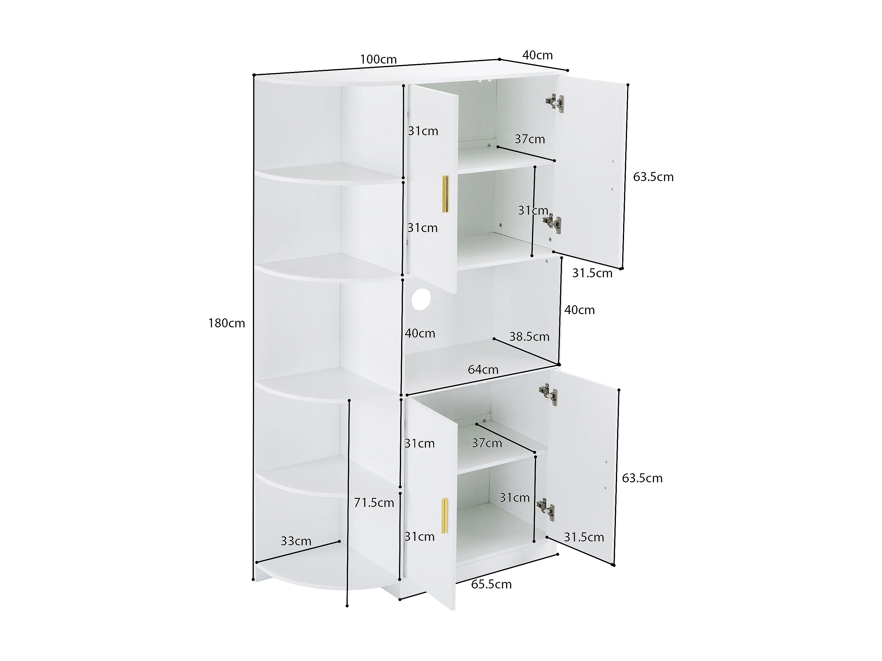 Buffet de cuisine haut 100x40x180cm avec 4 portes, 2 niches et Étagère d'angle, blanc
