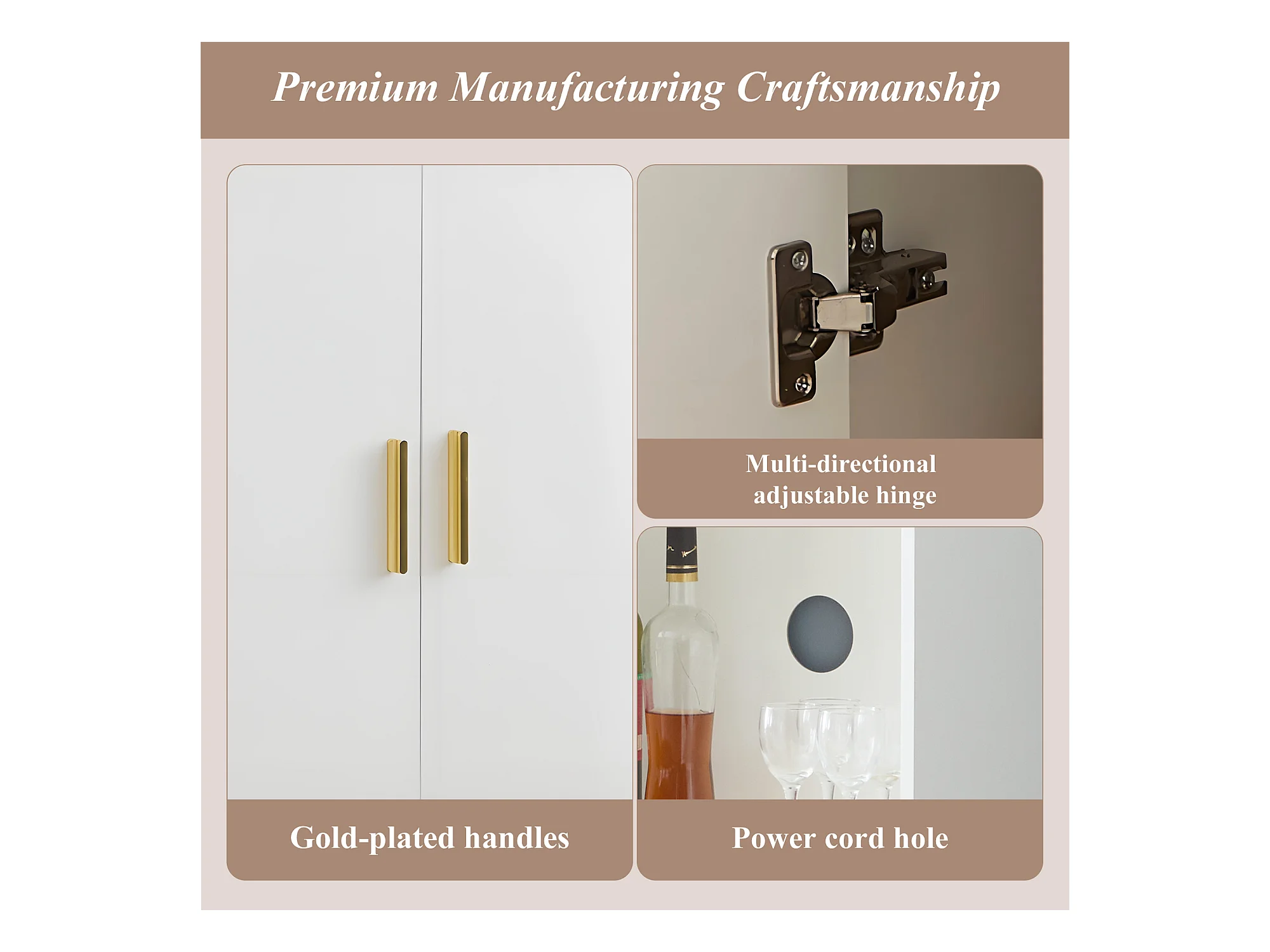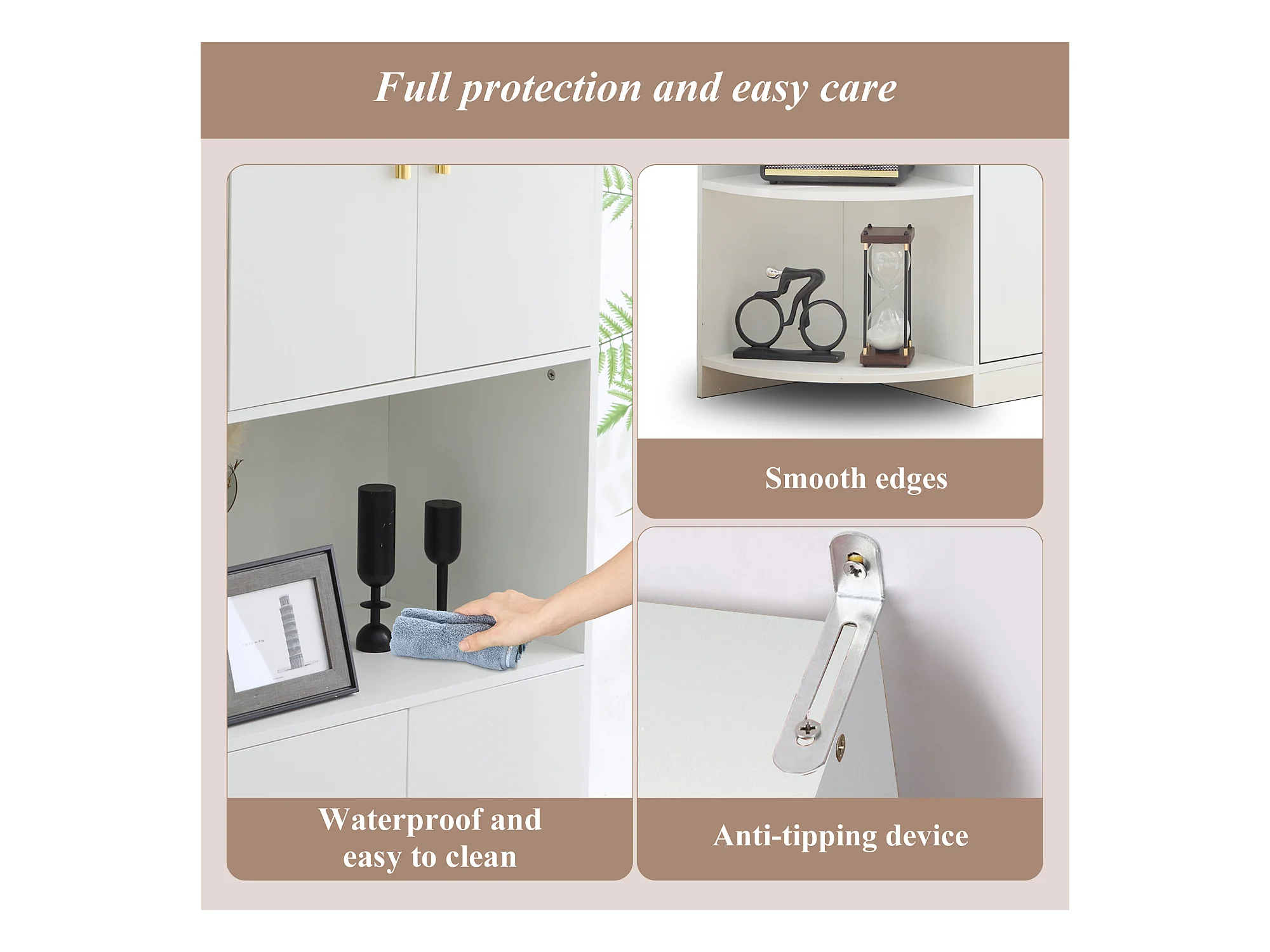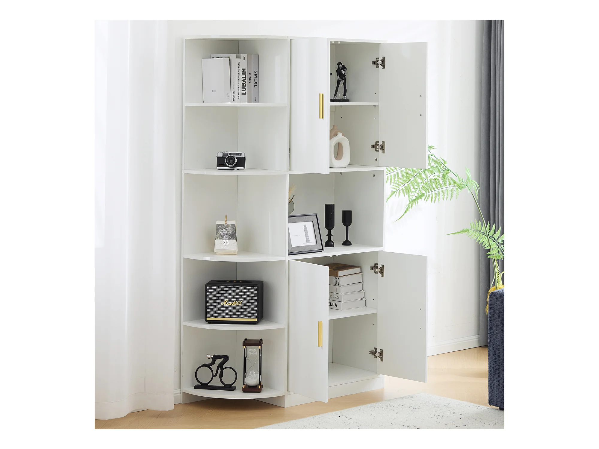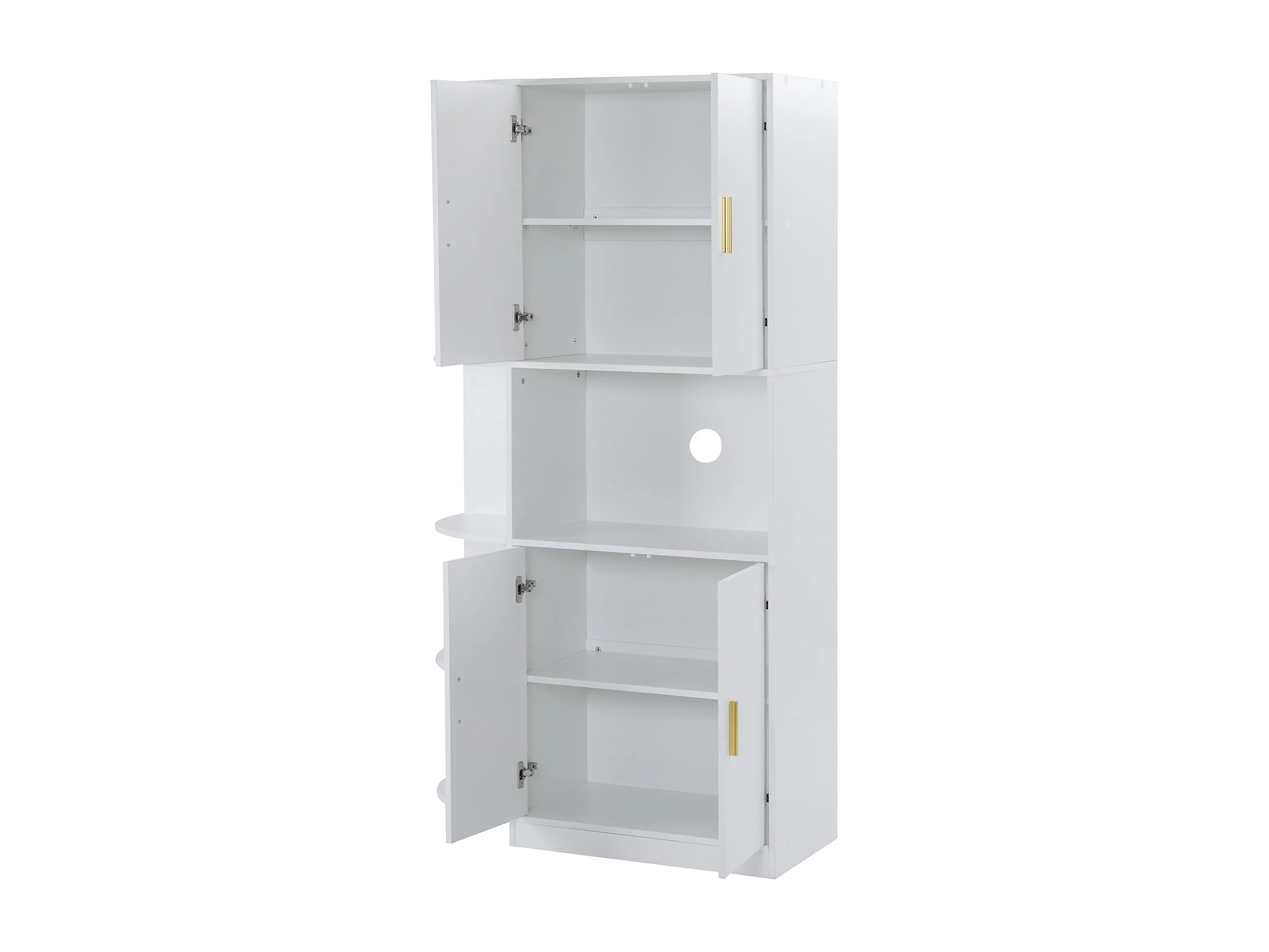 Buffet de cuisine haut 100x40x180cm avec 4 portes, 2 niches et Étagère d'angle, blanc