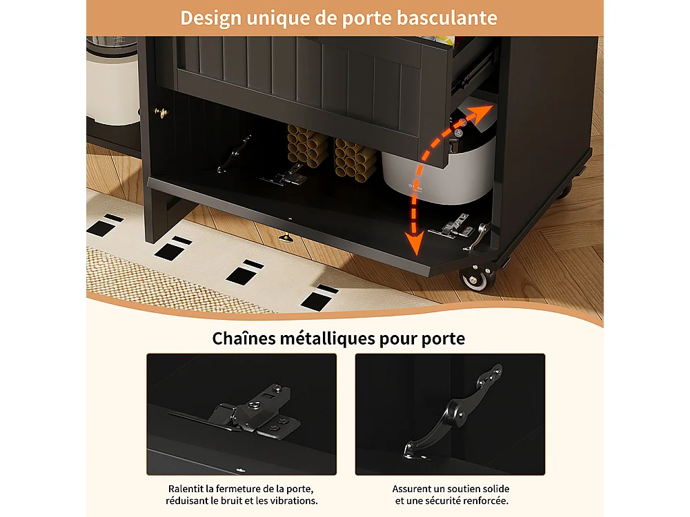 Buffet de cuisine îlot de cuisine moderne veinures bois table à manger multifonctionnelle espace rangement chariot armoires extensibles noir