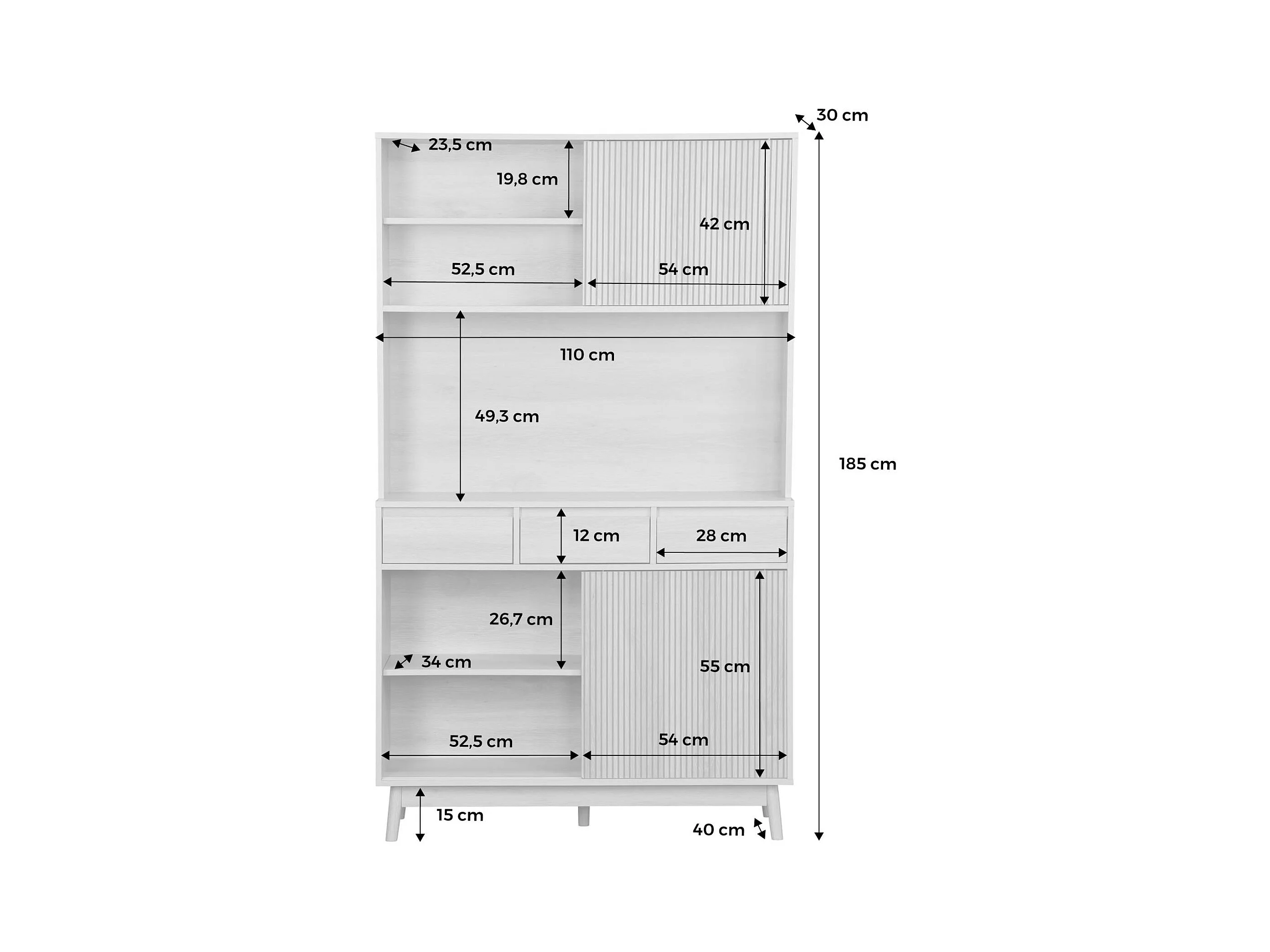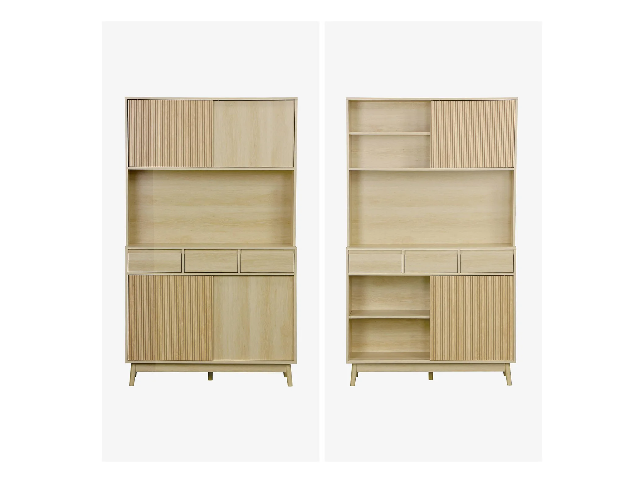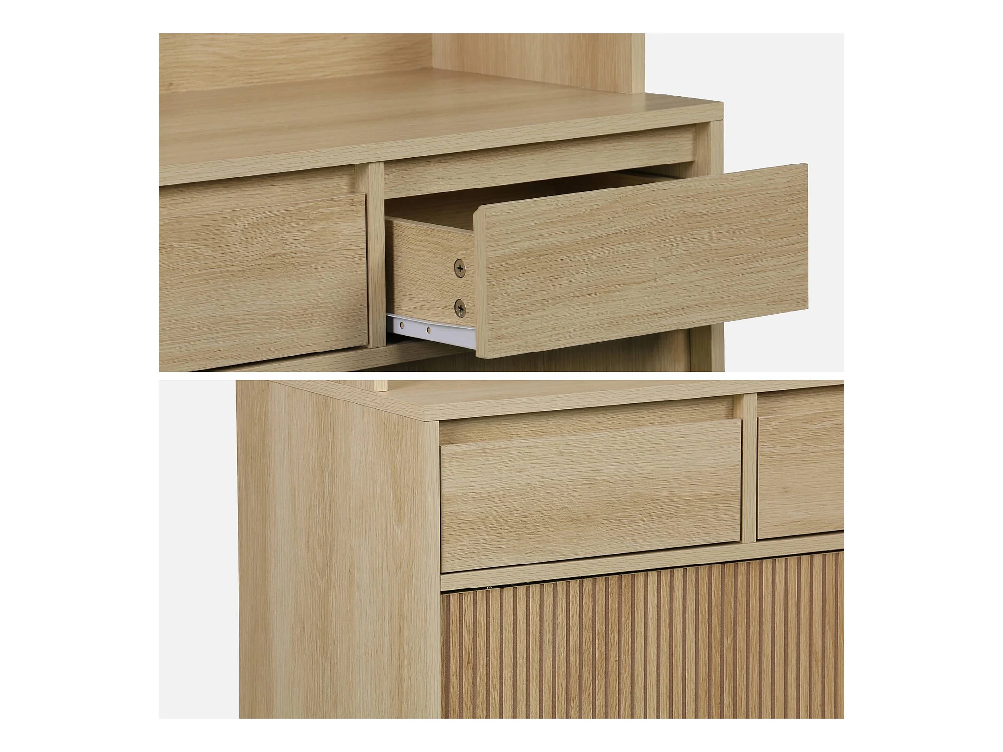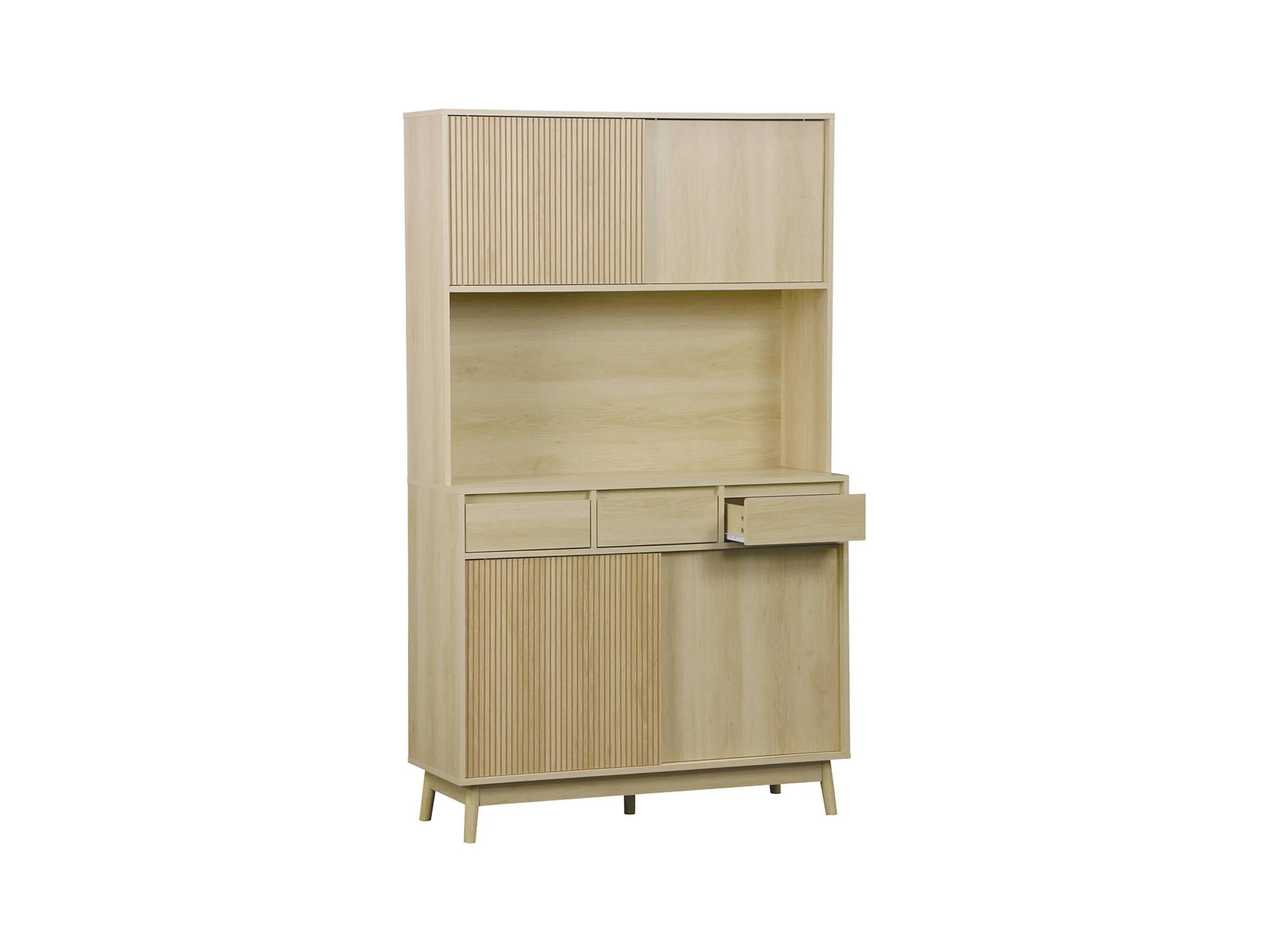 Buffet de cuisine LINEAR décor bois 4 portes 3 tiroirs 110 cm. Naturel. pieds en bois de pain revêtement papier
