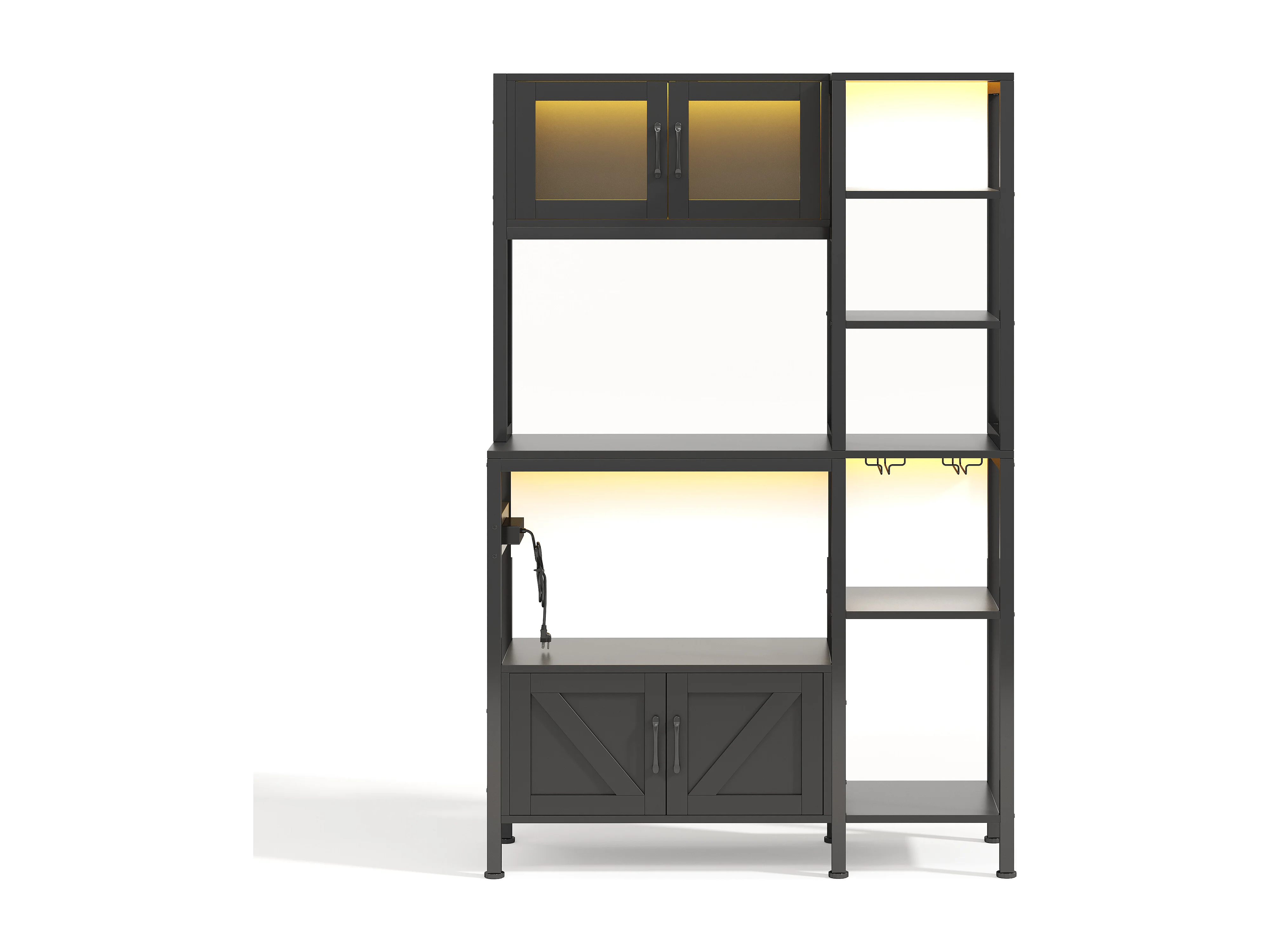 Buffet de cuisine moderne 115x40x180cm - avec prise et LED - avec 2 tiroirs et un porte-verres à vin - Noir