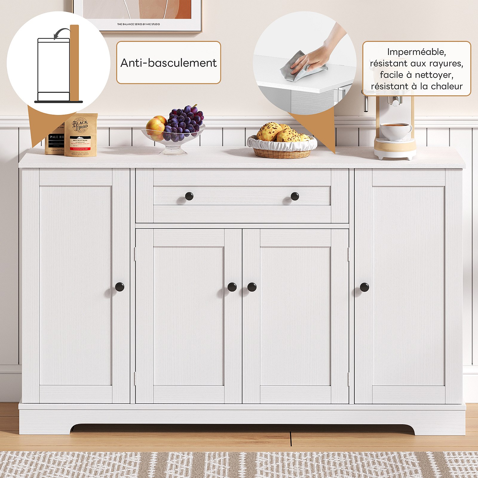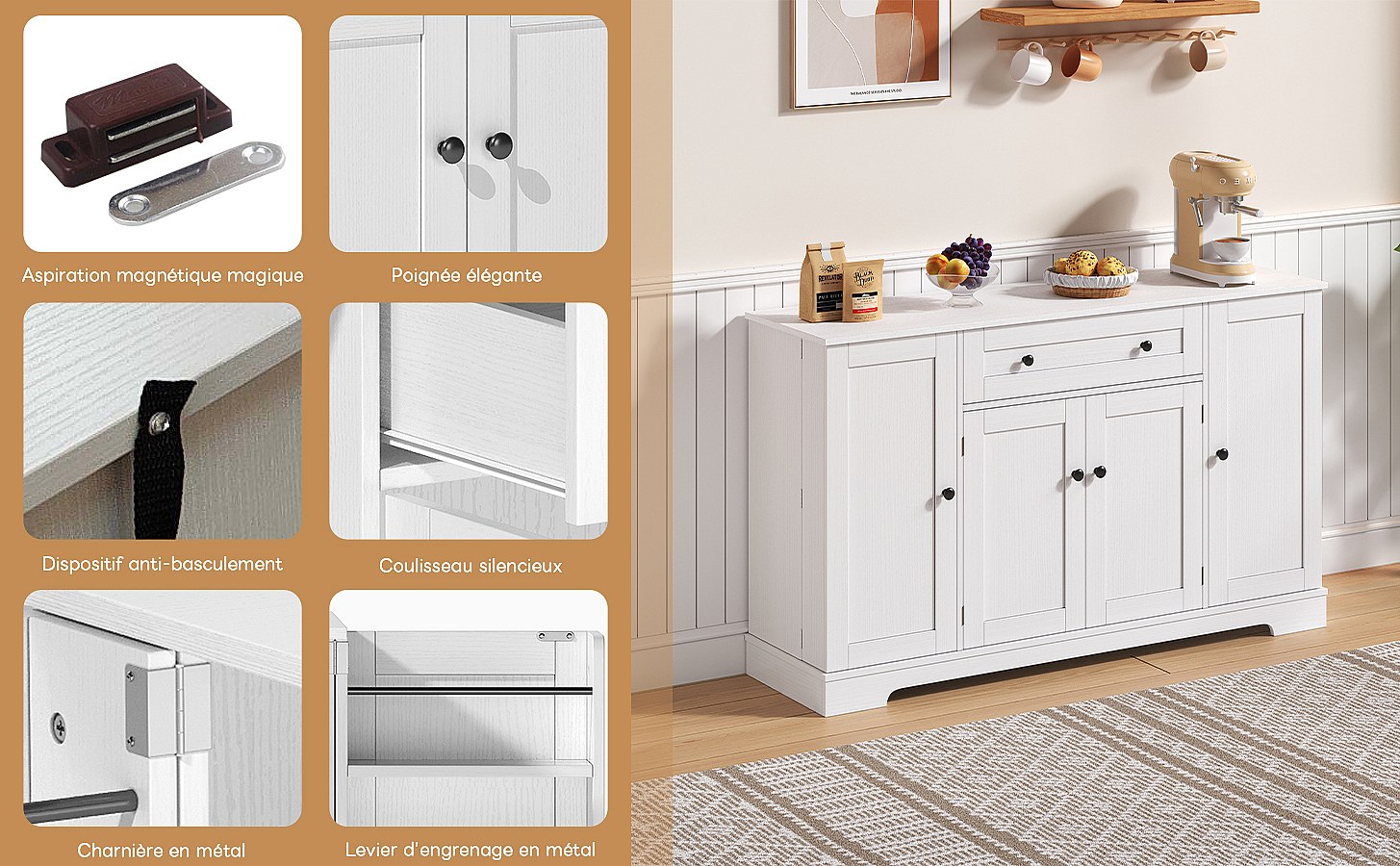 Buffet de cuisine multifonction, portes et étagères réglables, design moderne avec dispositif anti-basculement, idéal cuisine, salon