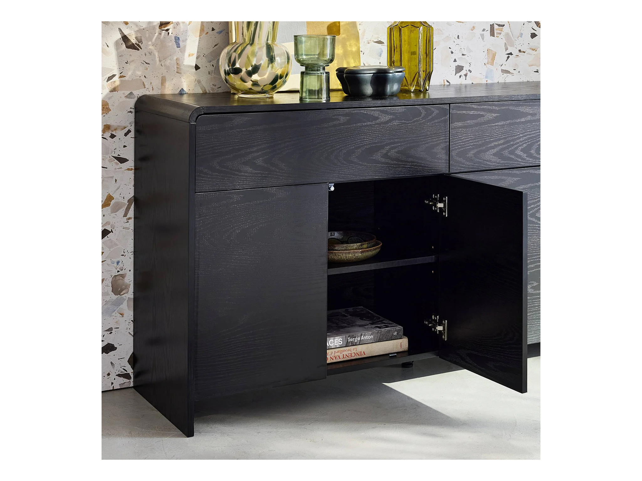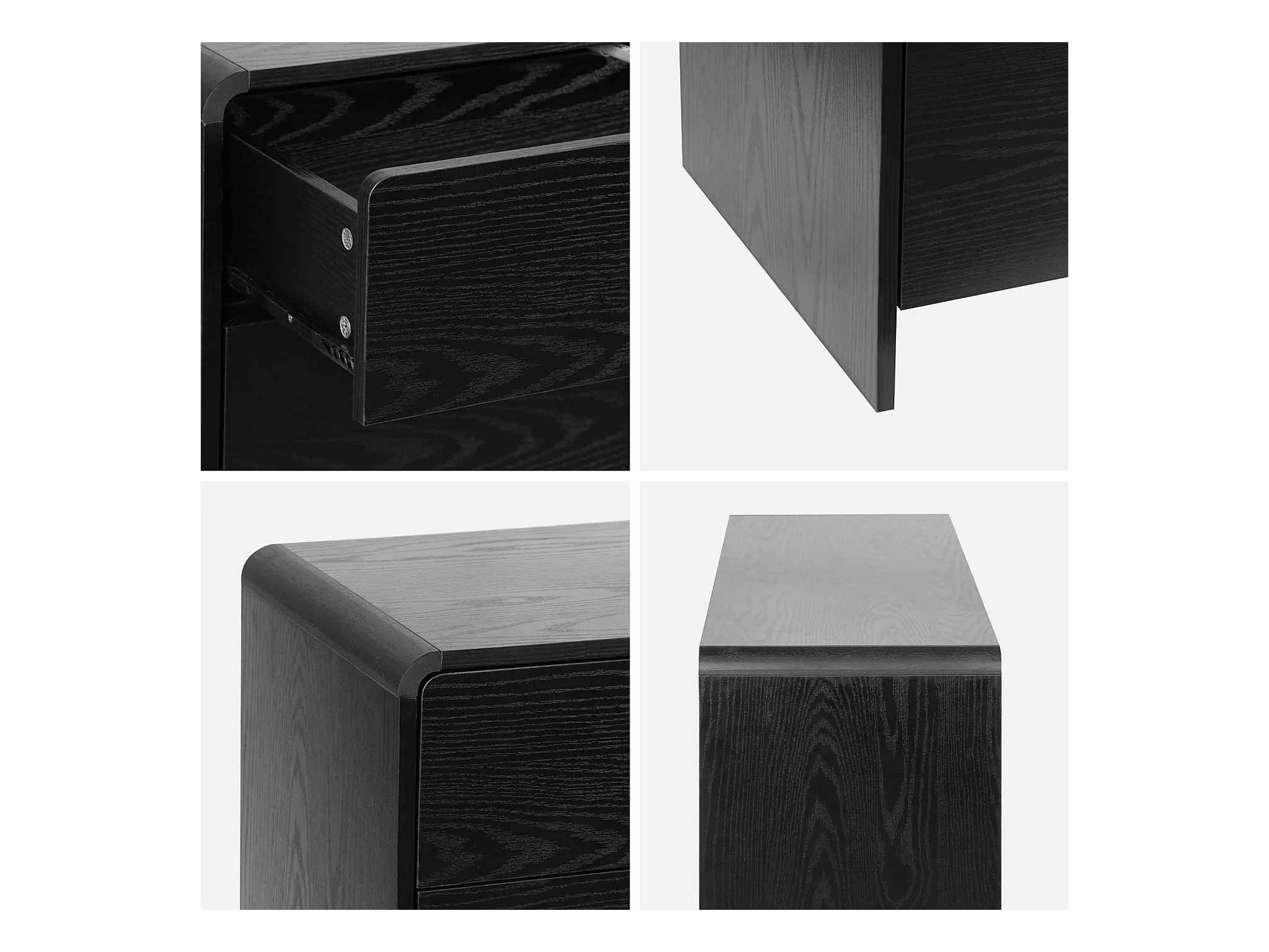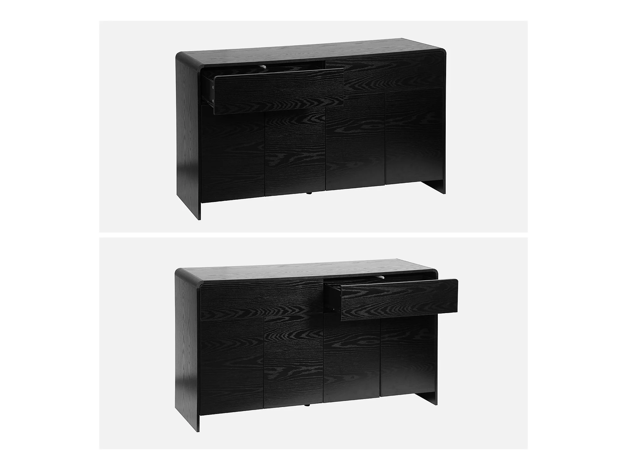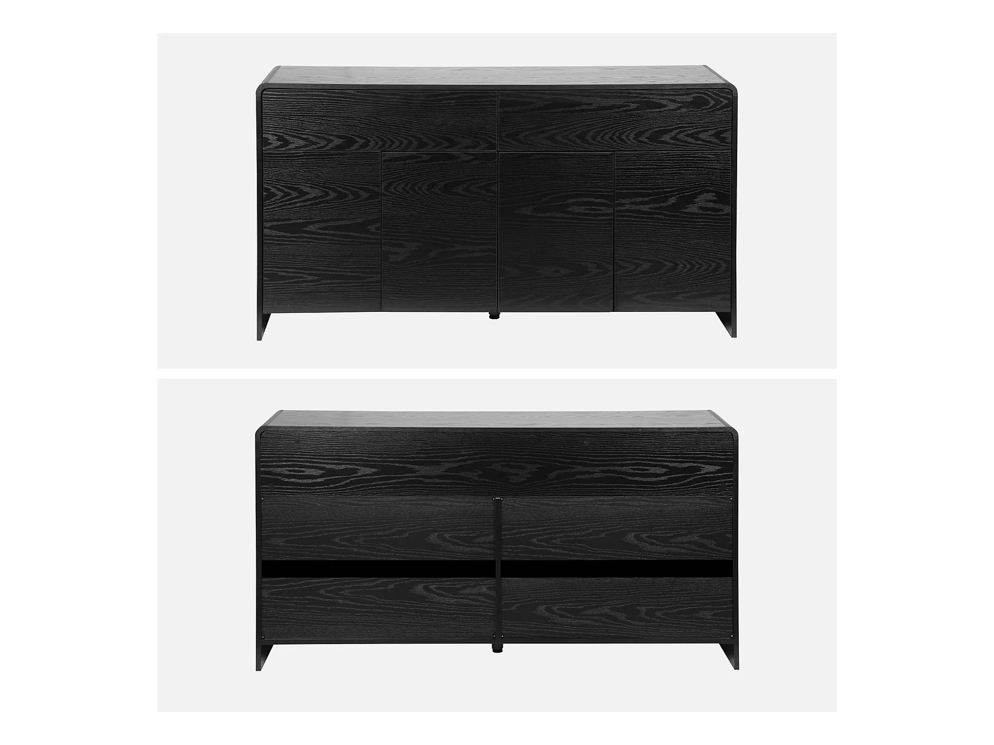 Buffet de rangement. buffet bas. 2 tiroirs 4 portes effet bois noir arrondi