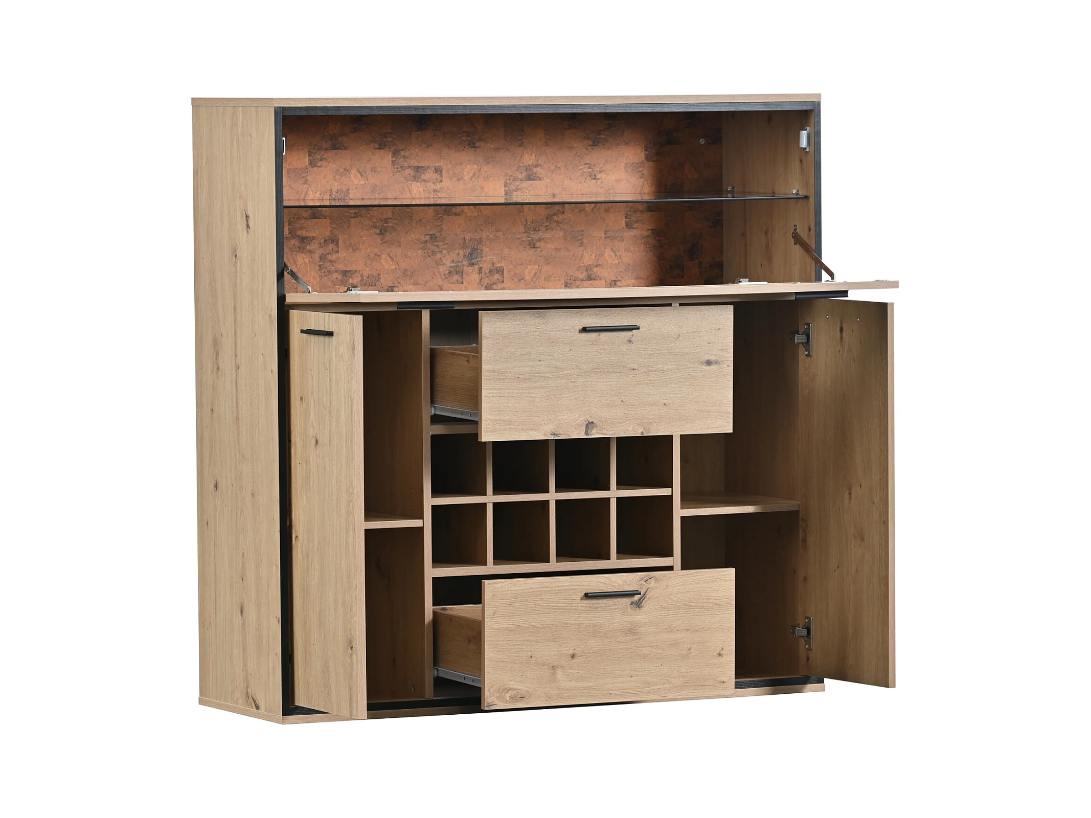 Buffet de rangement, Elégante armoire à vin avec portes doubles, étagère en verre et support pour le vin - Rangement parfait