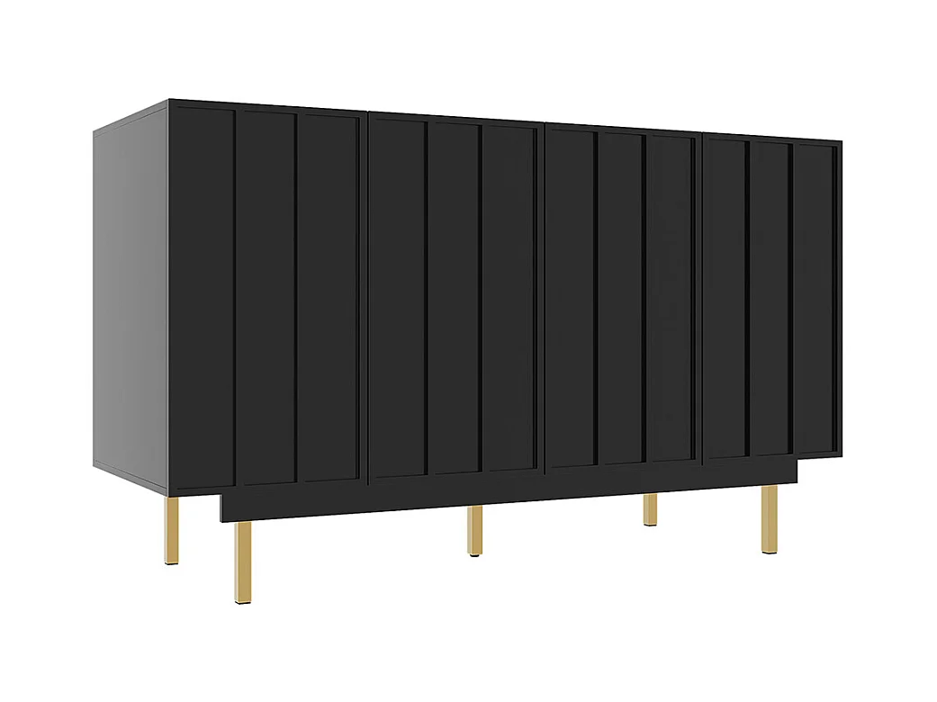 Buffet 4 portes noir doré pieds métalliques meuble TV armoire design rectiligne décor métallique