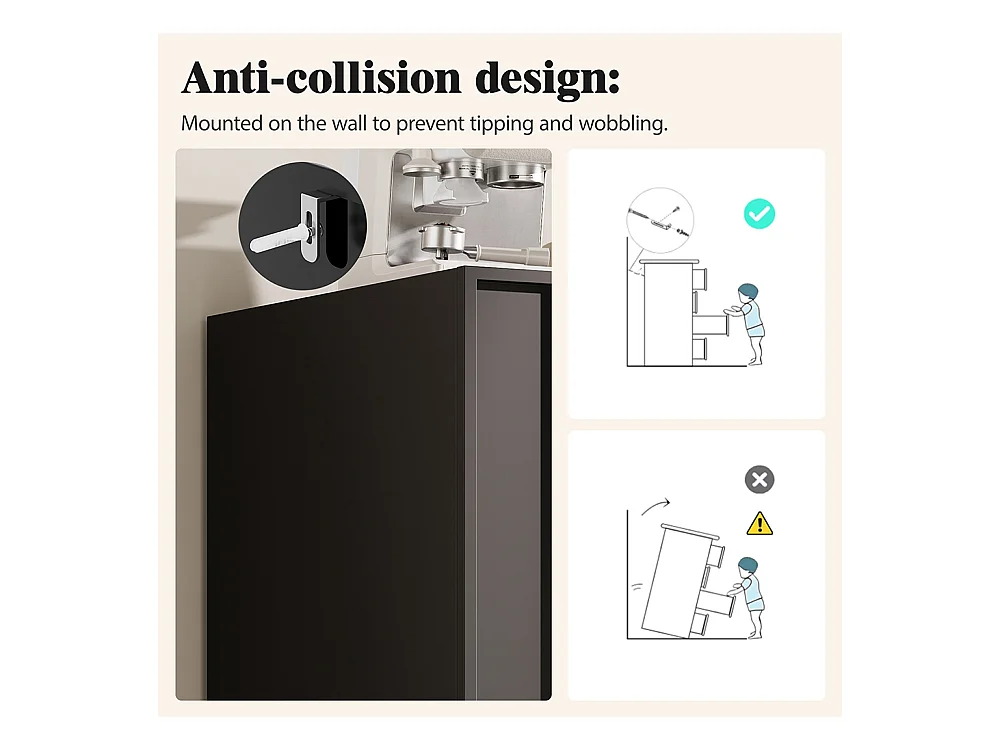 Buffet salon brillant 6 tiroirs 3 pieds métalliques excellente capacité charge noir