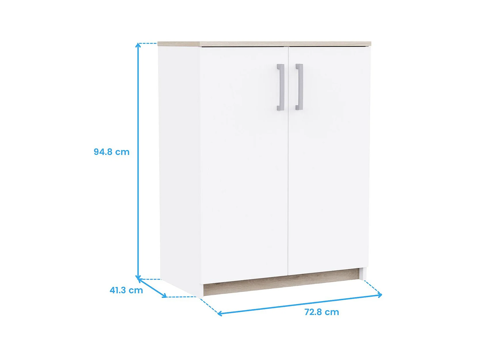 Meuble bas à 2 portes coulissantes, chêne cambrien, blanc, 74 x 33 cm