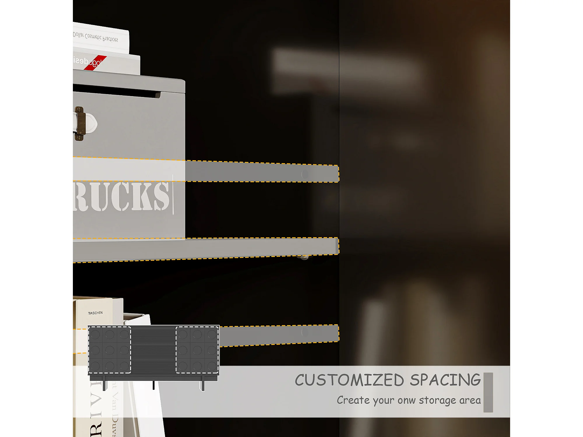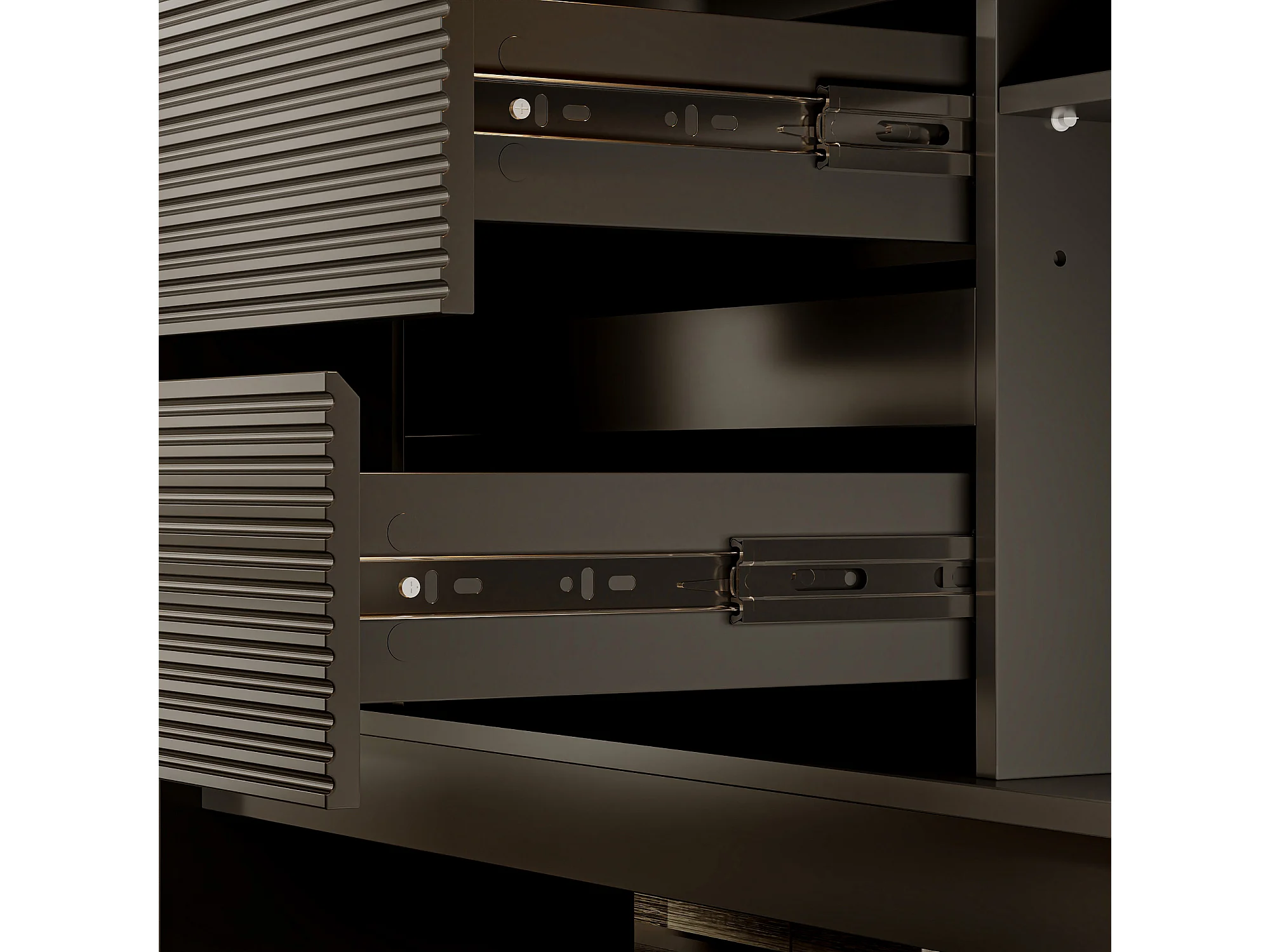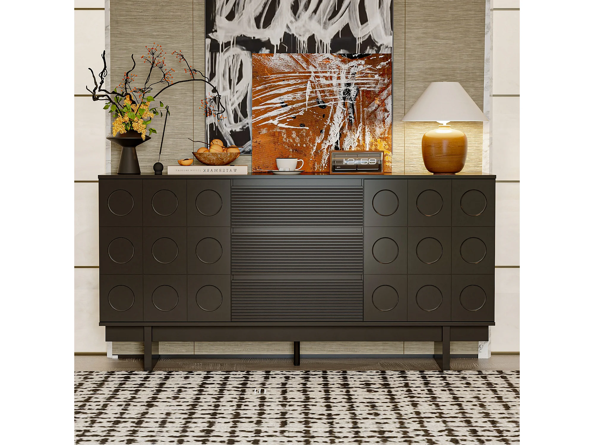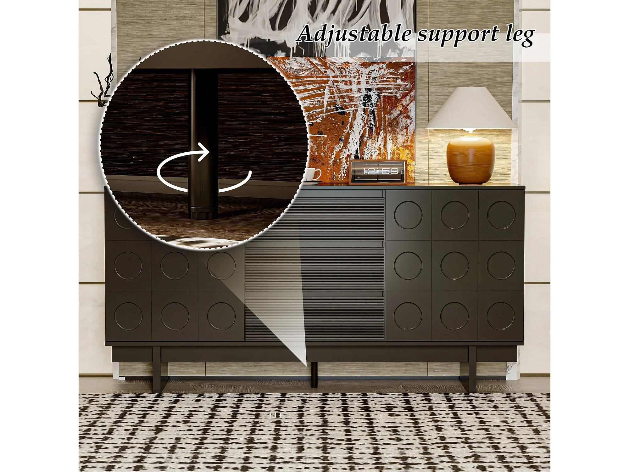 Buffet de Salon avec 2 Portes et 3 Tiroirs, Meuble de Salon Sculpté avec Etagères Réglables, 160x40x80, Noir