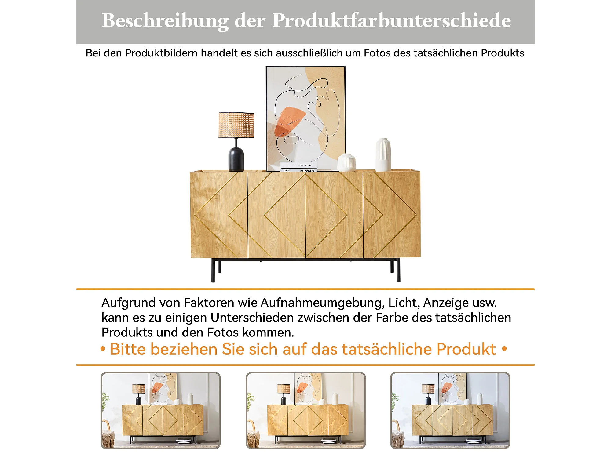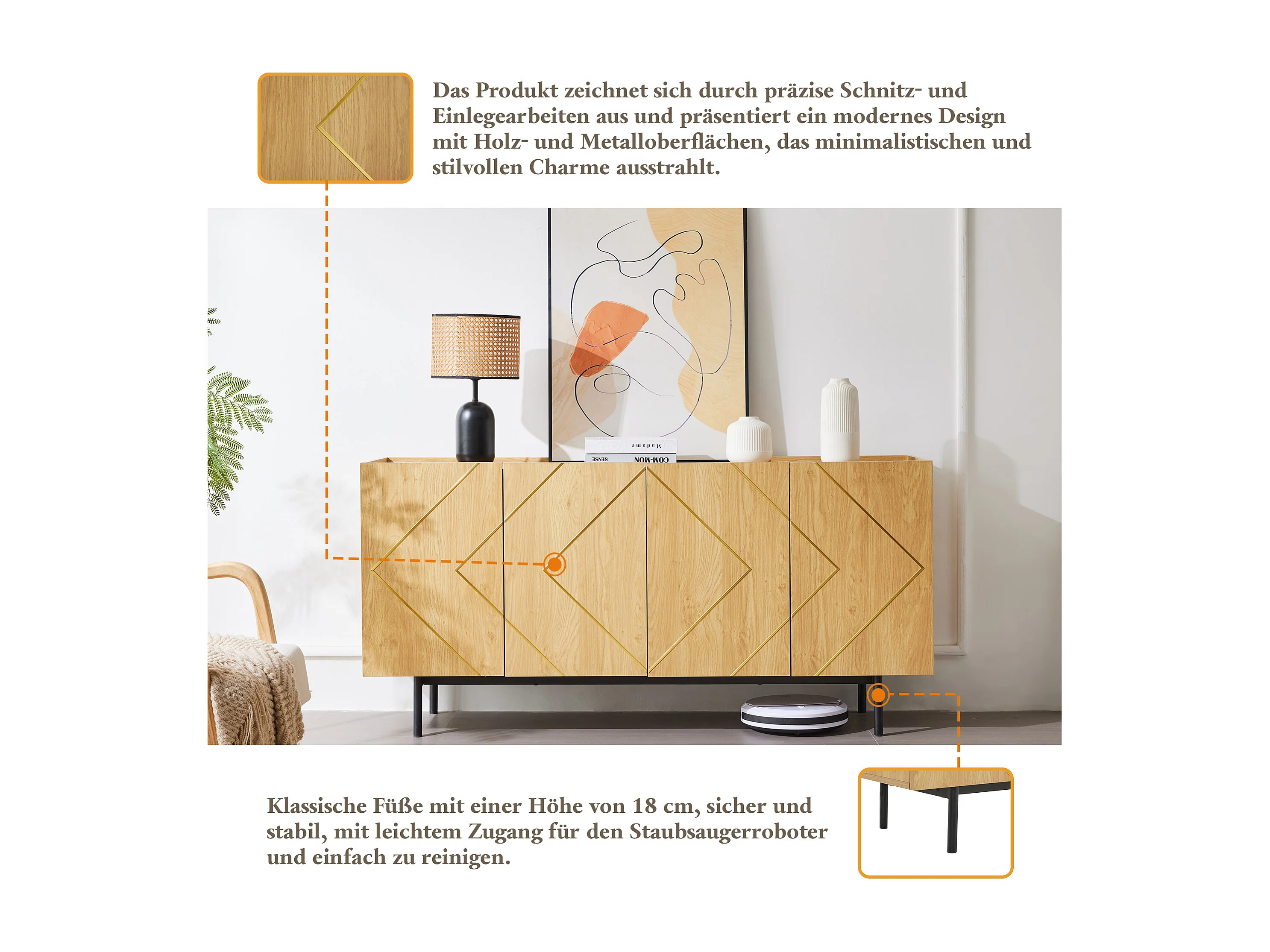 Buffet de salon avec 4 portes et incrustation métallique : commode polyvalente en bois naturel, dimensions 160×40×78 cm