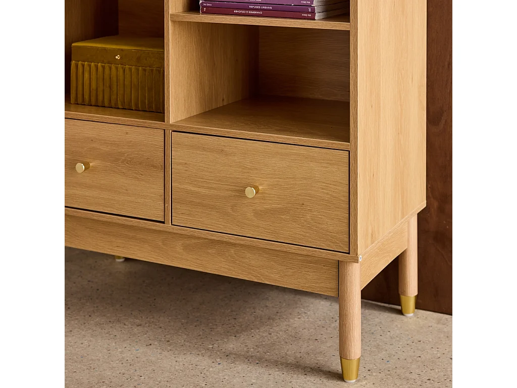 Buffet décor bois et cannage 1 porte 2 tiroirs teinte naturelle - 75 x 35 x 100 cm - Judith