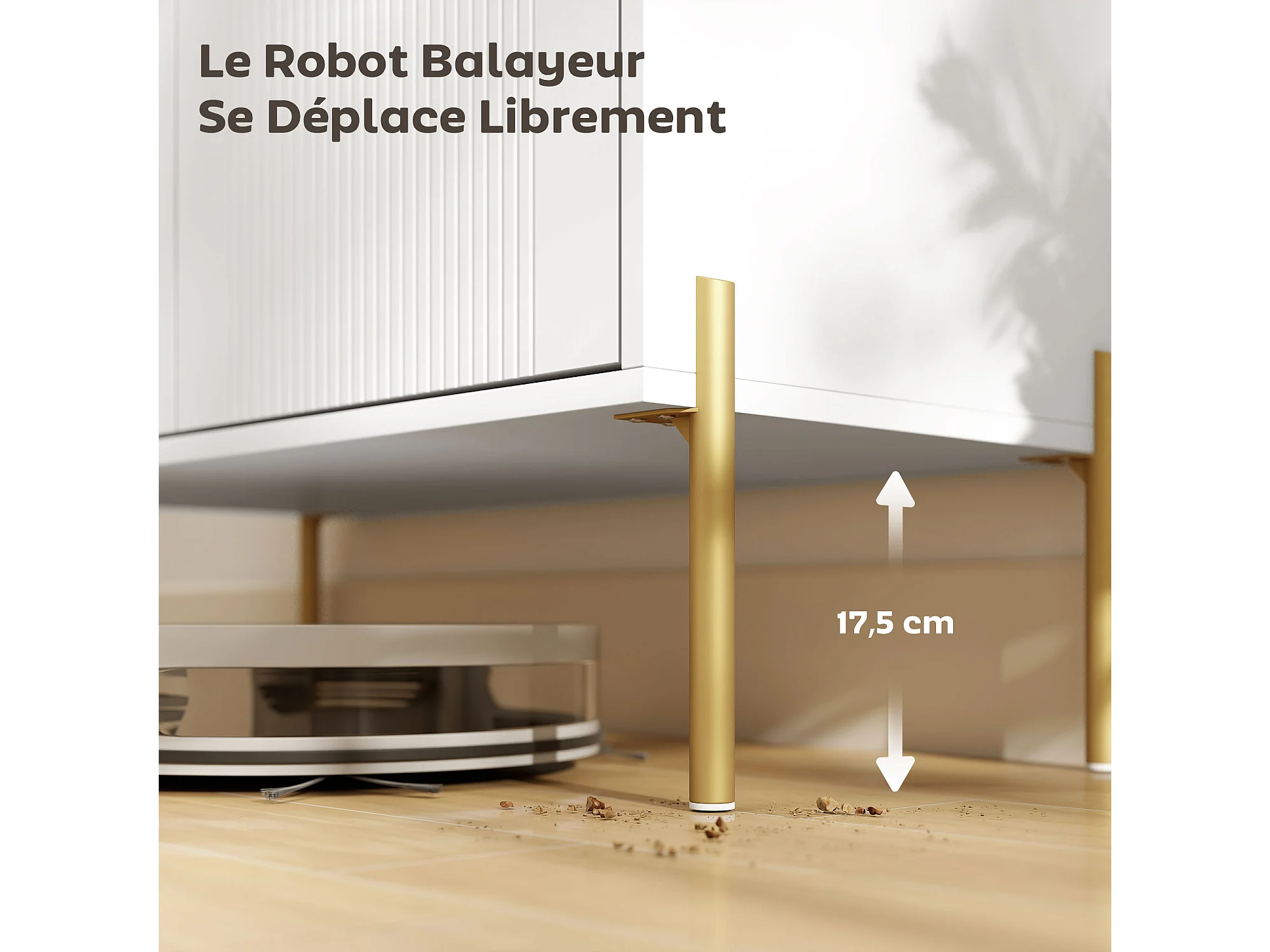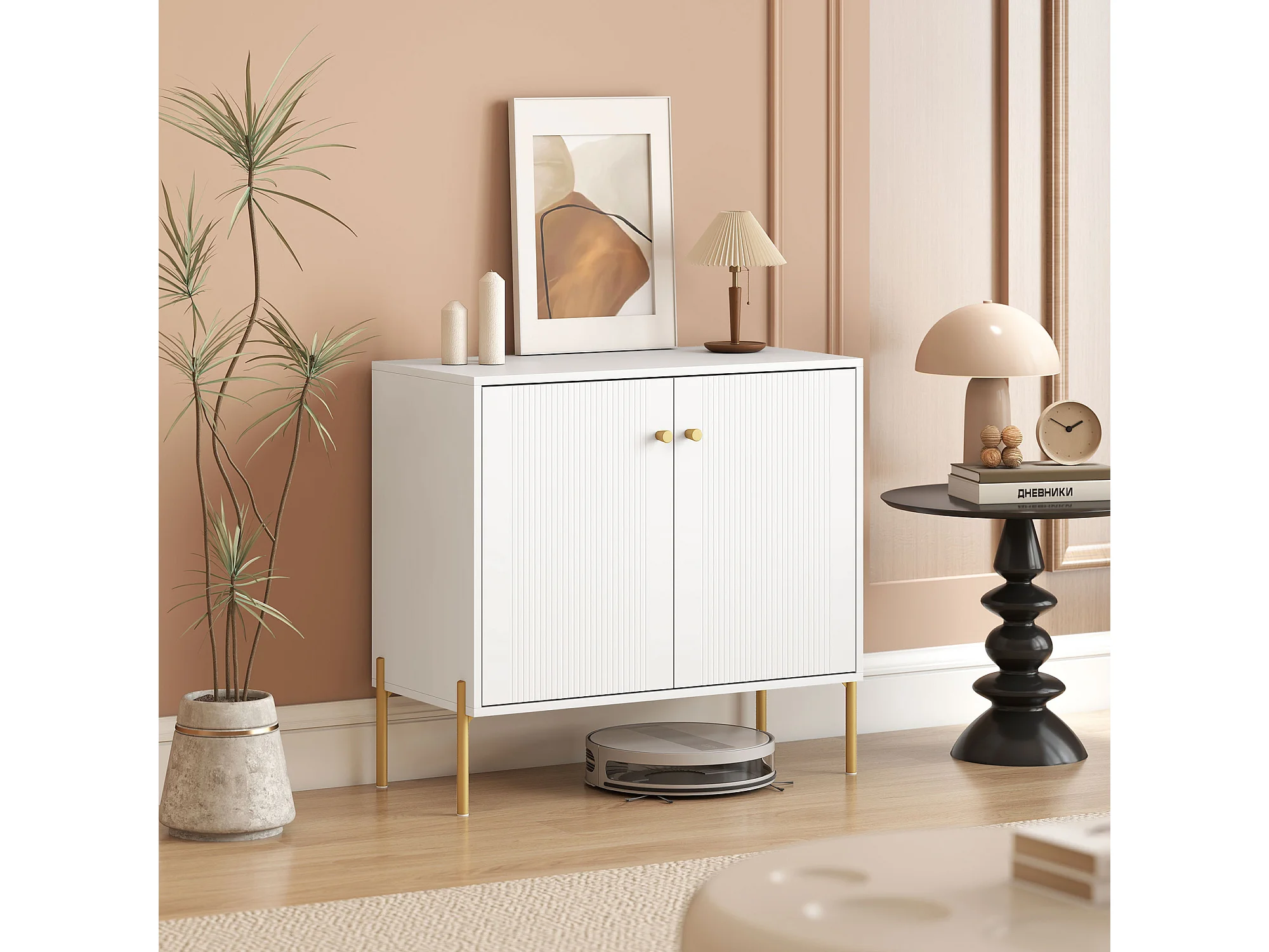 Buffet design - 2 portes, étagère - piètement poignées métal doré façade rainurée blanc
