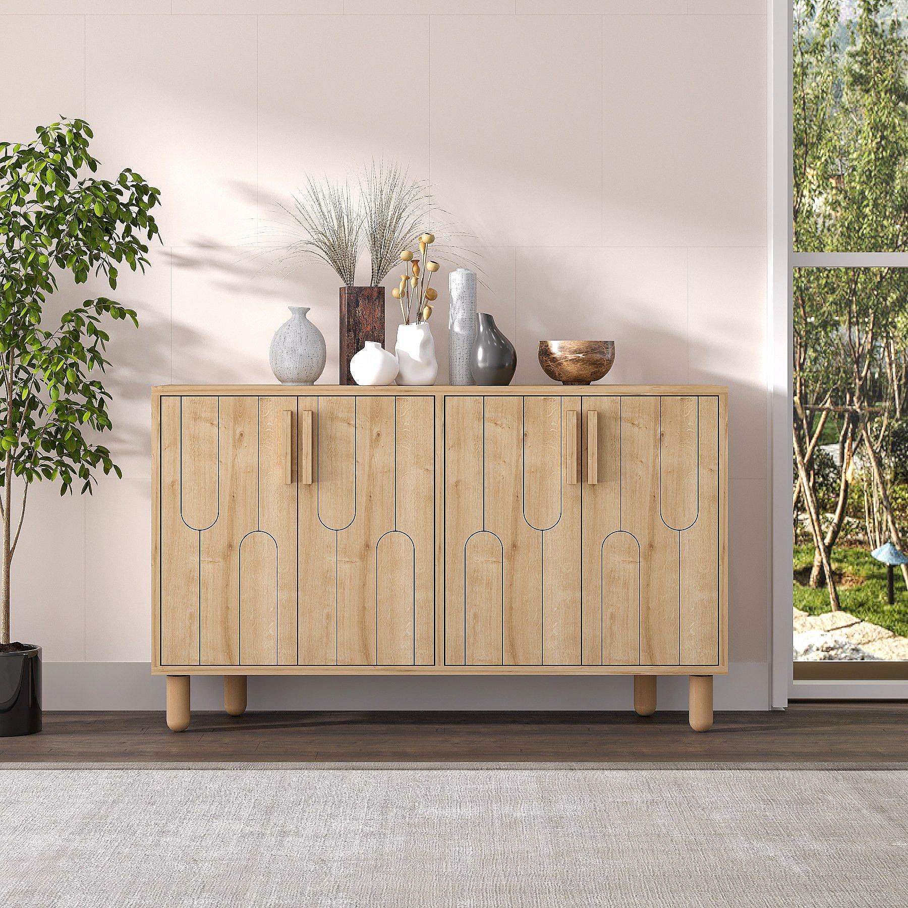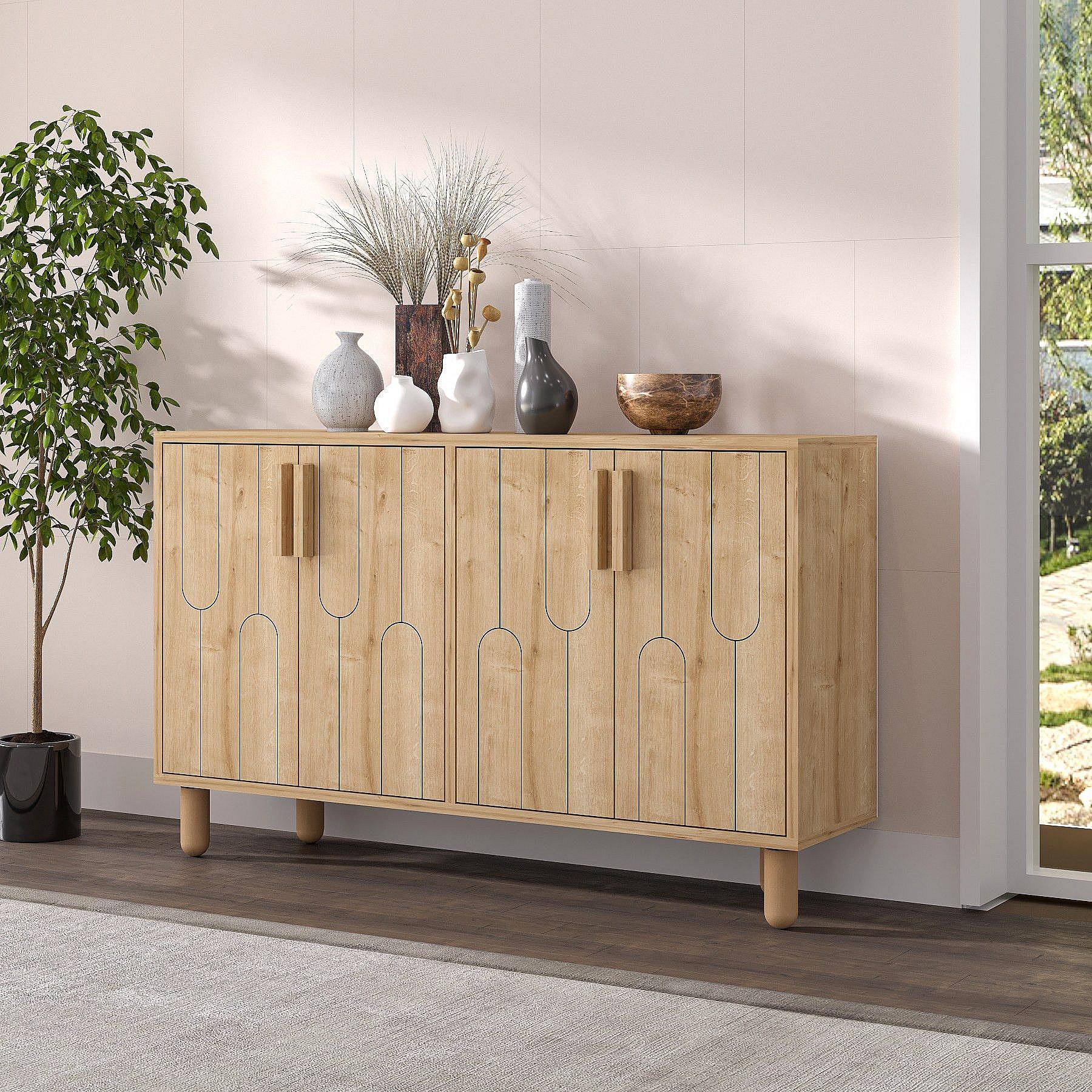 Buffet design 4 portes battantes Serka L120cm Chêne clair