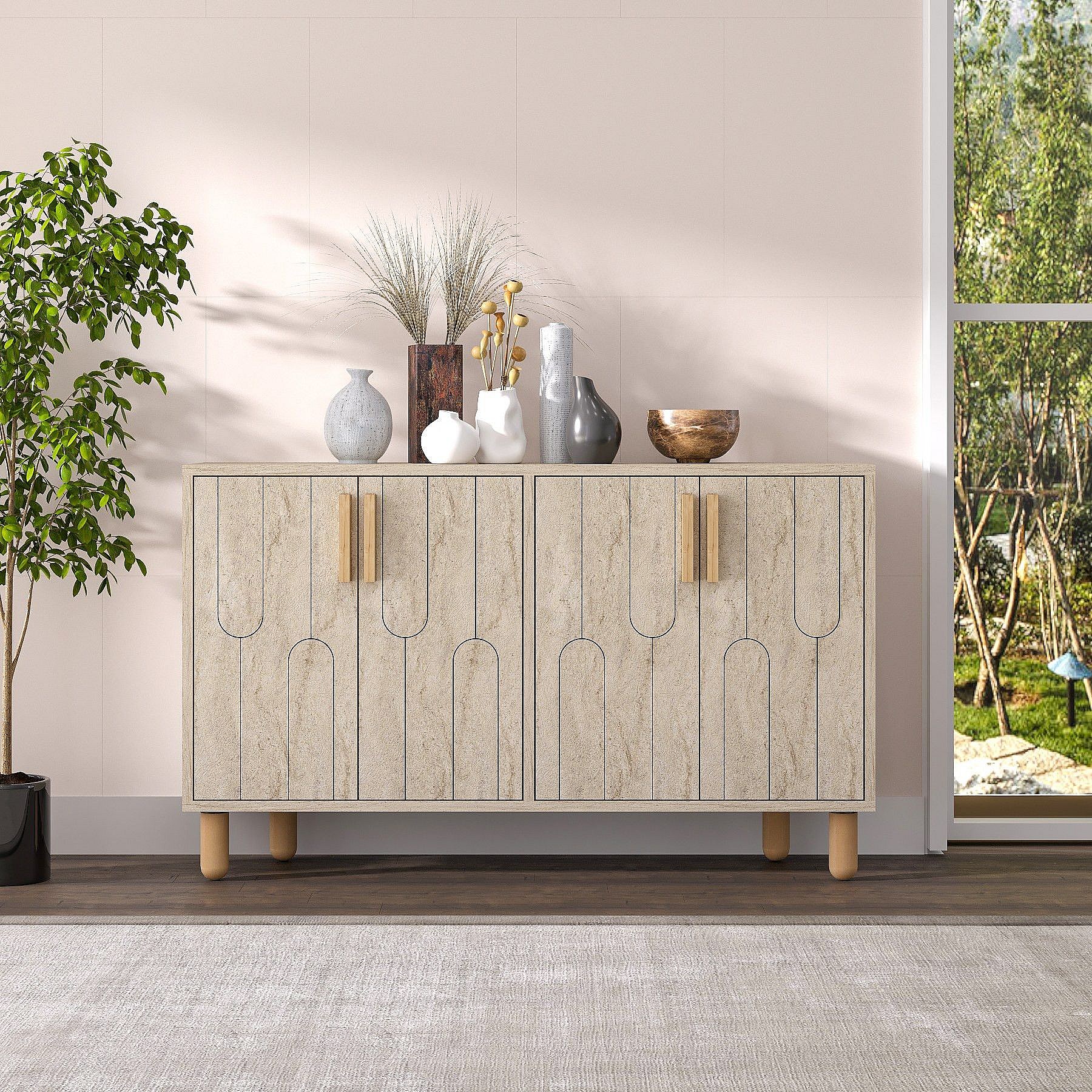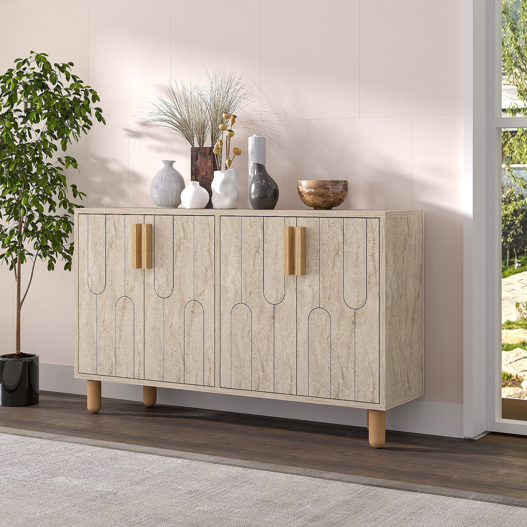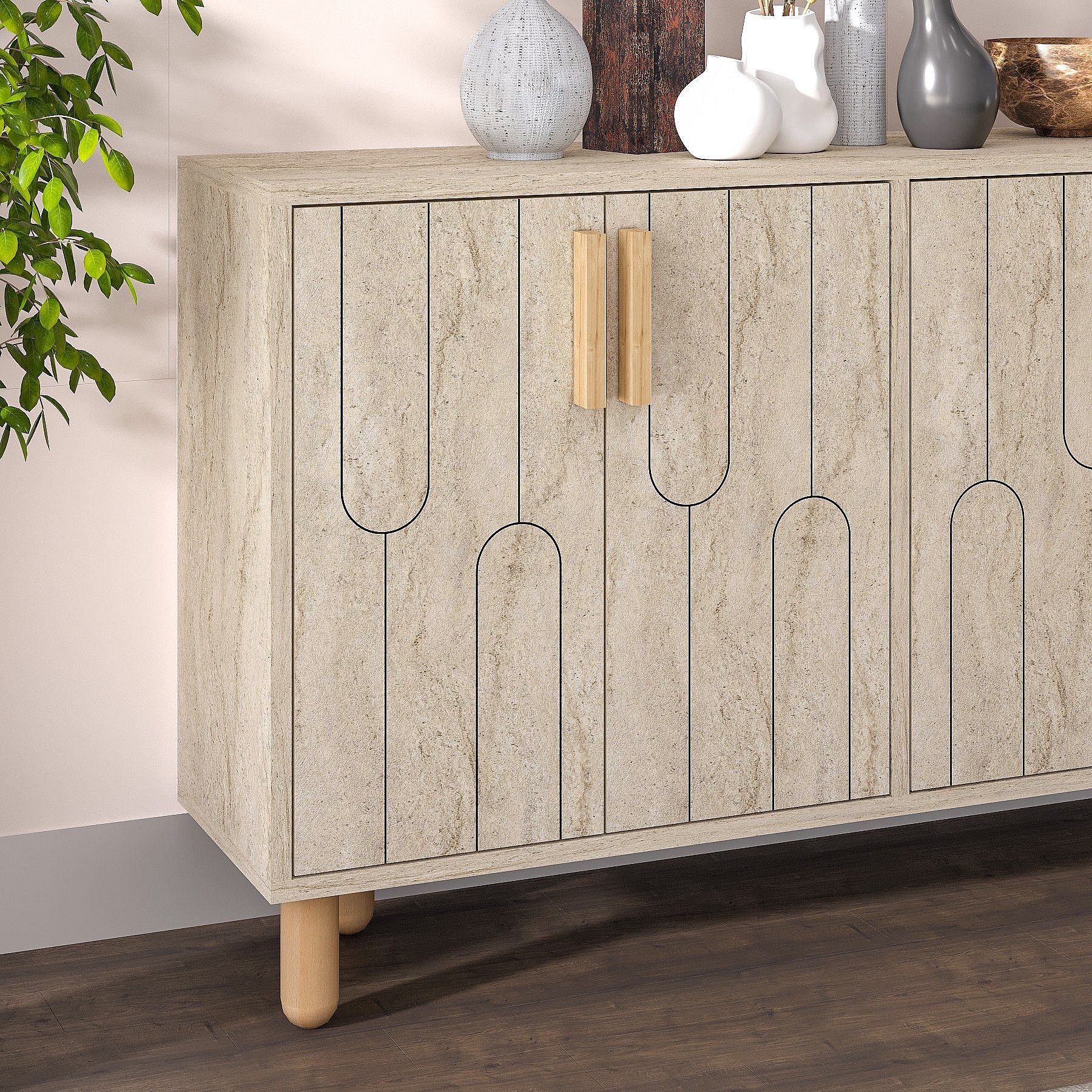 Buffet design 4 portes battantes Serka L120cm Effet travertin beige
