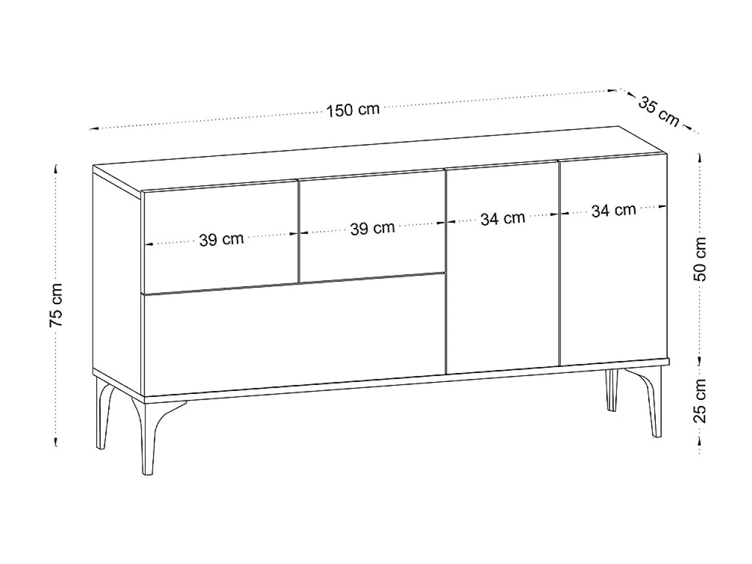 Buffet design 5 portes couleur bois 150 cm NILO