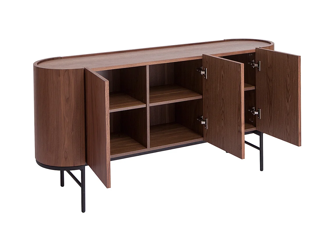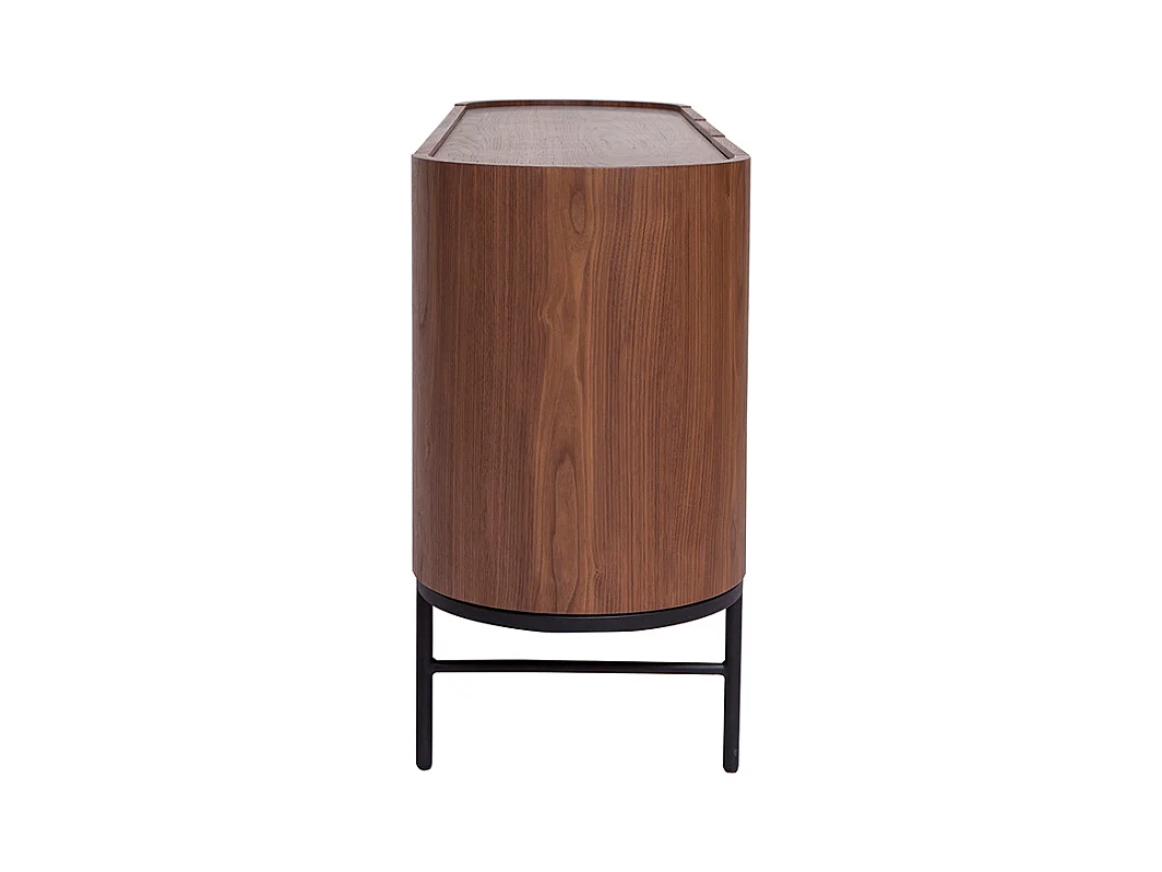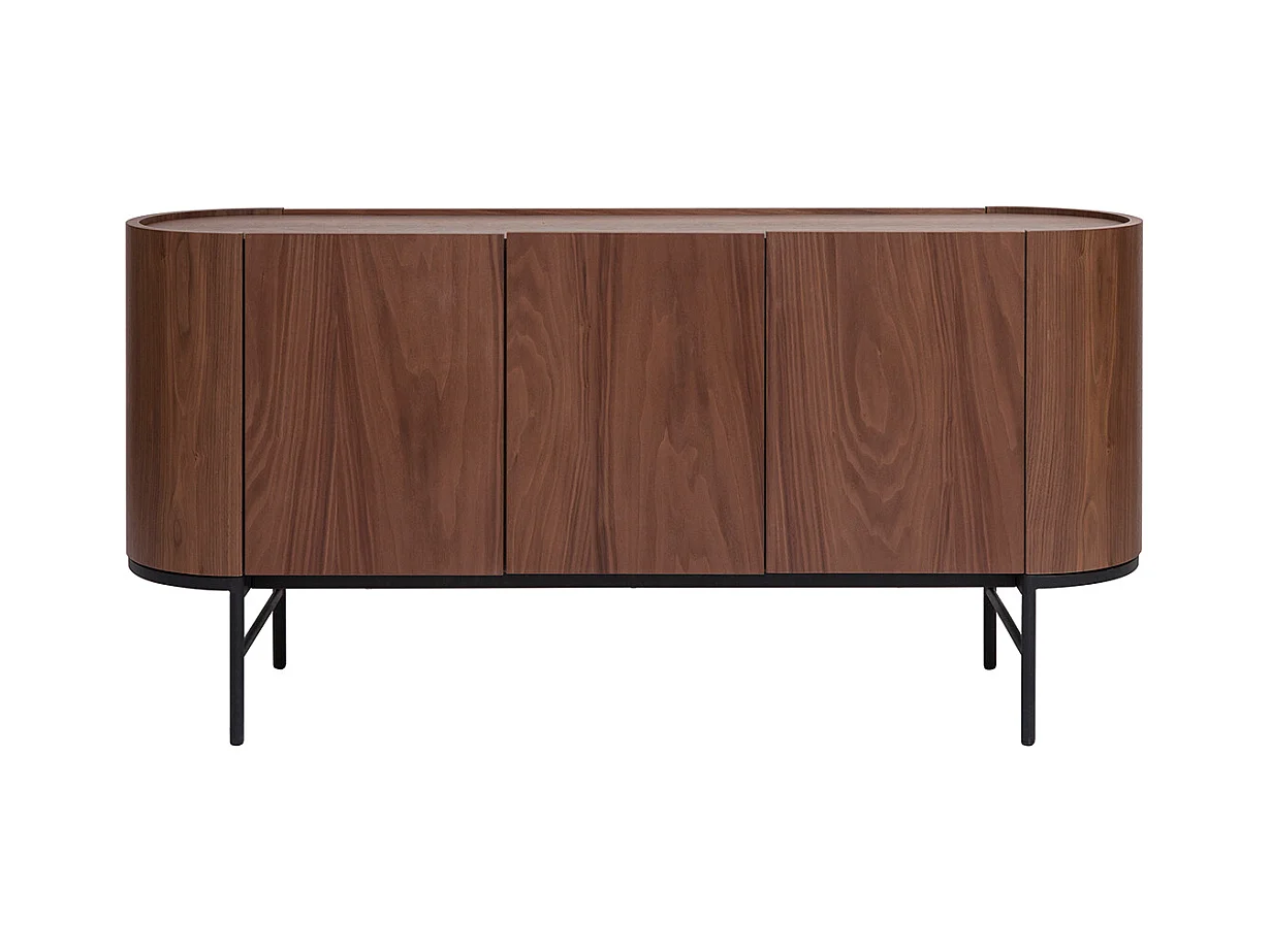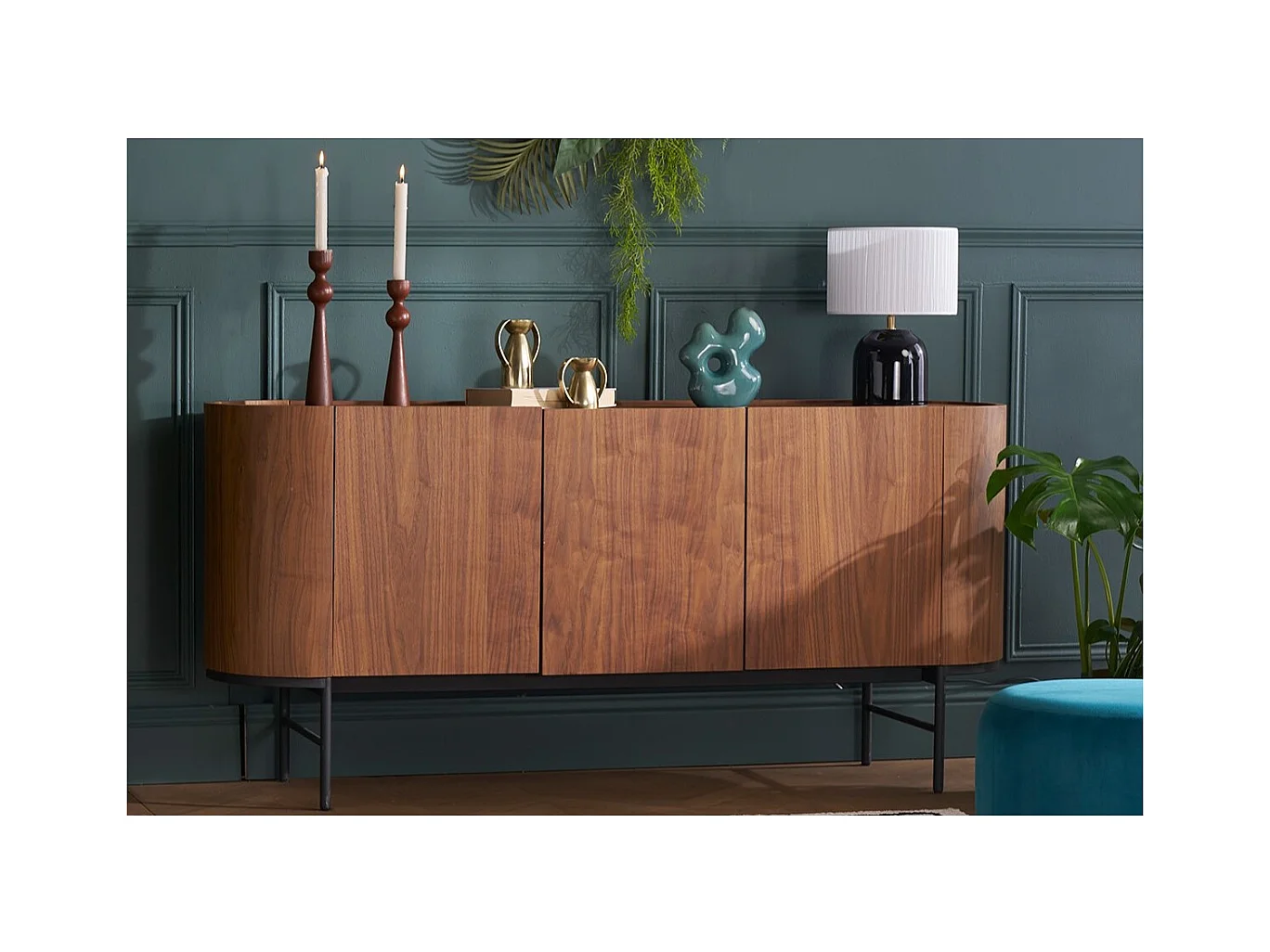Buffet design bois foncé noyer et métal noir 3 portes L160 cm SKYE