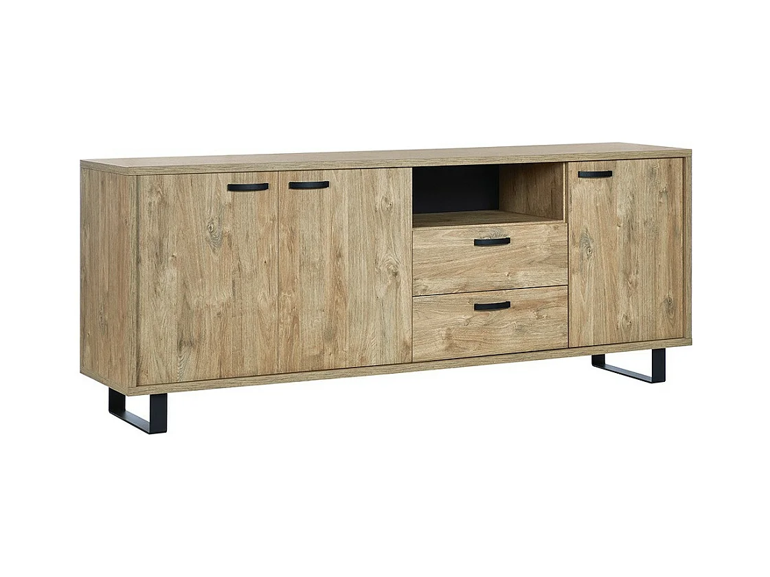 Buffet NEWTON XL 220 cm – 3 portes, 2 tiroirs – Chêne doré – Design moderne