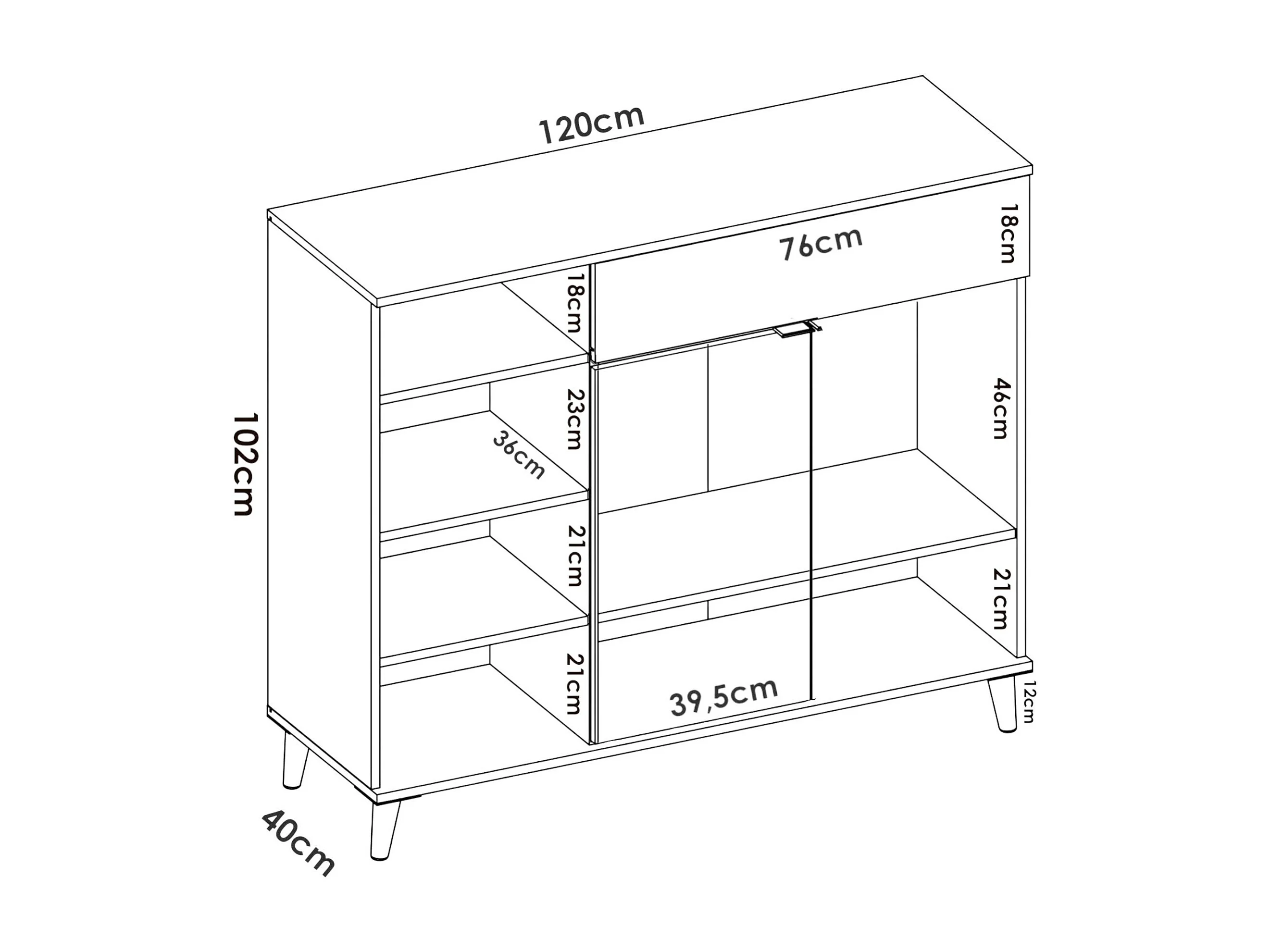 Buffet Dmezzon, Buffet garde-manger de salon, Buffet de salon moderne avec 2 portes, 120x40h102 cm, Blanc et Chêne