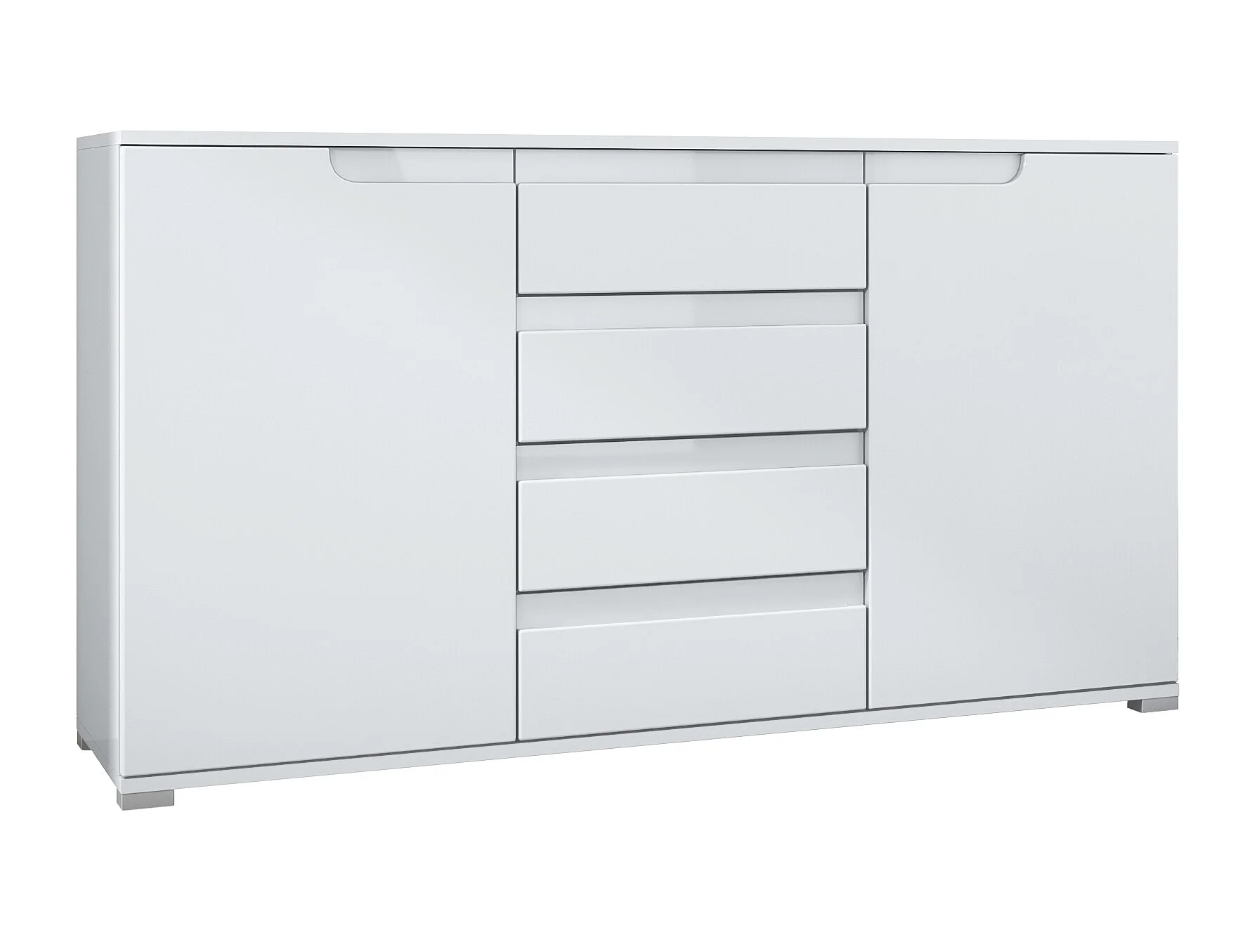 Buffet Dressoir Sylt, Corps en Noir mat / Façades en blanc mat avec un decor en blanc haute brillance (139 x 72 x 35)