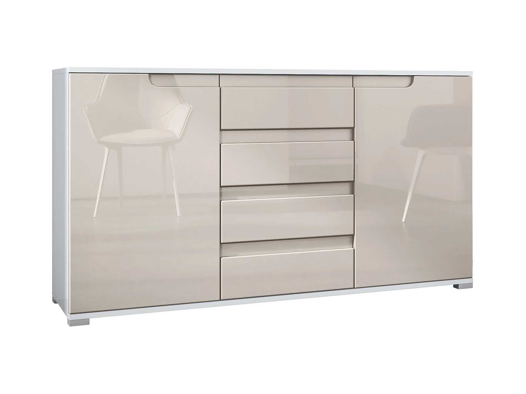 Buffet Dressoir Sylt, Corps en Noir mat / Façades en gris sable haute brillance avec un decor en blanc haute brillance (139 x 72 x 35)