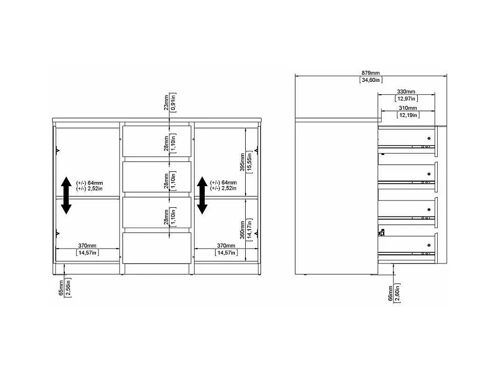 Buffet Dsalmas, Buffet du salon, Commode de salon, Garde-manger de cuisine, 121x50 h91 cm, Blanc