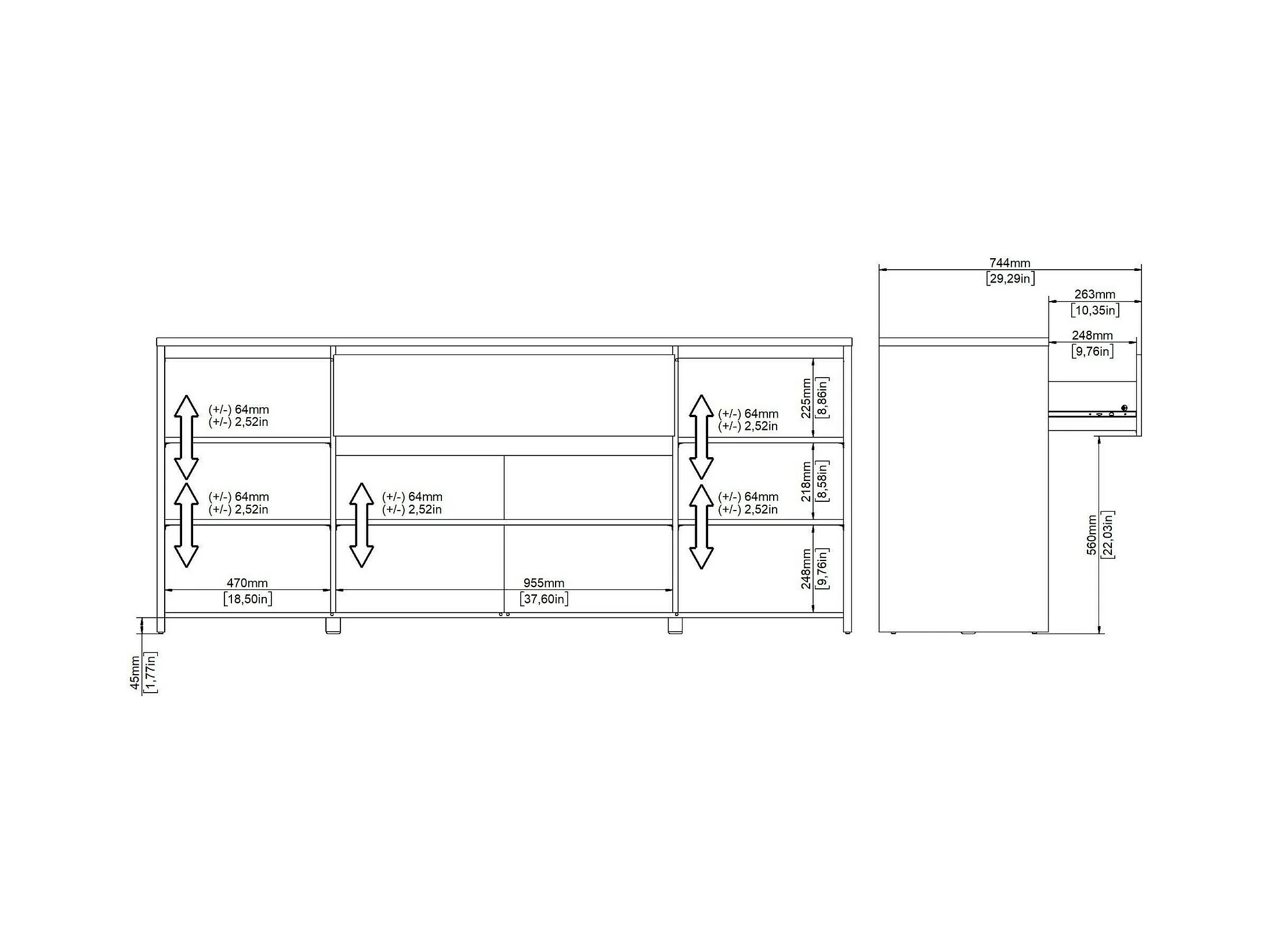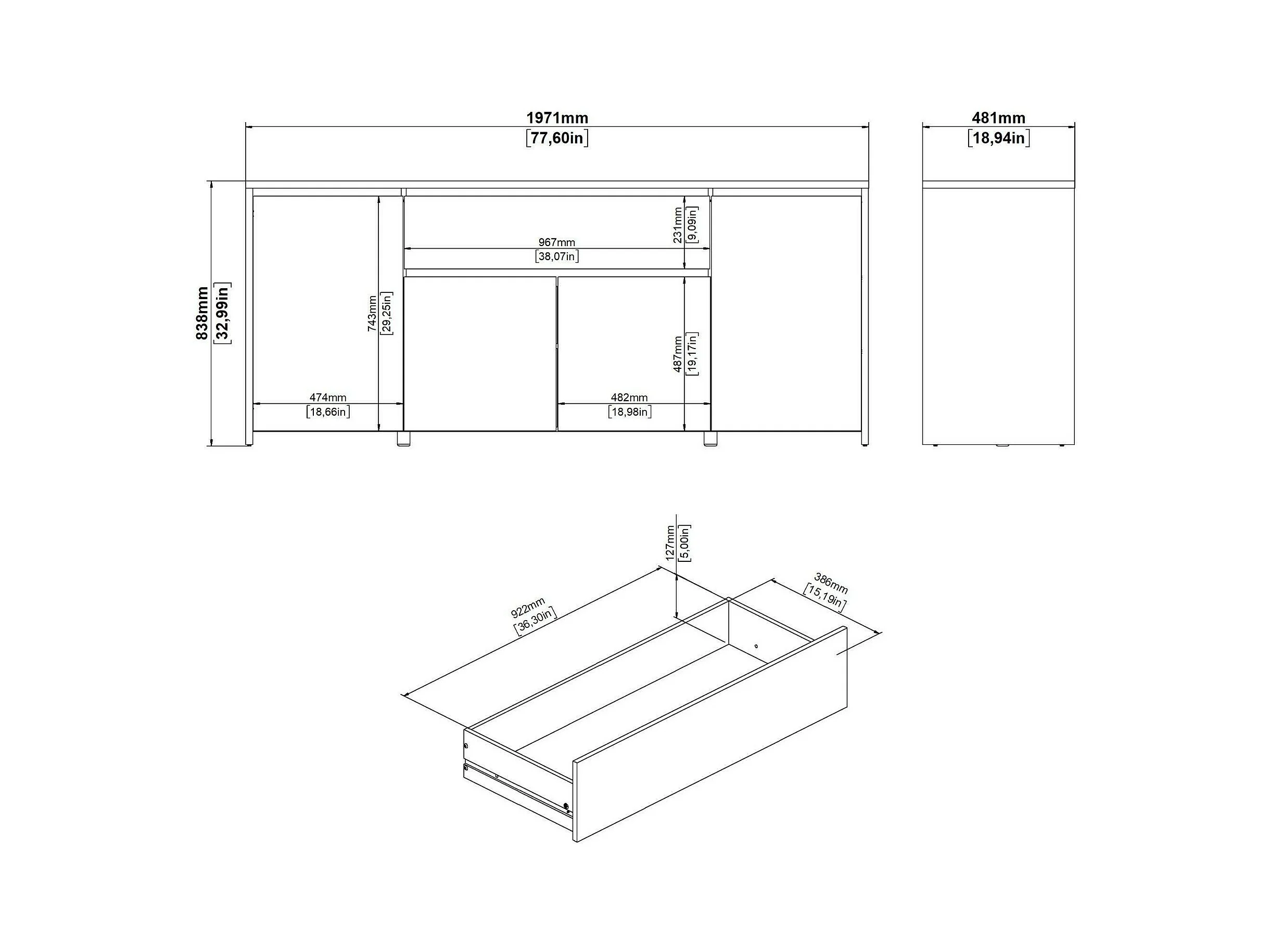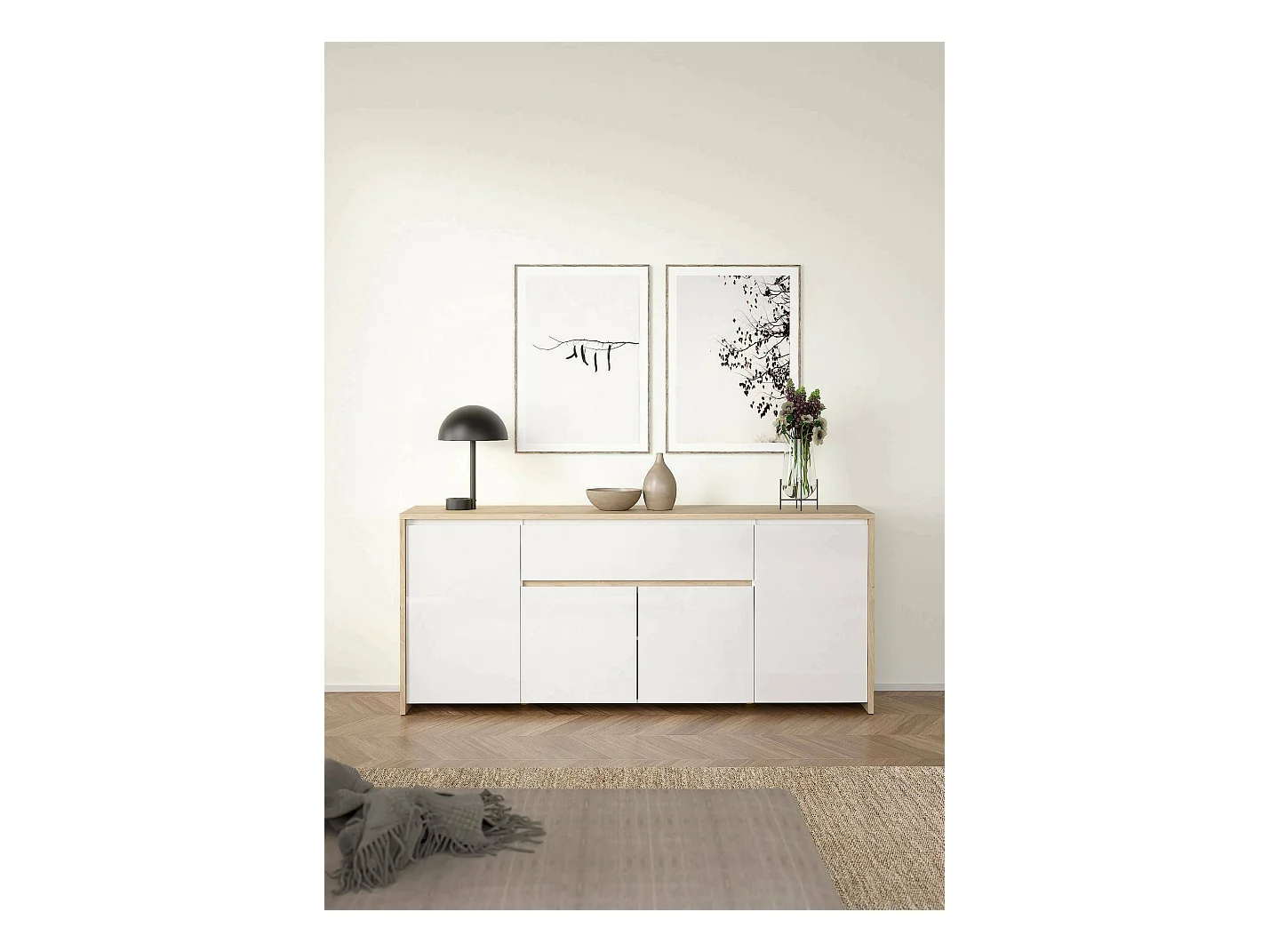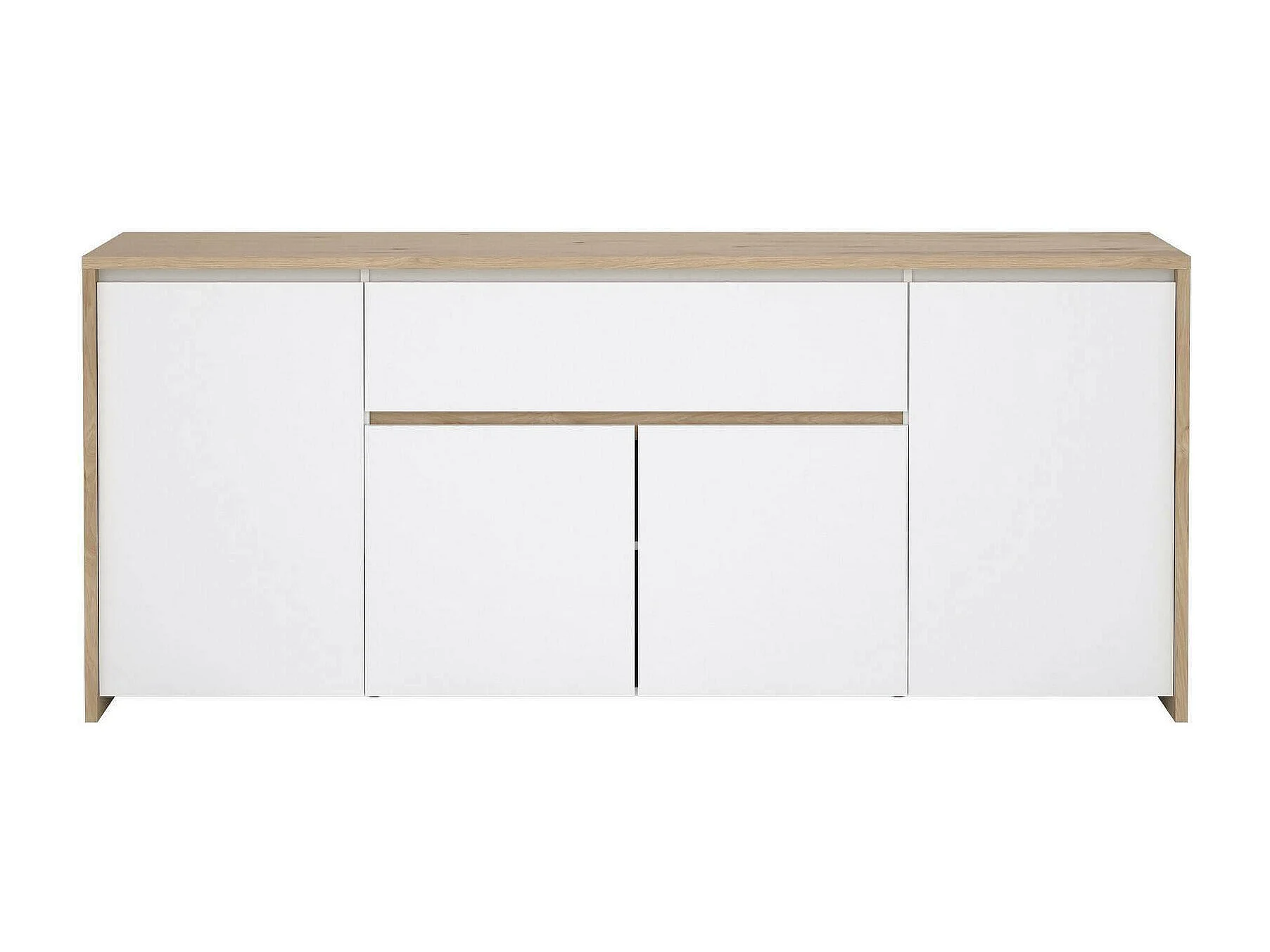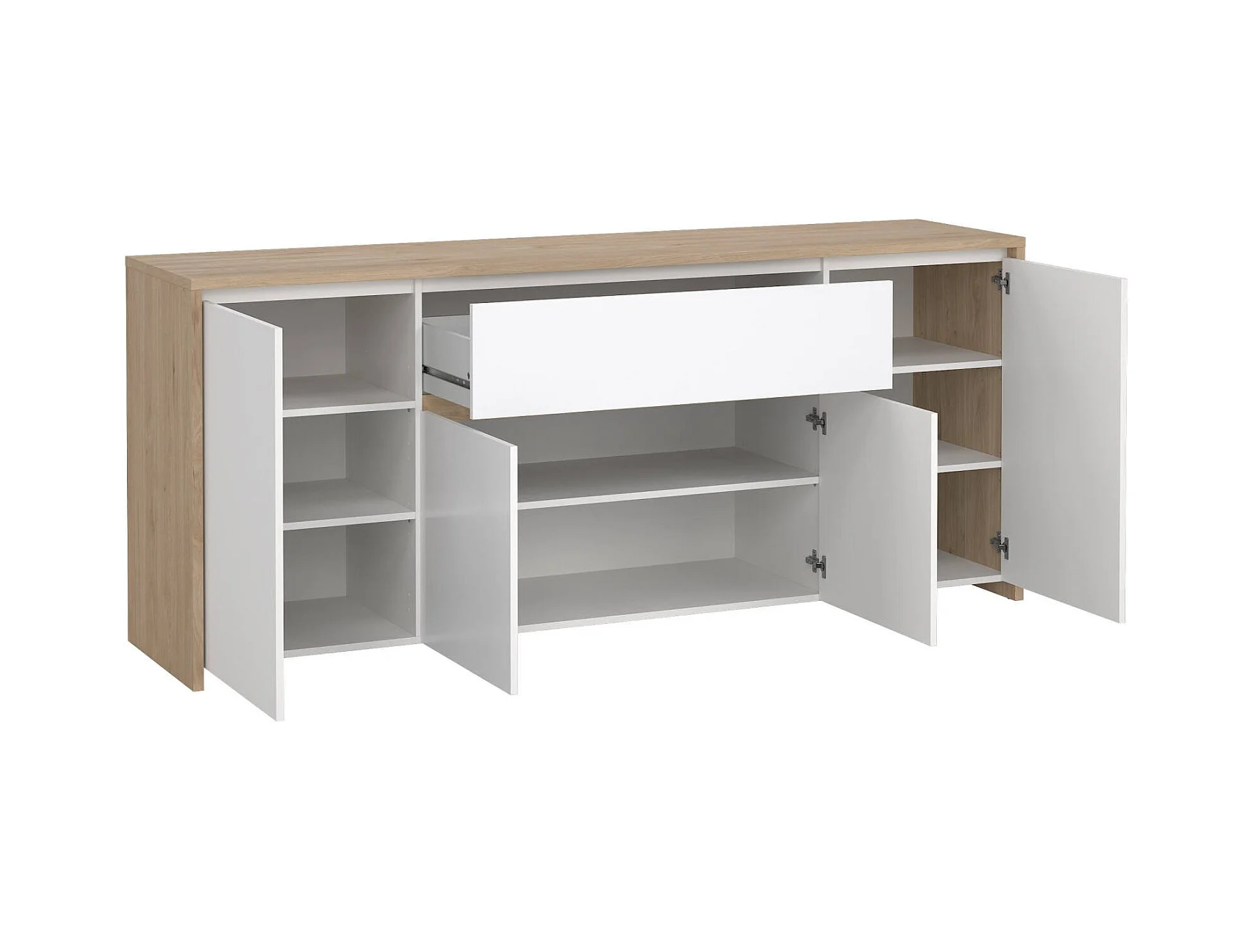 Buffet Dsalv, Buffet du salon, Commode de salon, Garde-manger de cuisine, 197x48 h84 cm, Chêne clair et Blanc
