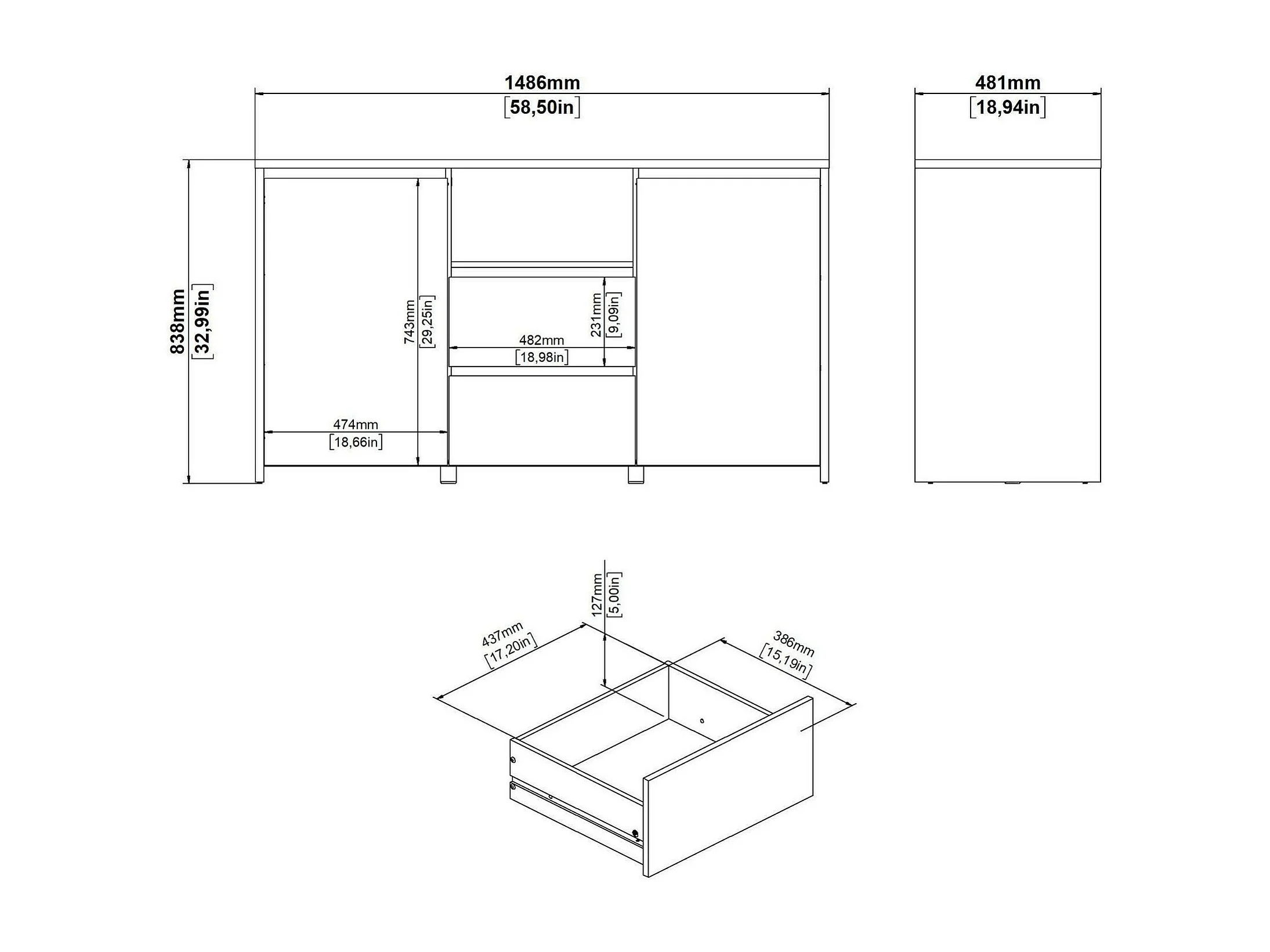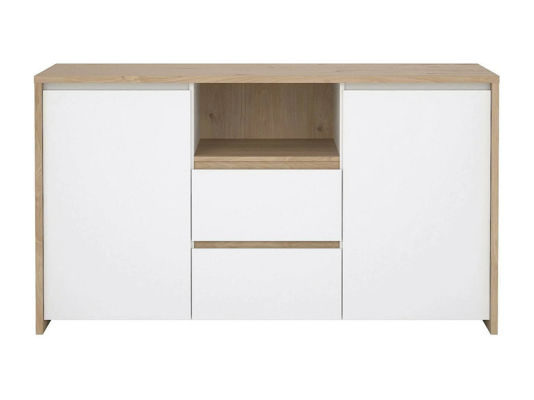 Buffet Dsalva, Buffet du salon, Commode de salon, Garde-manger de cuisine, 149x48 h84 cm, Chêne clair et Blanc