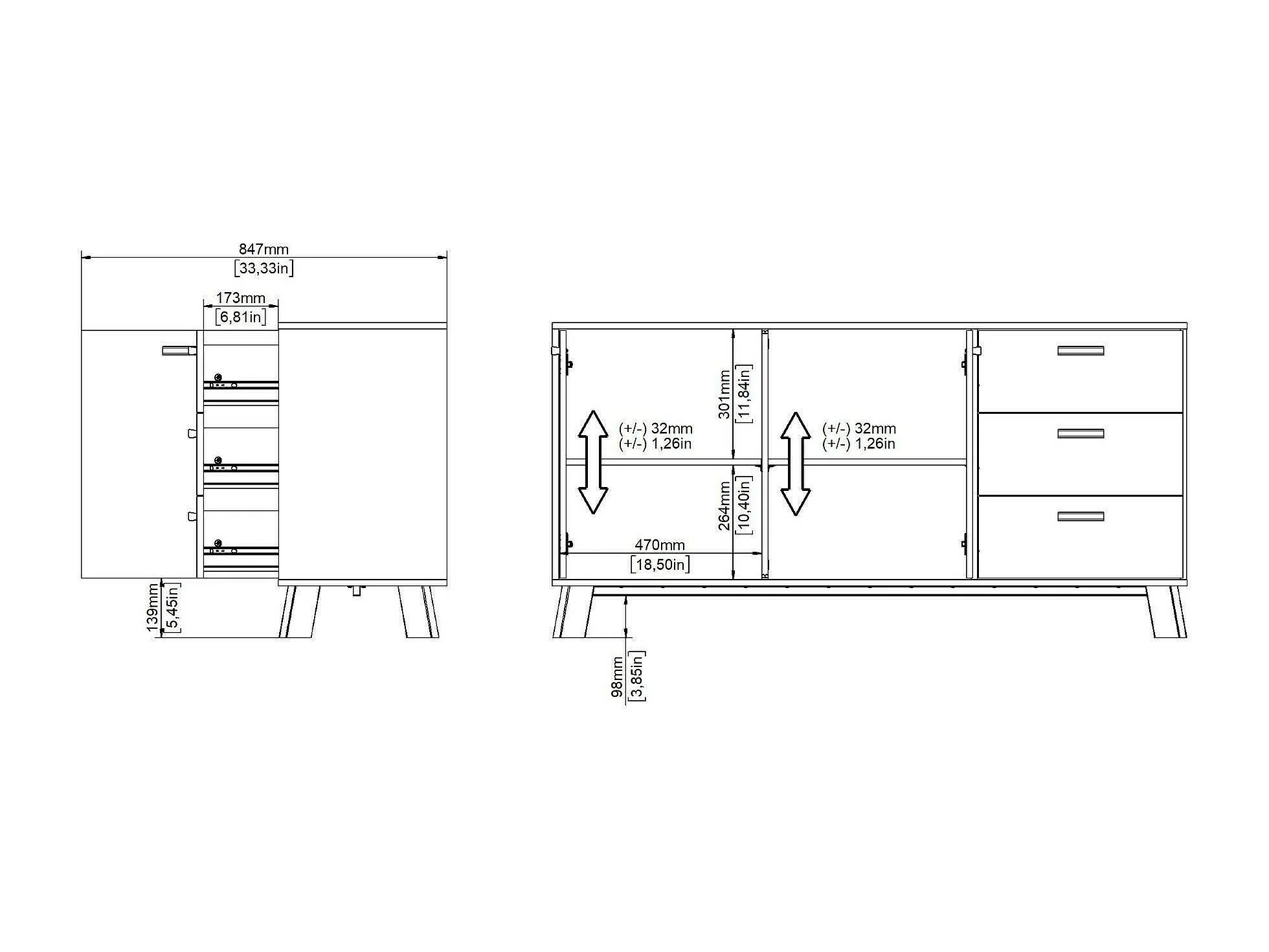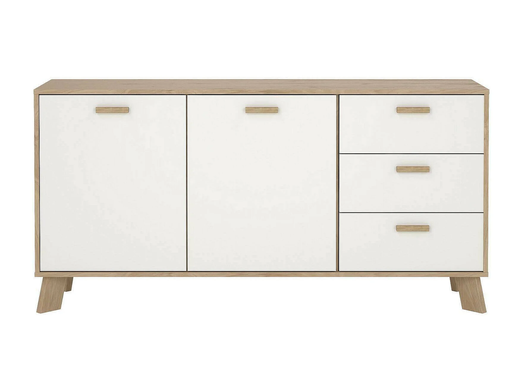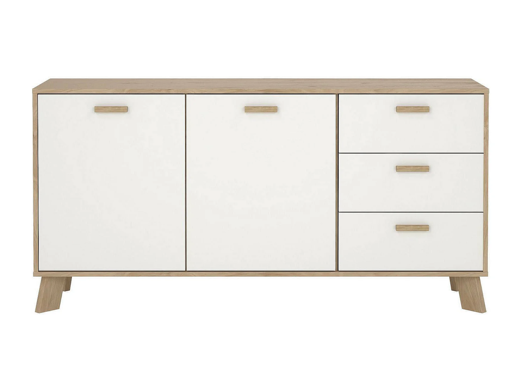 Buffet Dsanc, Buffet du salon, Commode de salon, Garde-manger de cuisine, 147x39 h73 cm, Chêne clair et Blanc