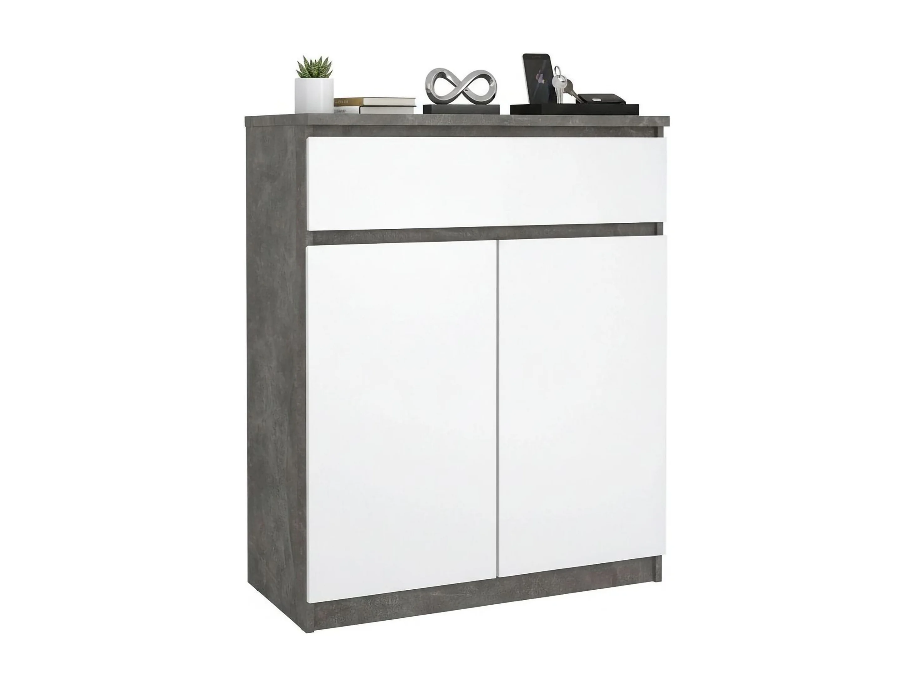 Buffet Dsanturr, Buffet du salon, Commode de salon, Garde-manger de cuisine, 80x40 h100 cm, Ciment et blanc