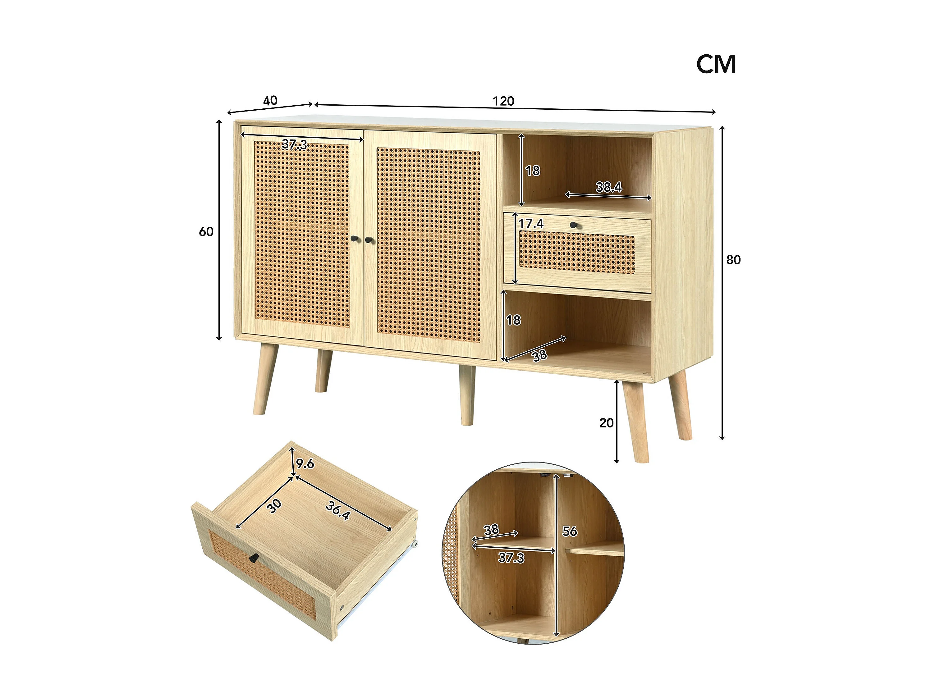 URBAN MEUBLE Buffet effet bois chêne et tissage en rotin avec 1 tiroir et 2 portes 120x40x80cm