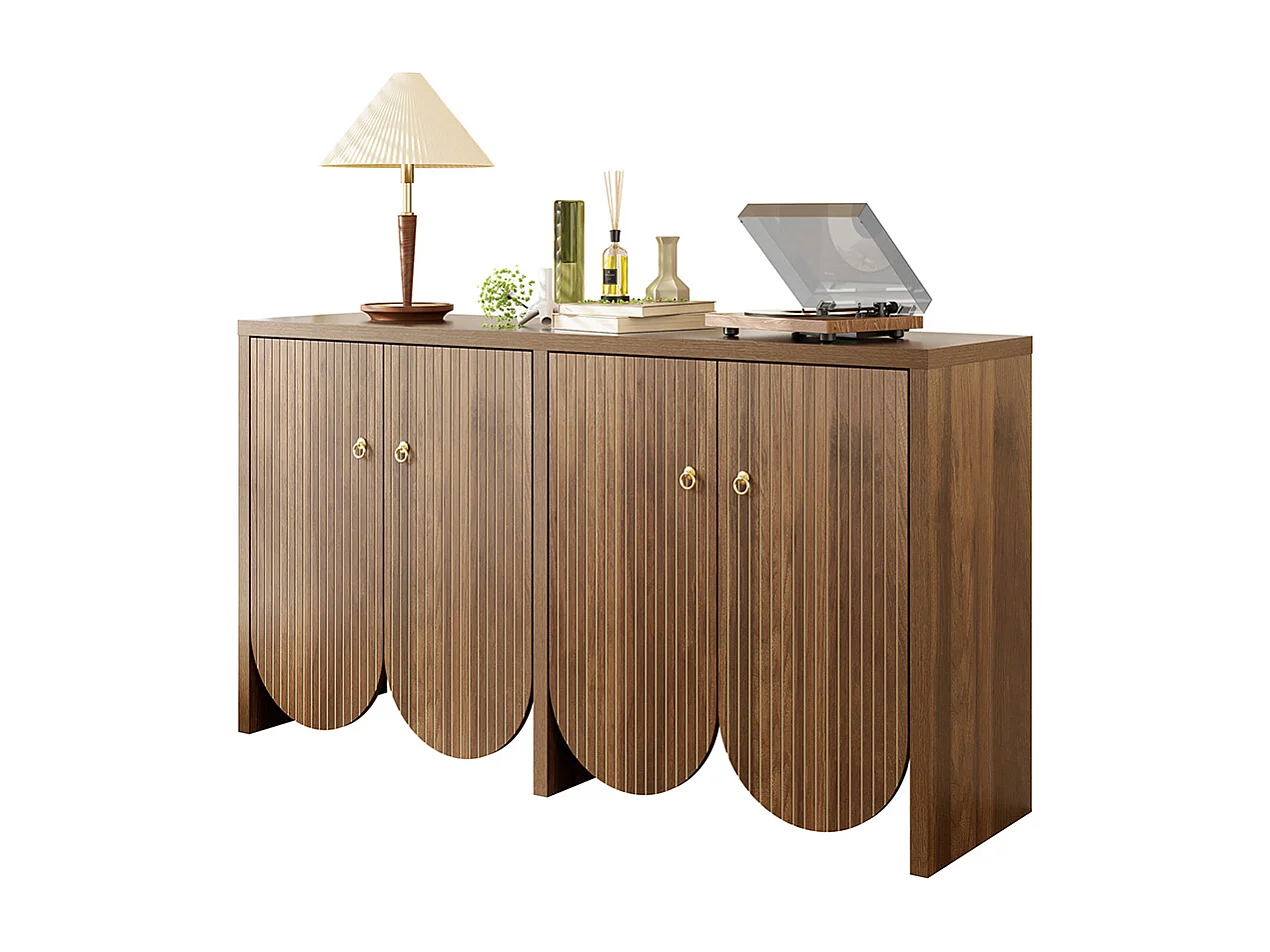 Buffet élégant aspect noyer avec 4 portes étagères réglables et poignées en aluminium