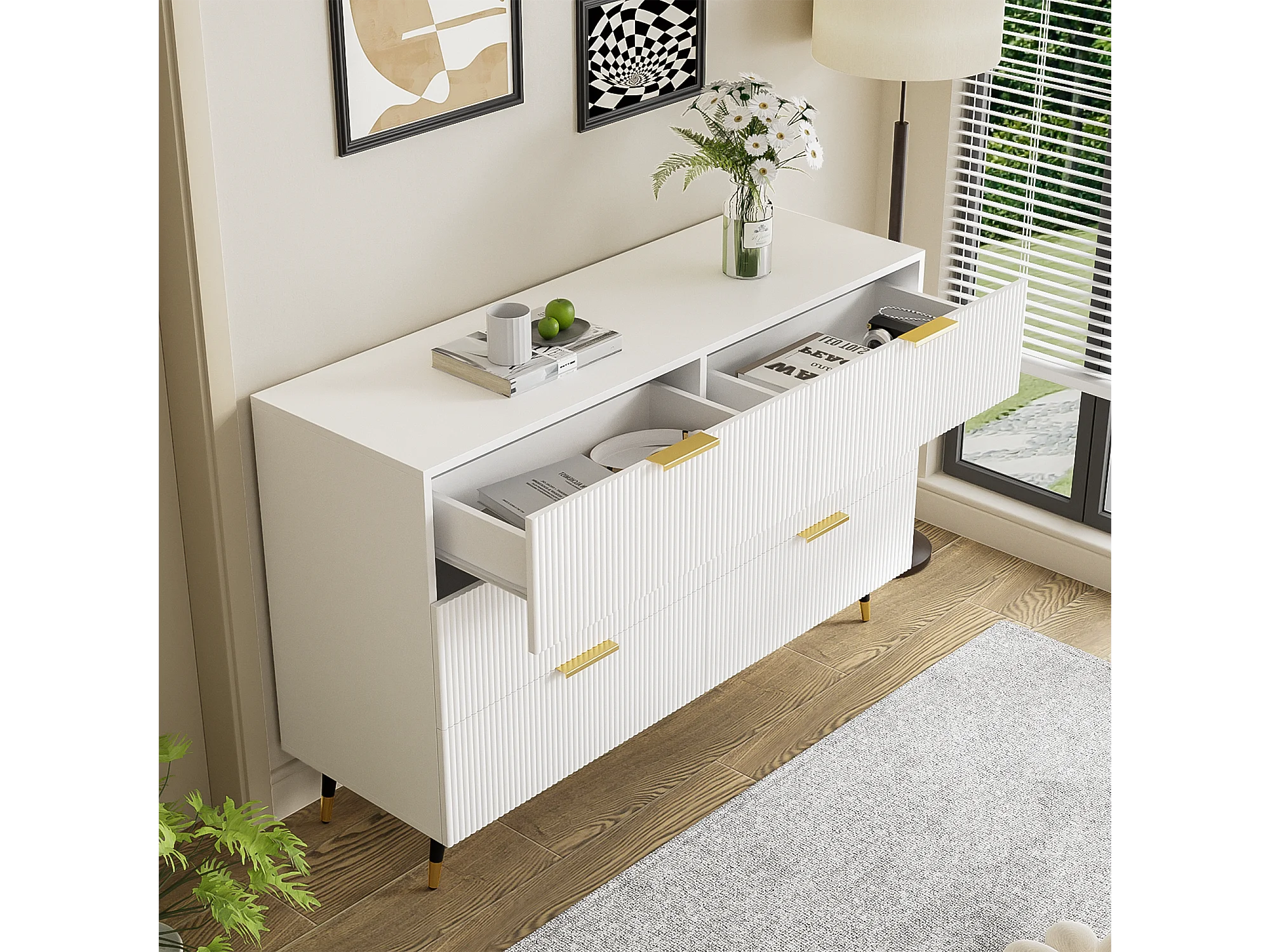 URBAN MEUBLE Buffet élégant blanc design moderne, 6 tiroirs poignets et point de pieds dorés 120*40*77cm