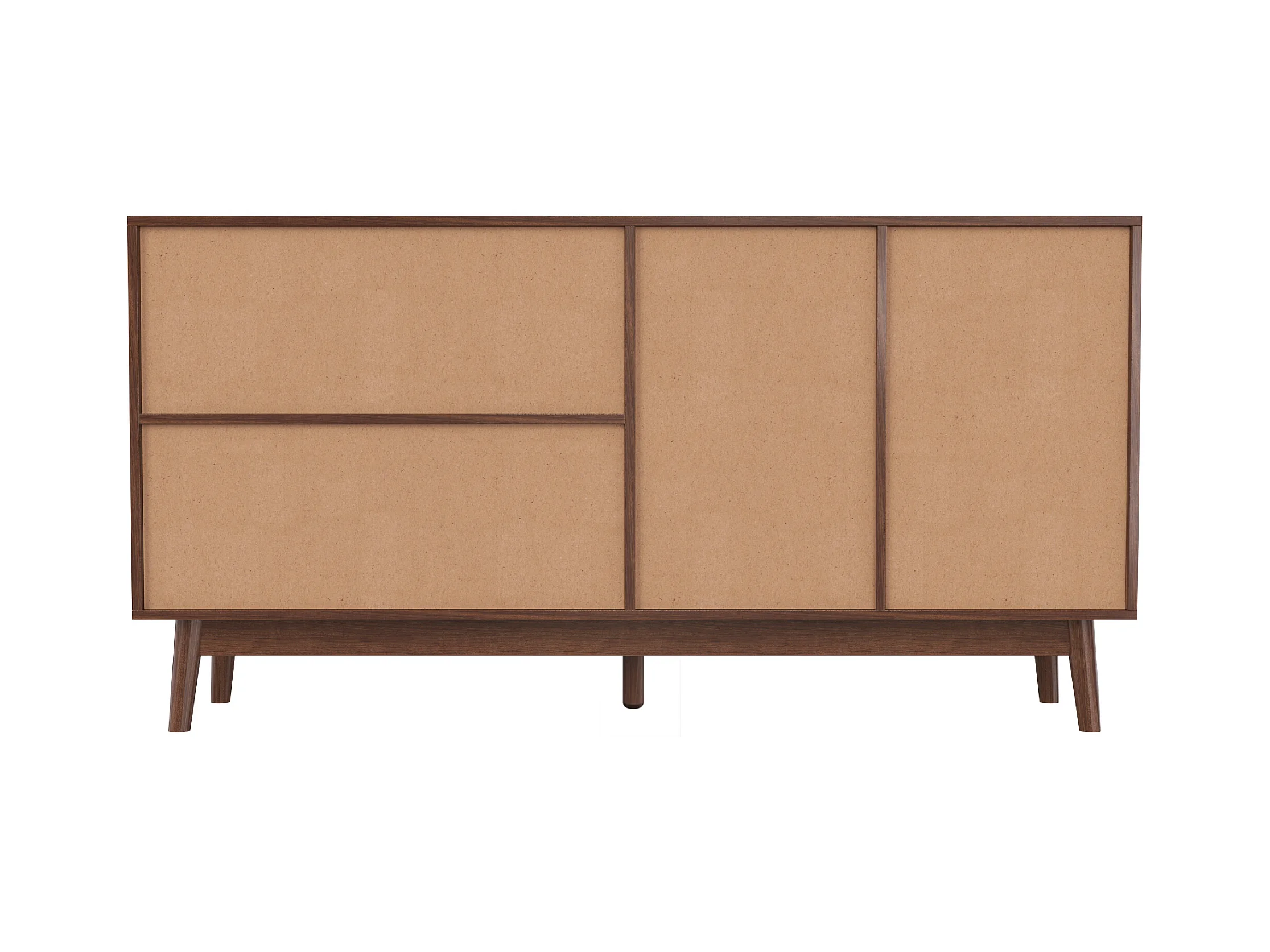 Buffet élégant - buffet bas avec 3 portes en rotin et 2 tiroirs - couleur bois foncé