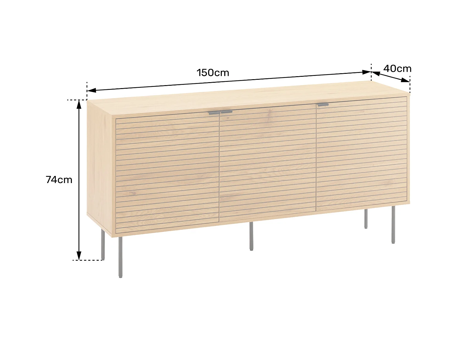 Buffet en bois 3 portes 150cm STINNA - HAPPY GARDEN
