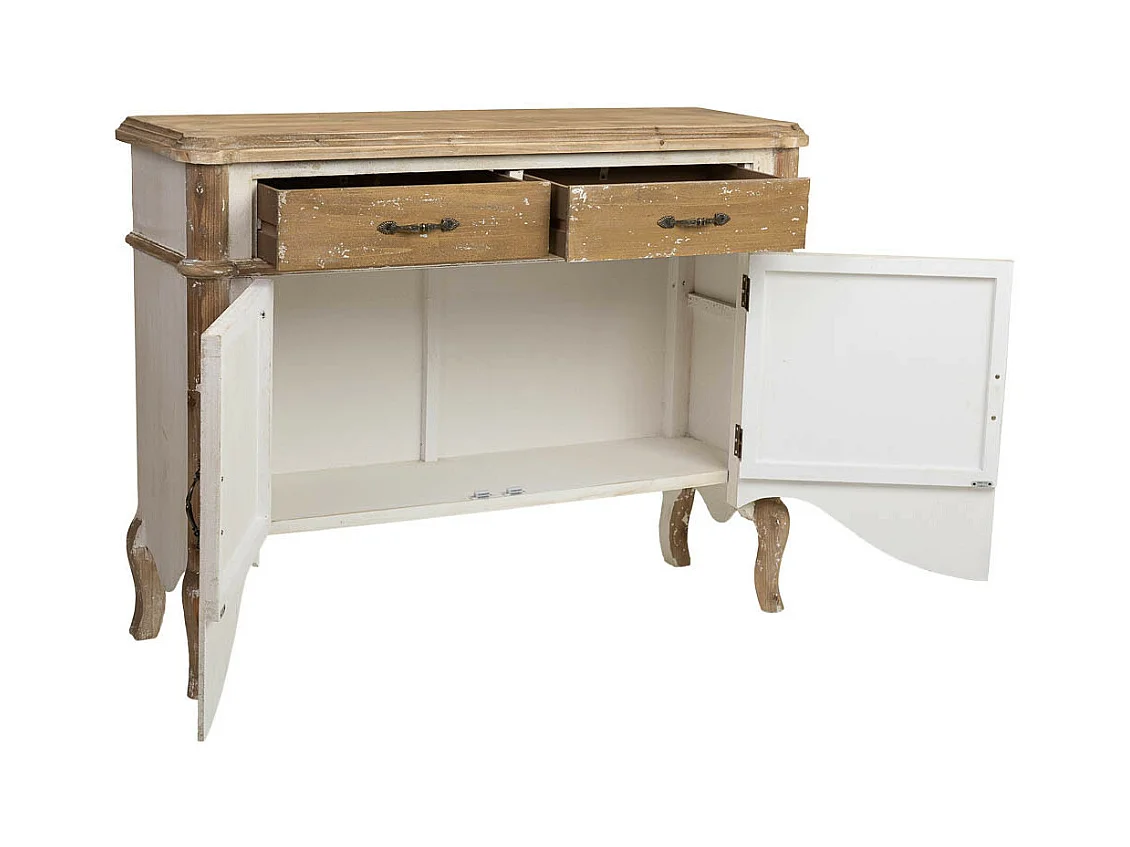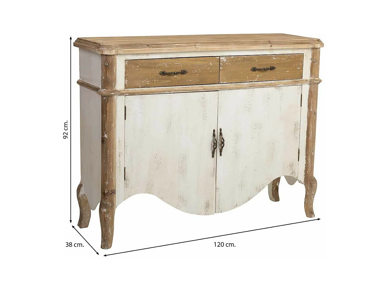 Buffet en bois avec 2 portes et 2 tiroirs en fini vieilli 120x38x92
