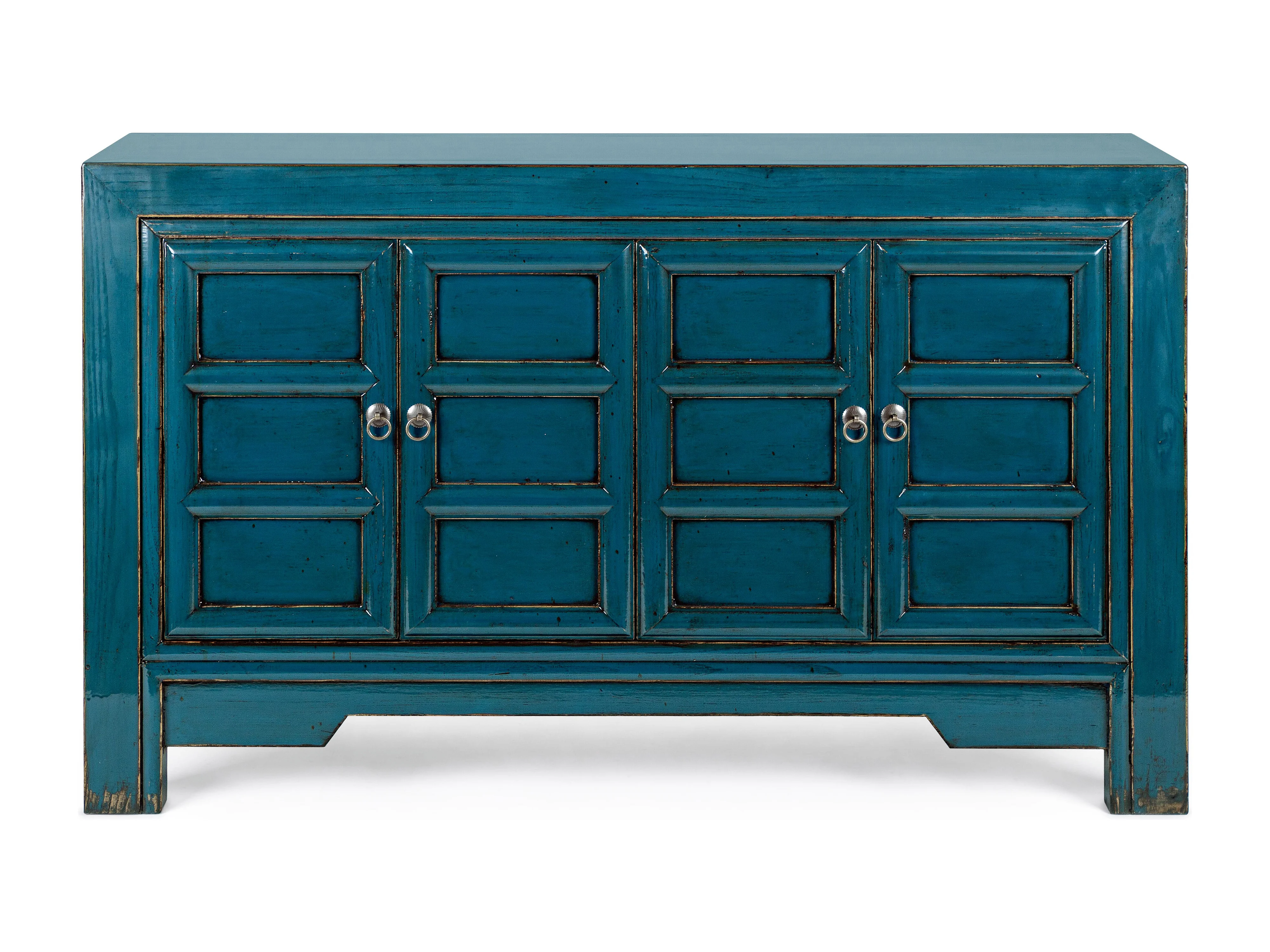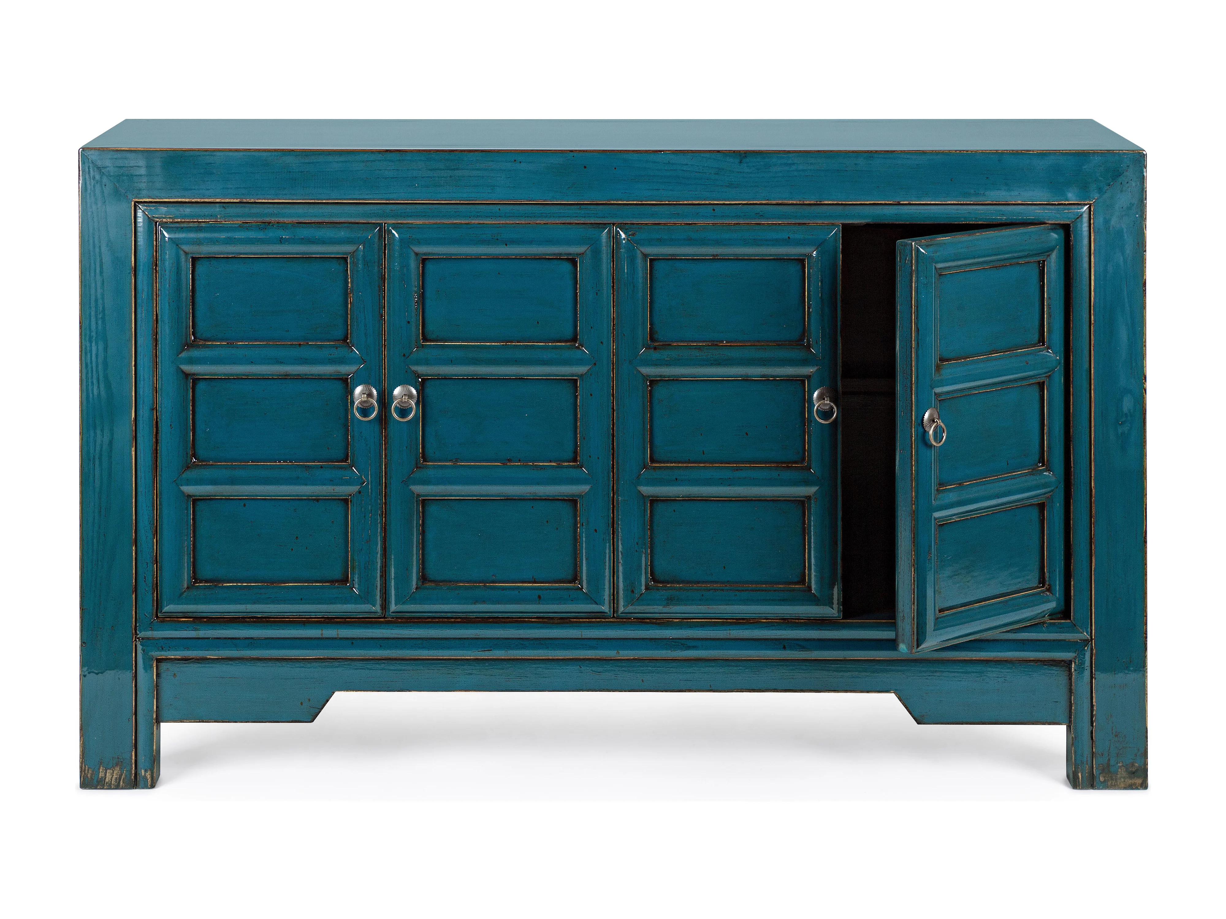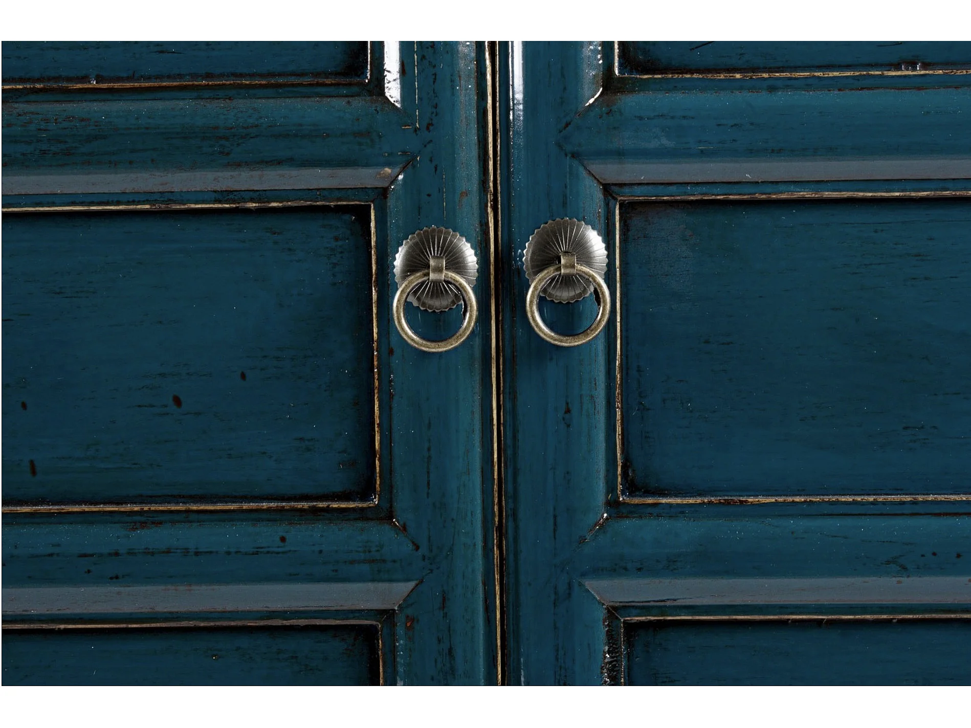 Buffet en bois bleu canard 4 portes Juan 133cm
