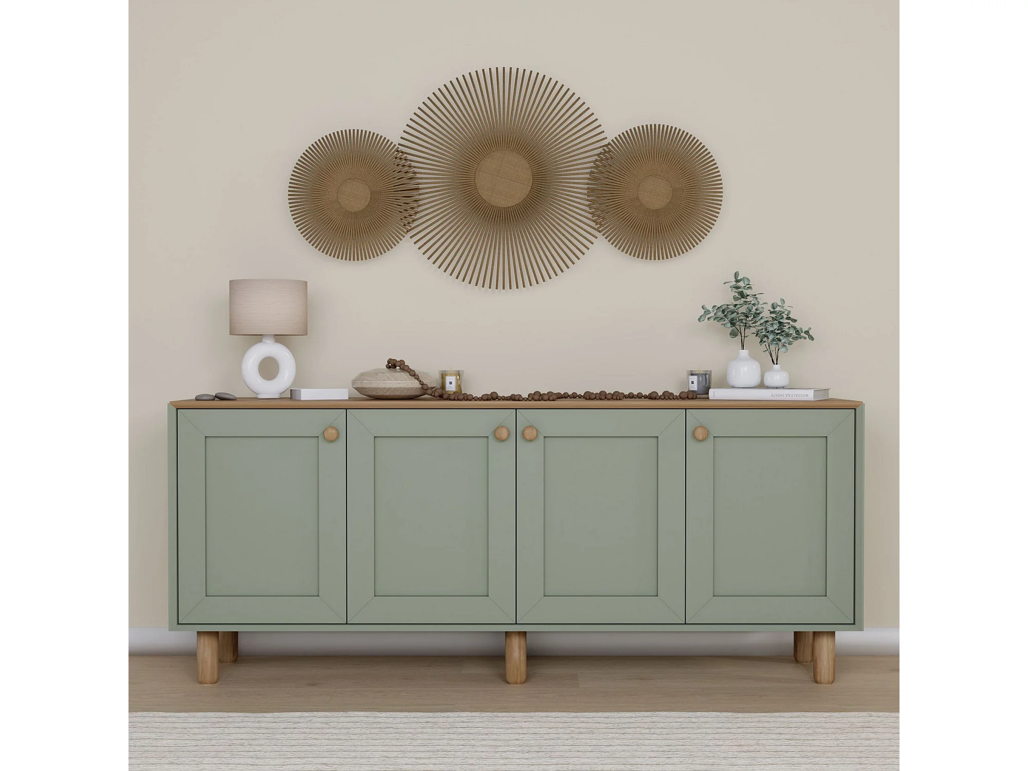 Buffet en bois "Bohem" - 180 x 40 x 75 cm - Vert