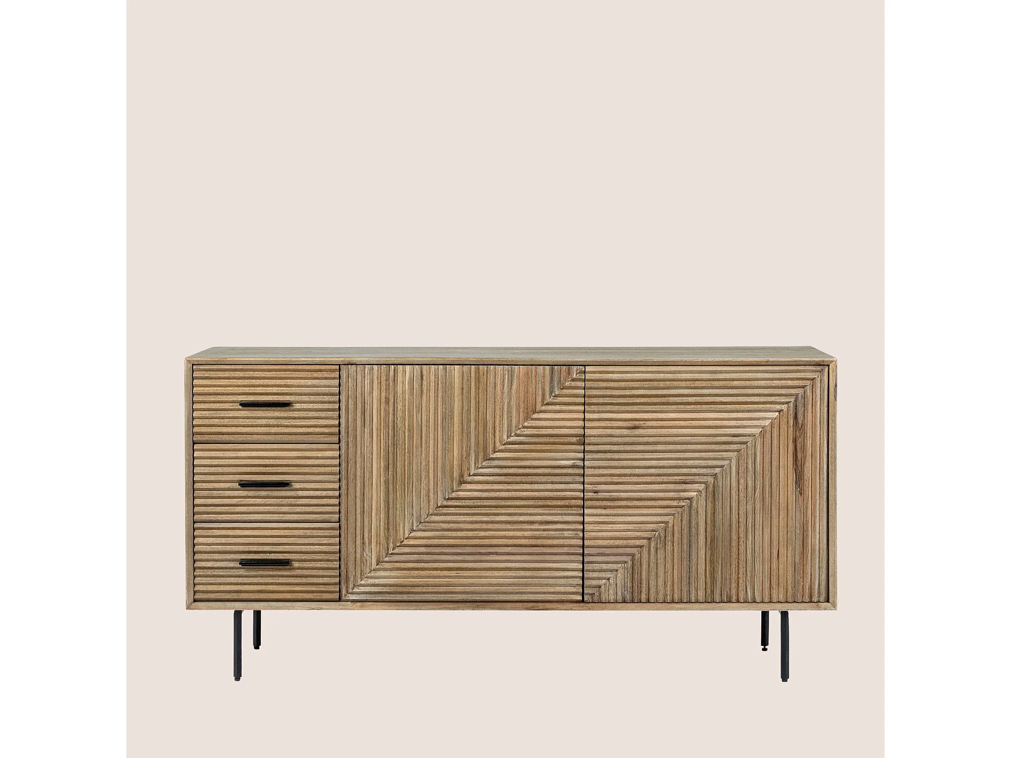 Buffet en bois de manguier 2 portes 3 tiroirs pieds métal noir L160 - MANAUS