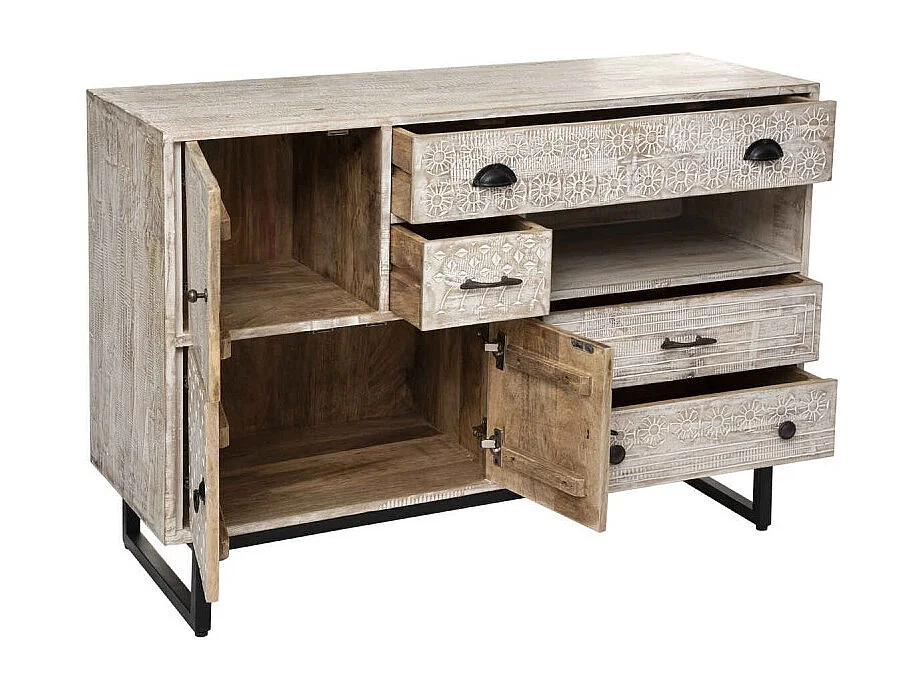 Buffet 3 Portes & 4 Tiroirs "Ajay" 115cm Naturel