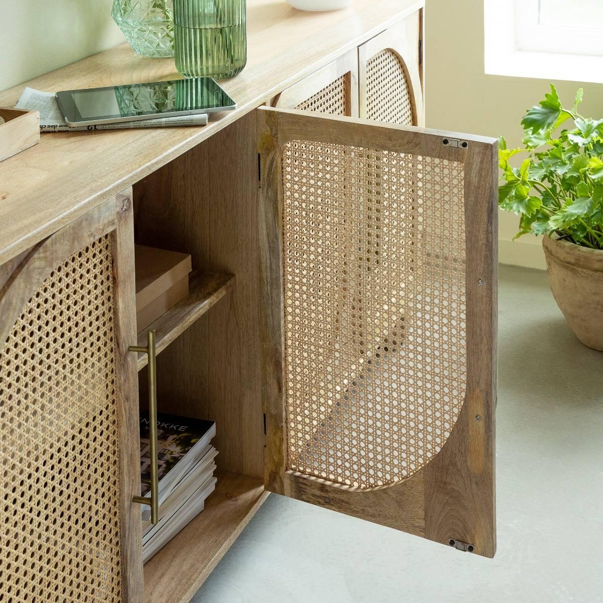 Buffet en bois de manguier et cannage Thora