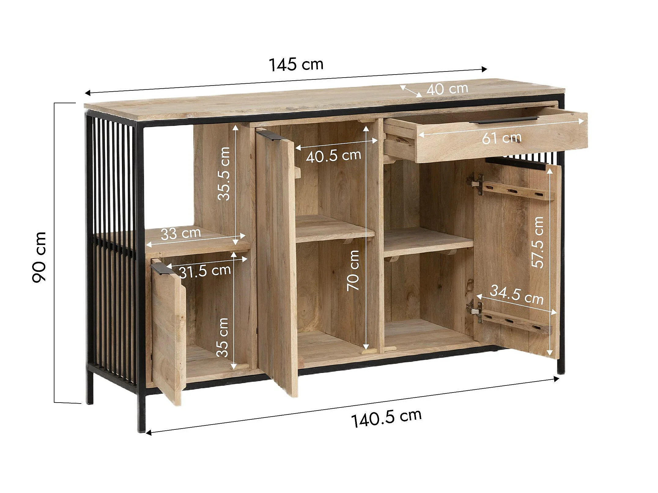Buffet en bois de manguier et métal Héloïse