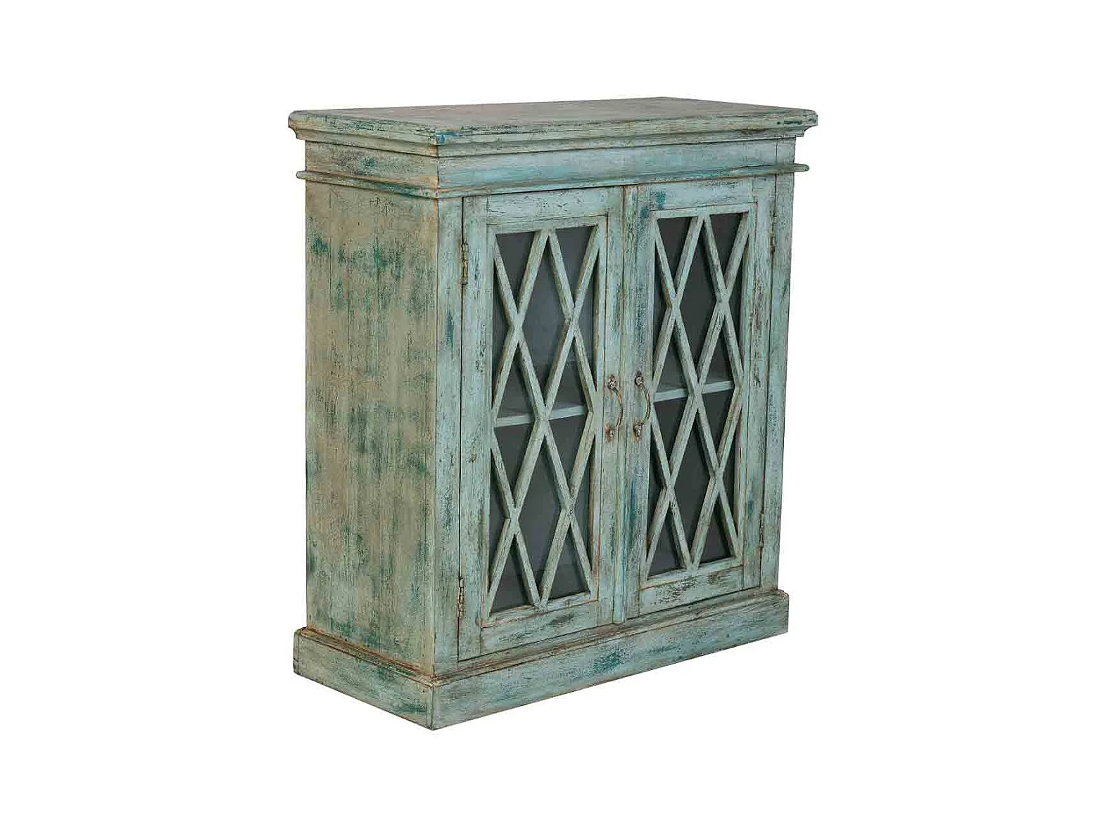 Buffet en bois et verre avec 2 portes, bleu 90x40x100h cm