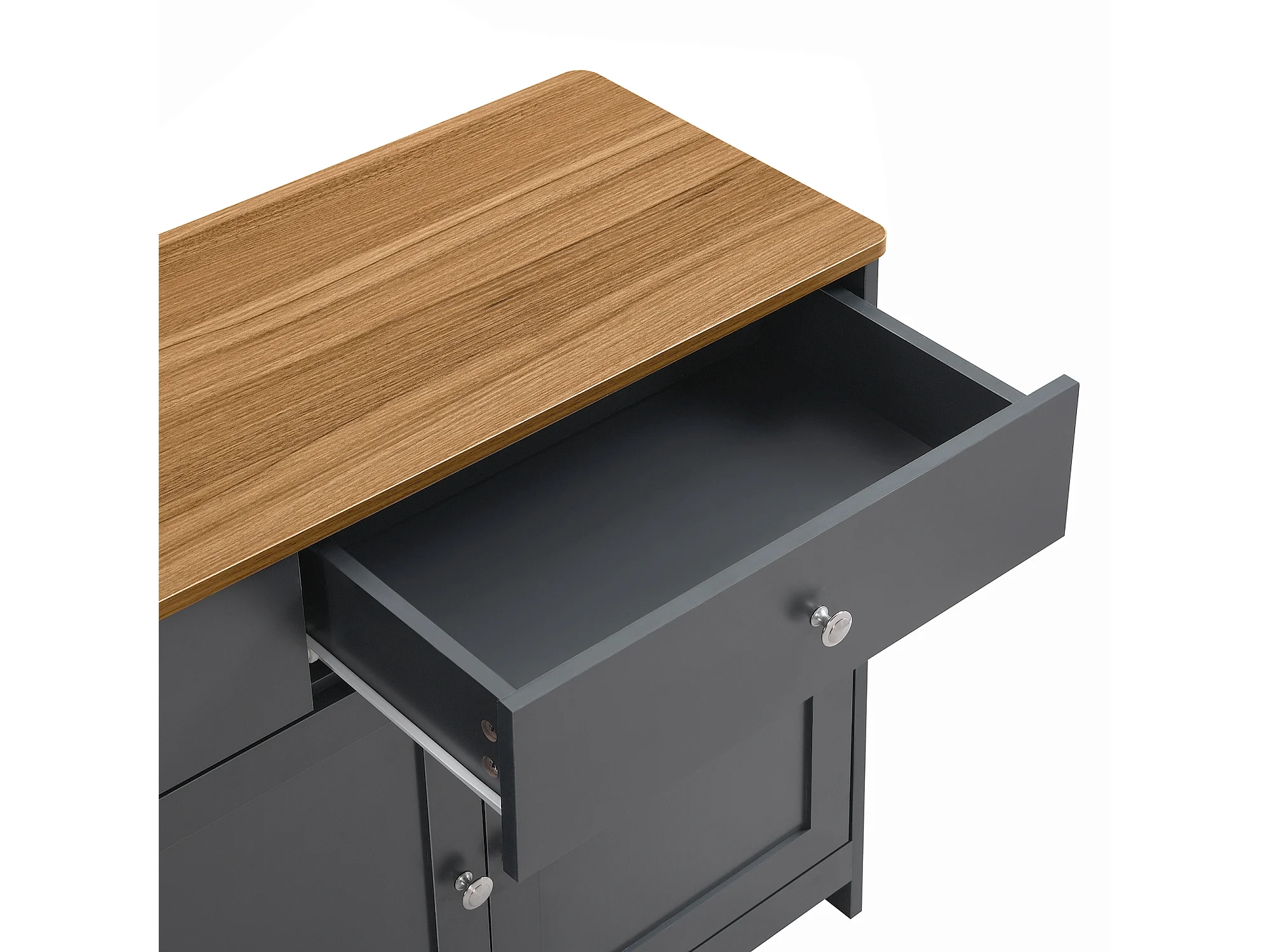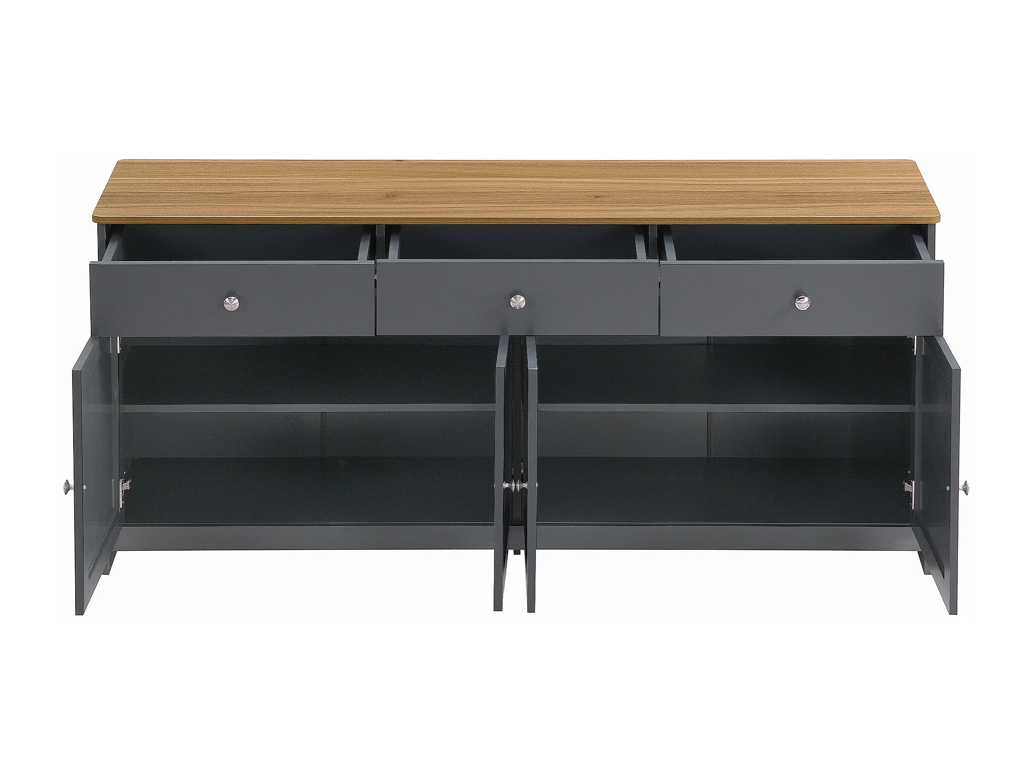 Buffet en bois gris-noir veiné, 4 portes et 3 tiroirs - Bois en MDF
